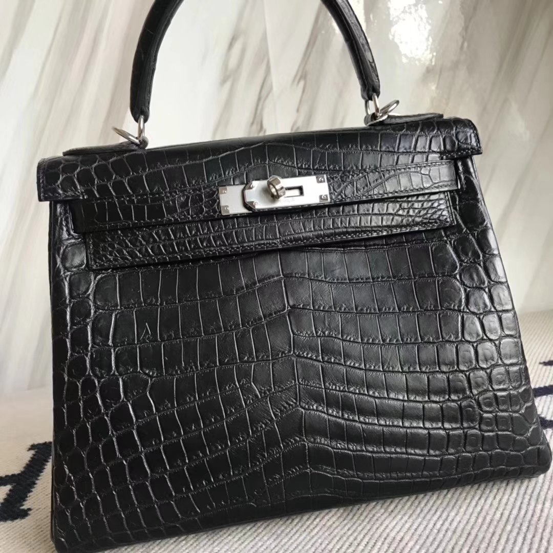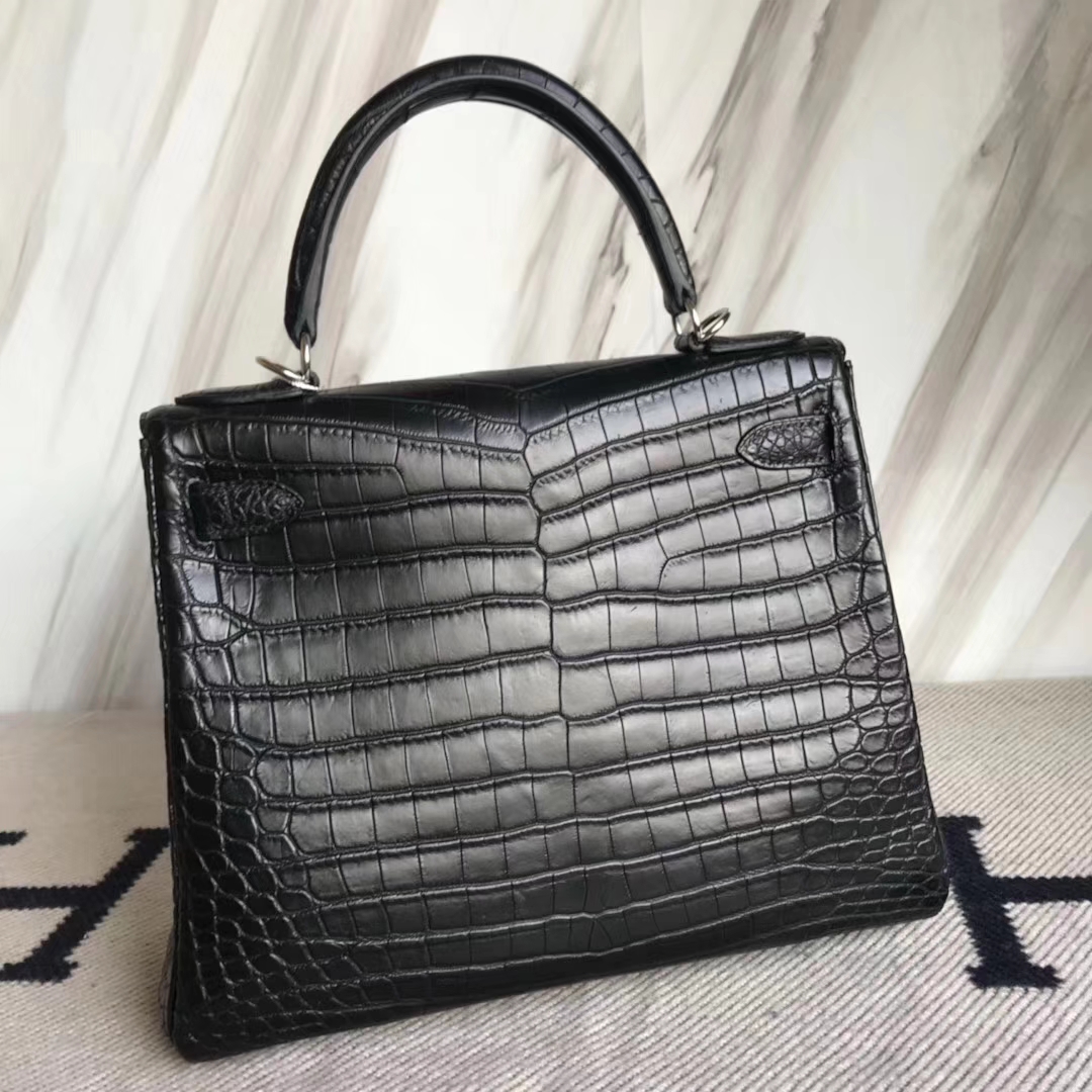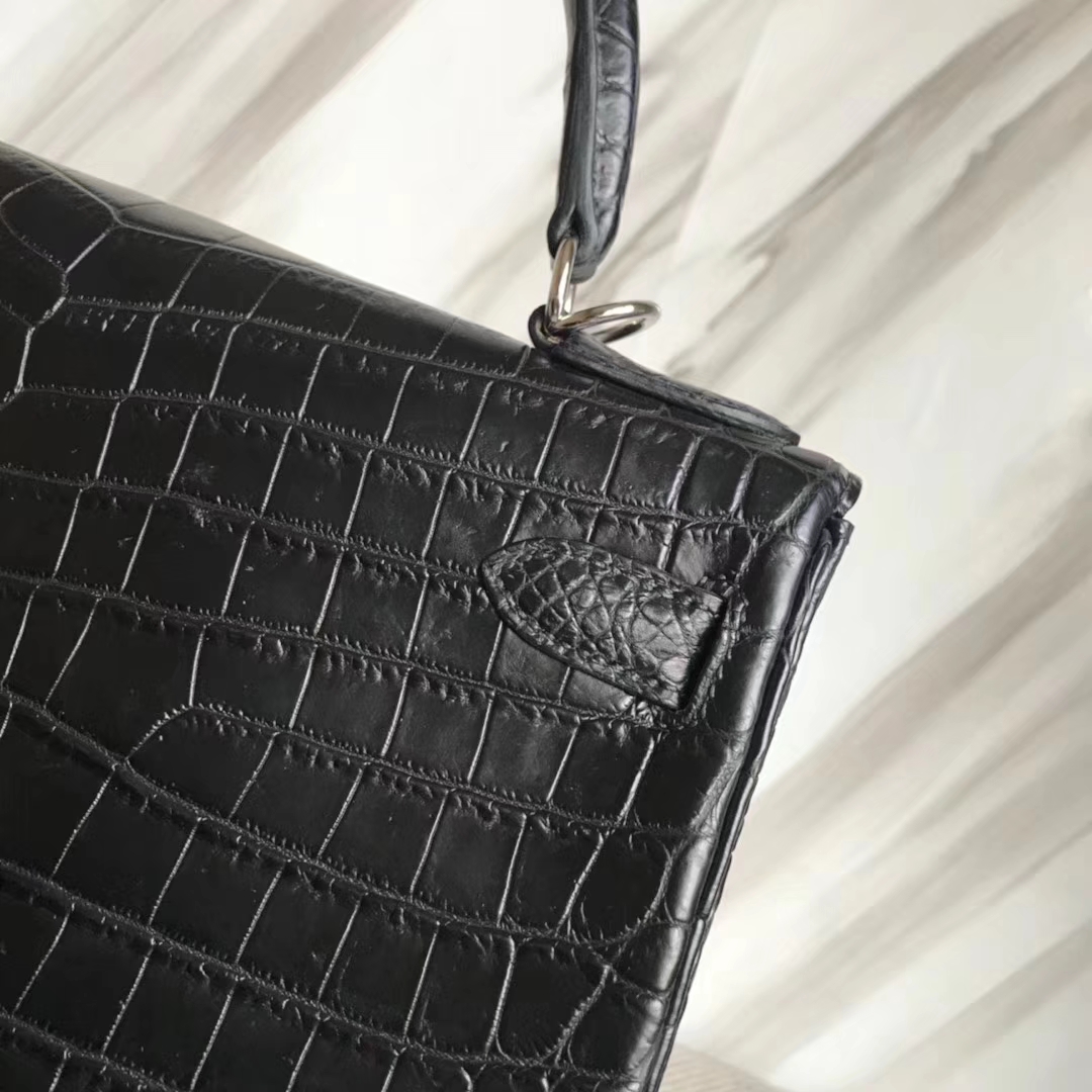 Hermès(爱马仕)Kelly雾面两点尼罗鳄 ck89黑色 顶级工艺 蜡线全手工 银扣 28cm 2018年12月11日 0 【鳄鱼世家】www.Eyubao.com Kelly 28 Kelly 凯莉包 品牌:Hermès(爱马仕);类别:Kelly凯莉包;颜色:黑色;材质:雾面两点尼罗鳄;等级:顶级;附件:全套包装礼盒;尺寸:28cm;功能:手提单肩包