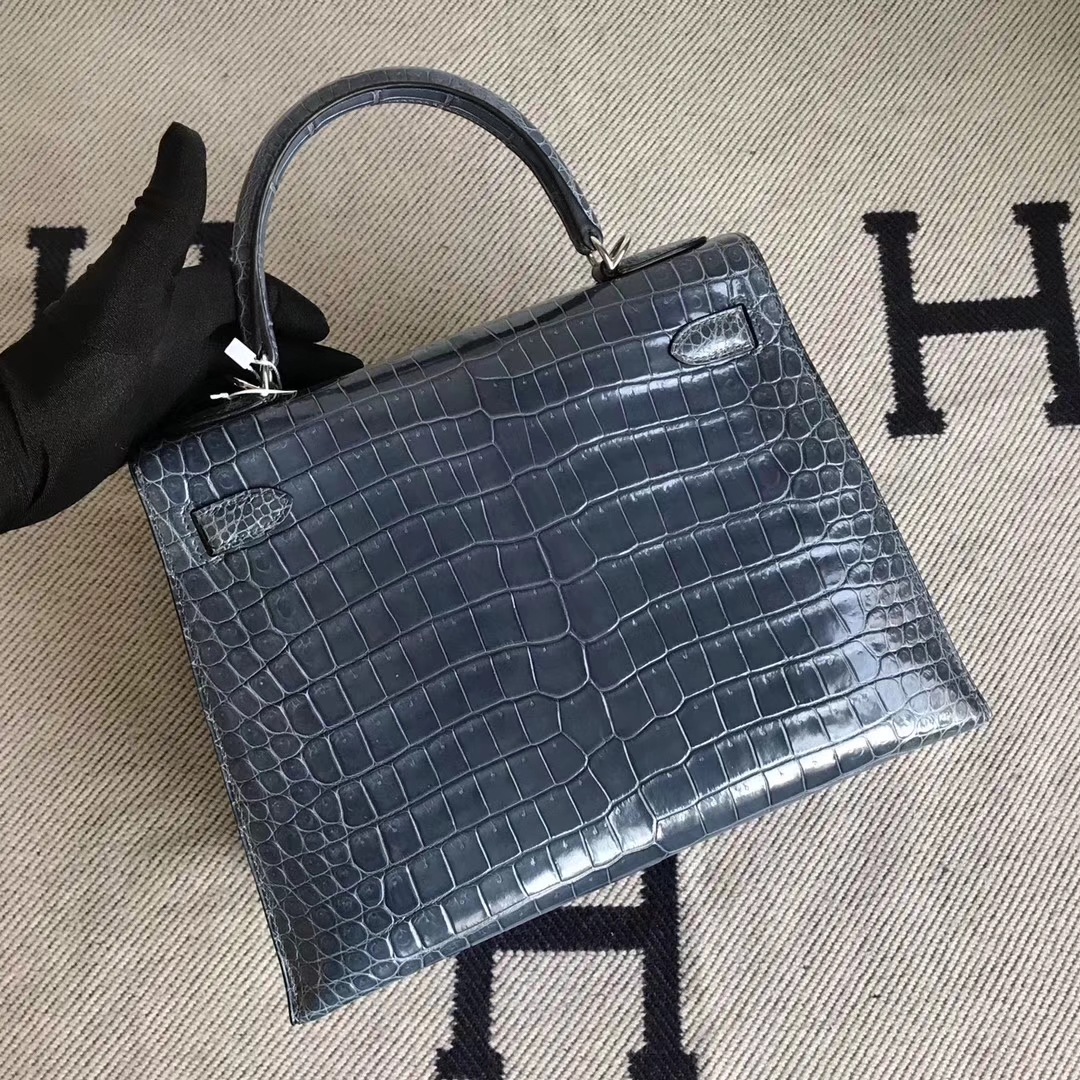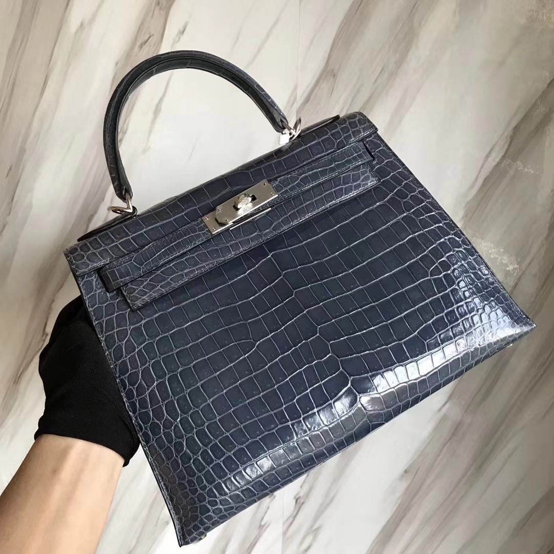 Hermès(爱马仕)Kelly 澳洲湾鳄 N7风暴蓝 顶级工艺 蜡线全手工银扣 28cm 2018年12月11日 0 【鳄鱼世家】www.Eyubao.com Kelly 28 Kelly 凯莉包 品牌:Hermès(爱马仕);类别:Kelly凯莉包;颜色:风暴蓝;材质:澳洲湾鳄;等级:顶级;附件:全套包装礼盒;尺寸:28cm;功能:手提单肩包