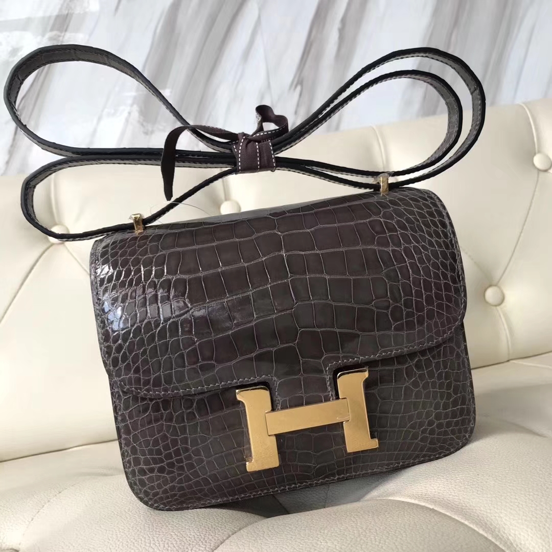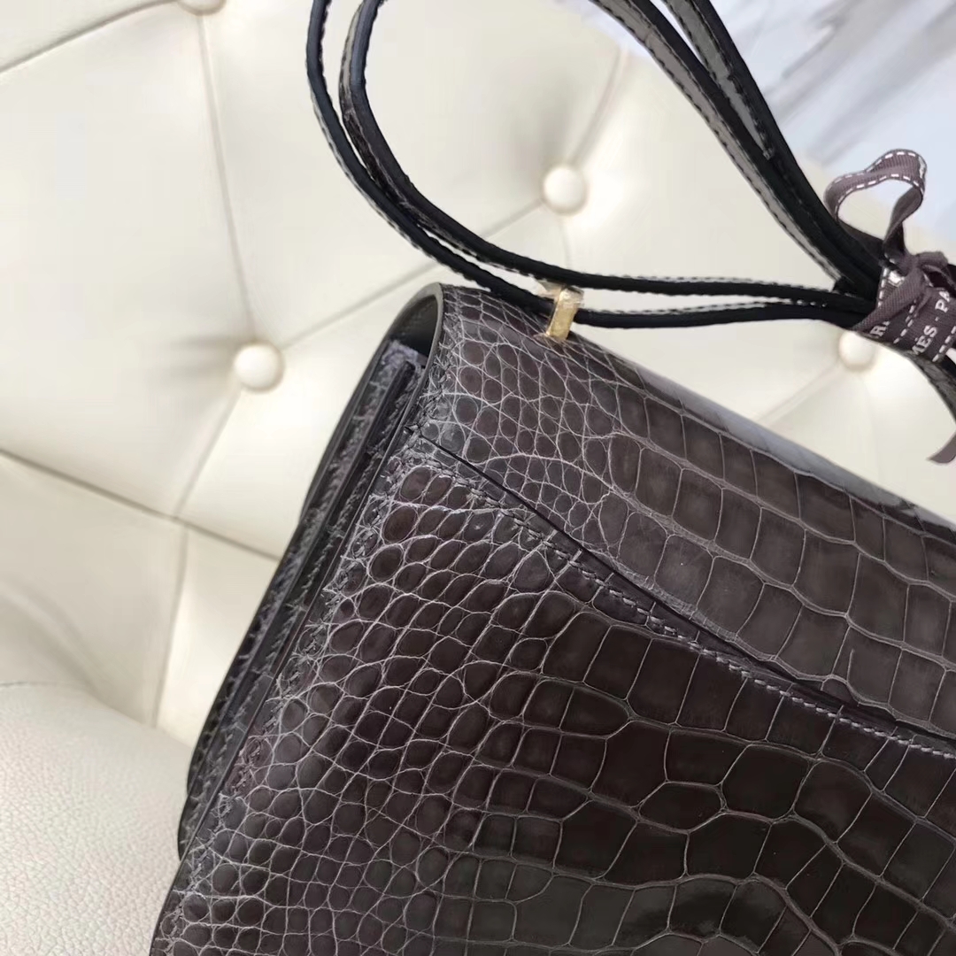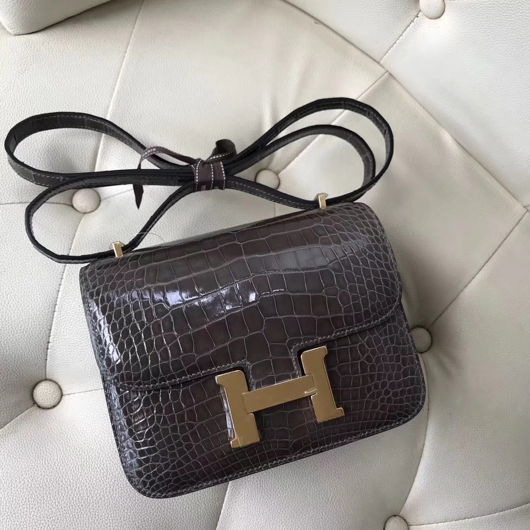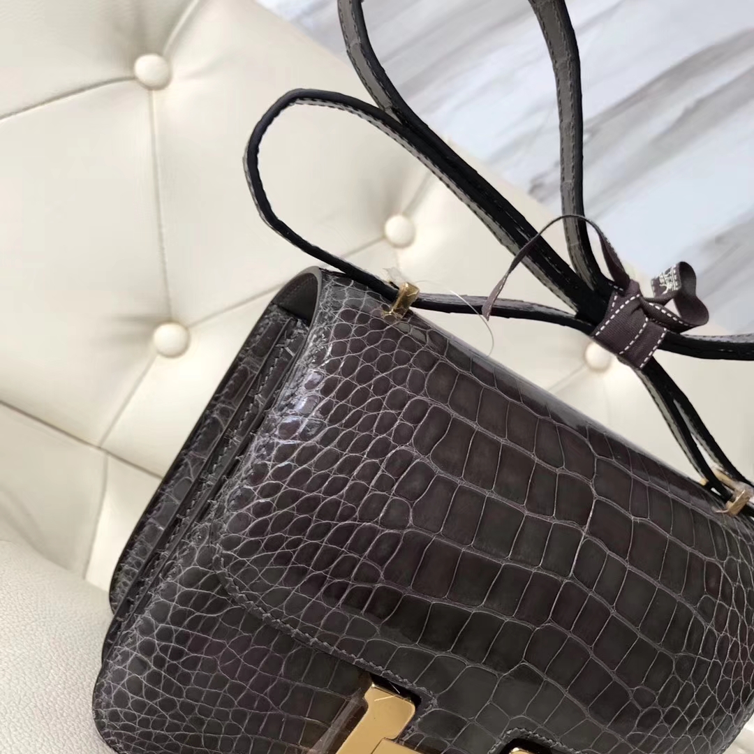 Hermès(爱马仕)Constance18cm Alligator shiny 亮面鳄鱼 ck88 石墨灰 Graphite 金扣 2018年12月18日 0 【鳄鱼世家】www.Eyubao.com Constance 18 Constance 空姐包 品牌:Hermès(爱马仕);类别:Constance 空姐包;颜色: 石墨灰;材质:亮面鳄鱼;等级:顶级;附件:全套包装礼盒;尺寸:18cm;功能:手提单肩包