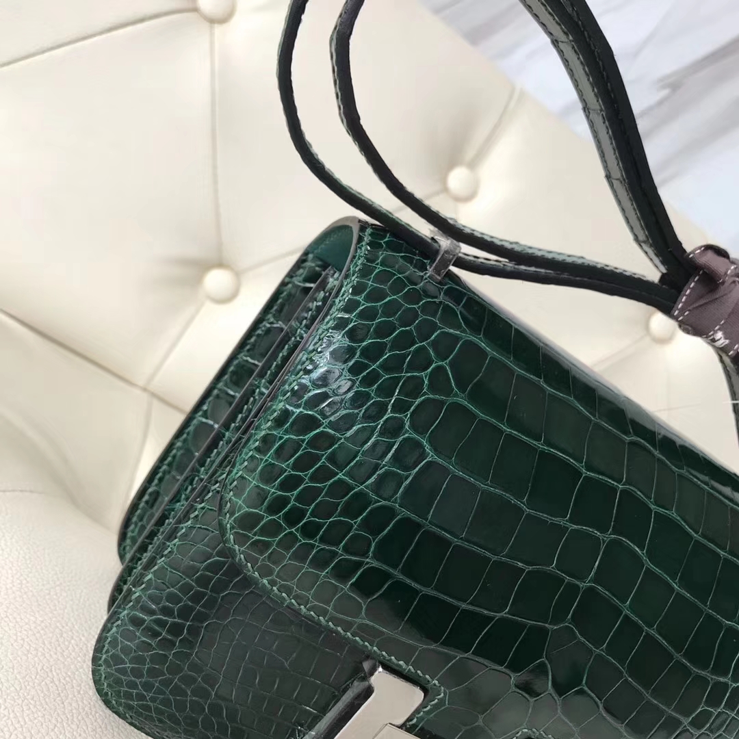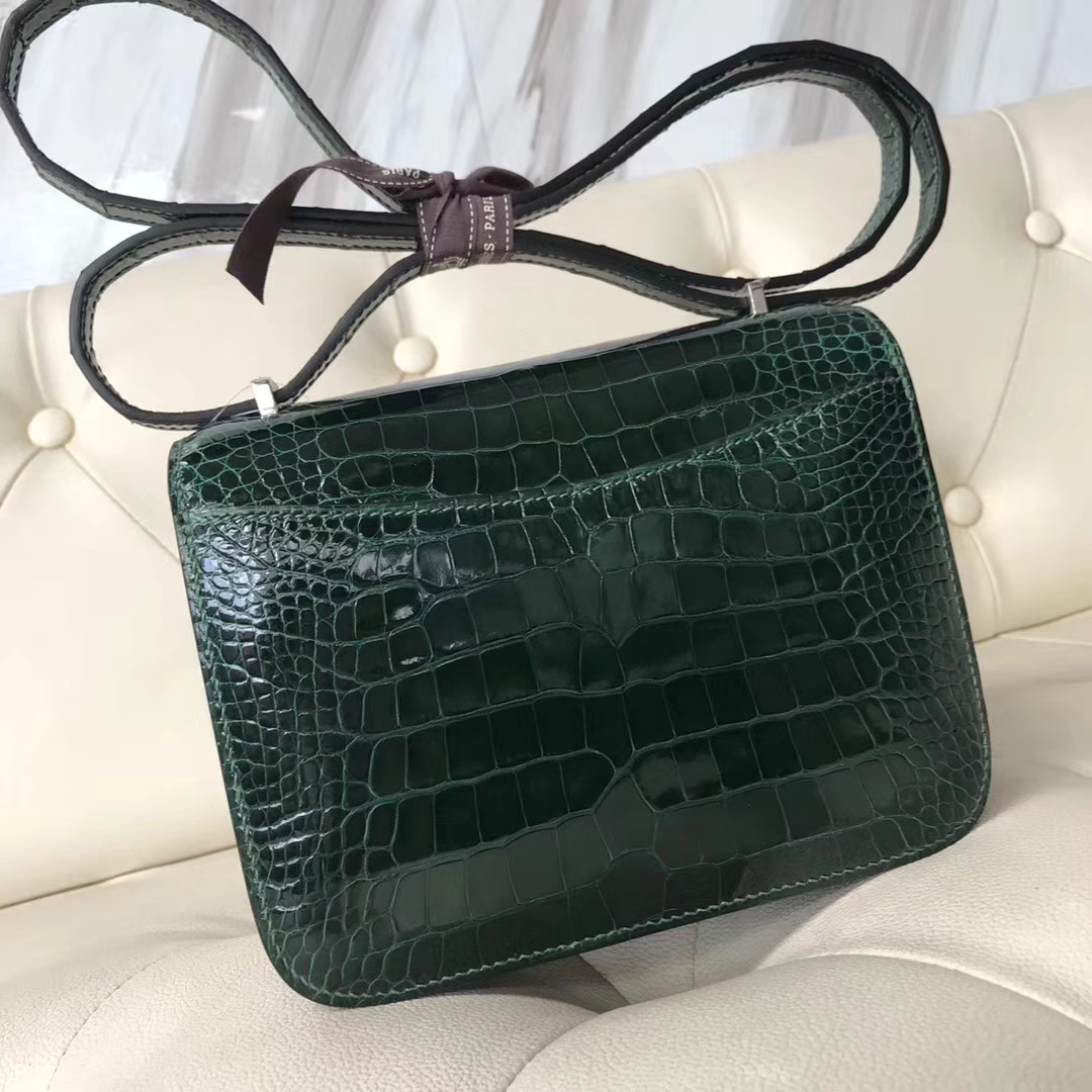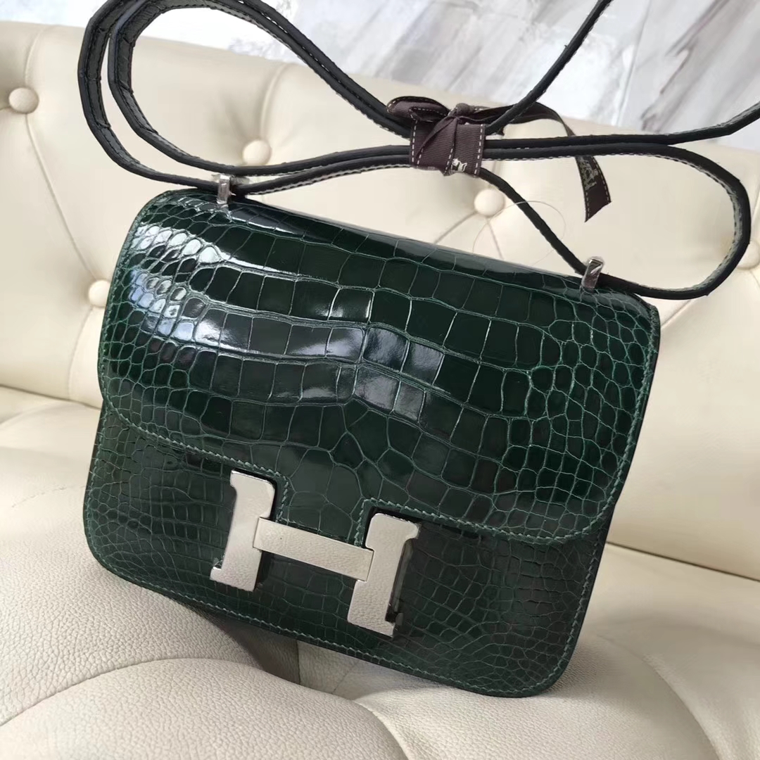 Hermès(爱马仕)Constance18cm Alligator shiny 亮面鳄鱼 ck67 祖母绿 Graphite 银扣 2018年12月18日 0 【鳄鱼世家】www.Eyubao.com Constance 18 Constance 空姐包 品牌:Hermès(爱马仕);类别:Constance 空姐包;颜色:祖母绿;材质:亮面鳄鱼;等级:顶级;附件:全套包装礼盒;尺寸:18cm;功能:手提单肩包