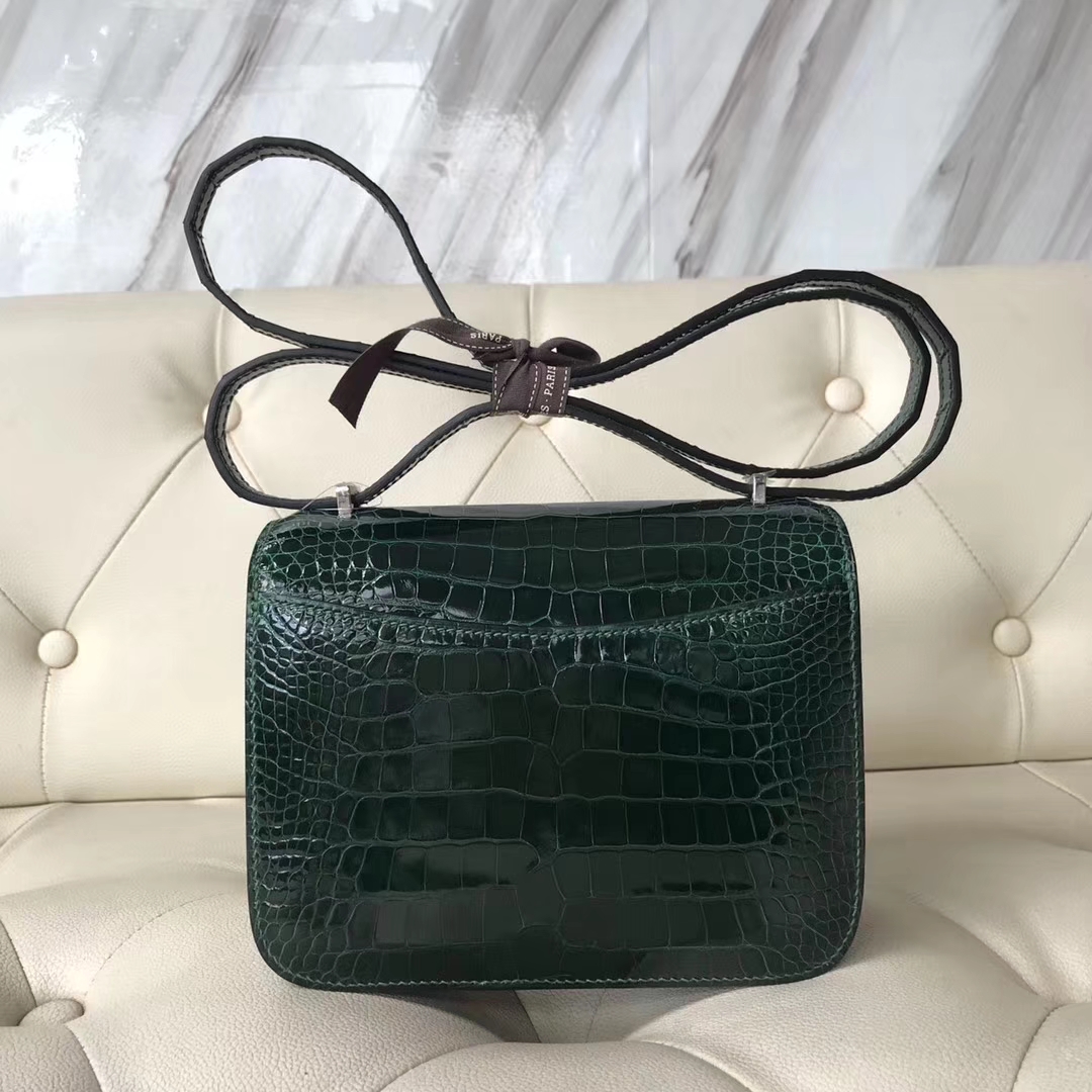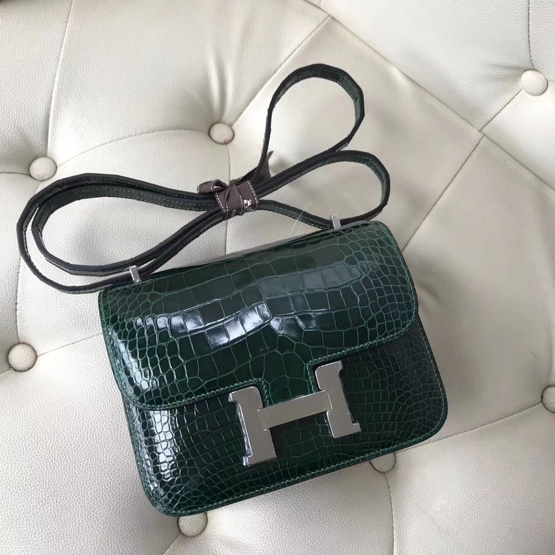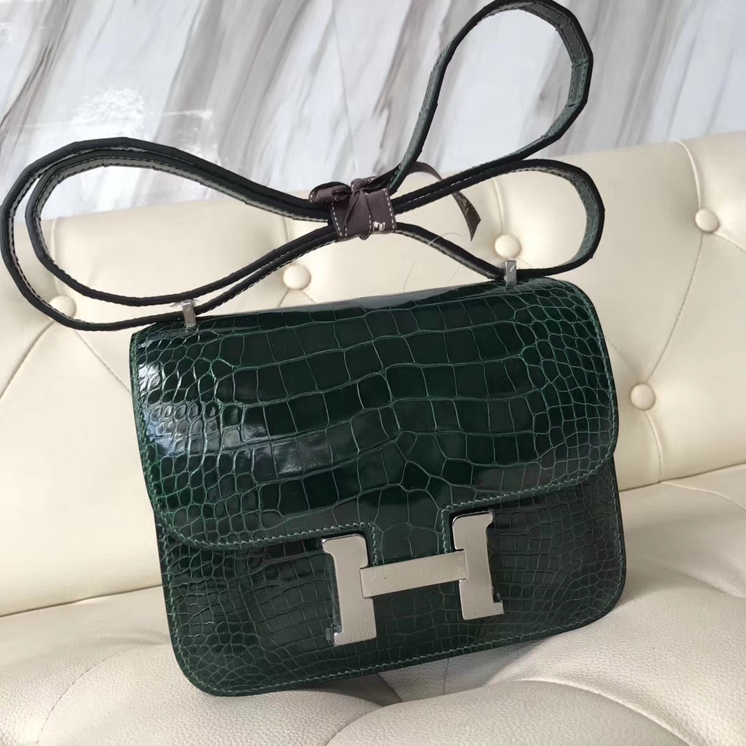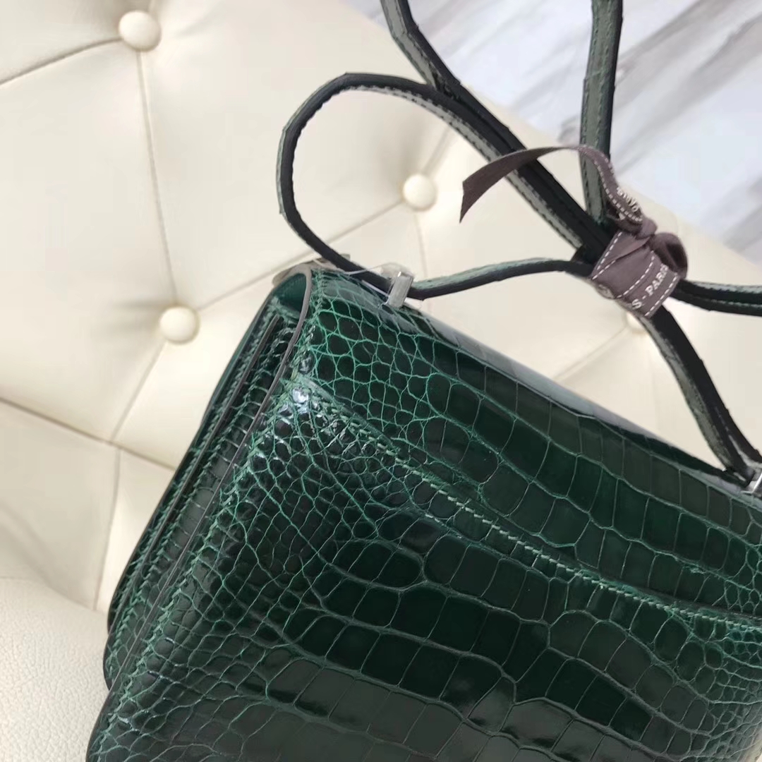 Hermès(爱马仕)Constance18cm Alligator shiny 亮面鳄鱼 ck67 祖母绿 Graphite 银扣 2018年12月18日 0 【鳄鱼世家】www.Eyubao.com Constance 18 Constance 空姐包 品牌:Hermès(爱马仕);类别:Constance 空姐包;颜色:祖母绿;材质:亮面鳄鱼;等级:顶级;附件:全套包装礼盒;尺寸:18cm;功能:手提单肩包