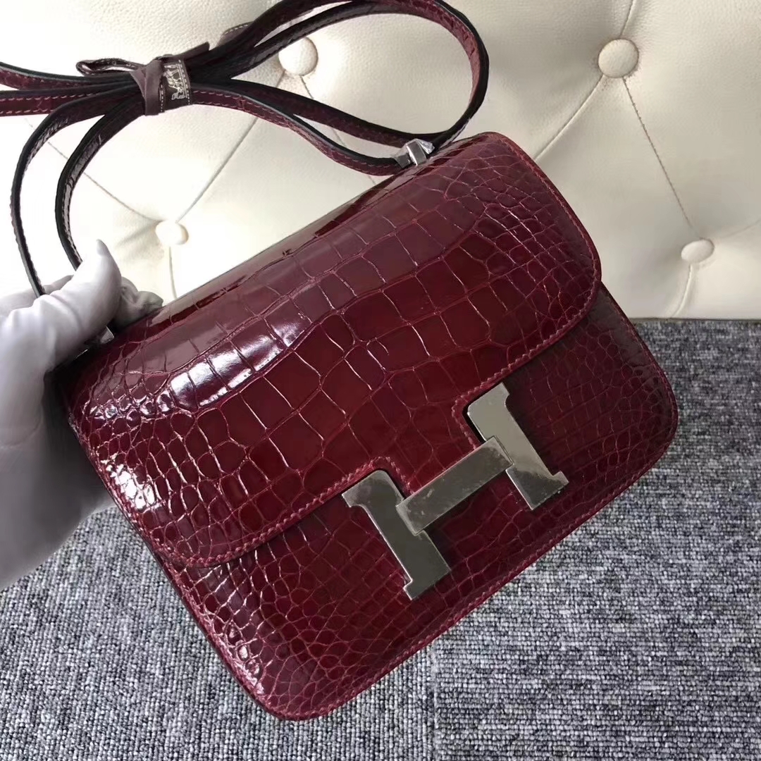 Constance 18 Constance 空姐包 Hermès(爱马仕)Constance空姐包 Crocodile shiny 亮面鳄鱼 F5 勃艮第酒红 银扣 18cm 2019年6月13日 0