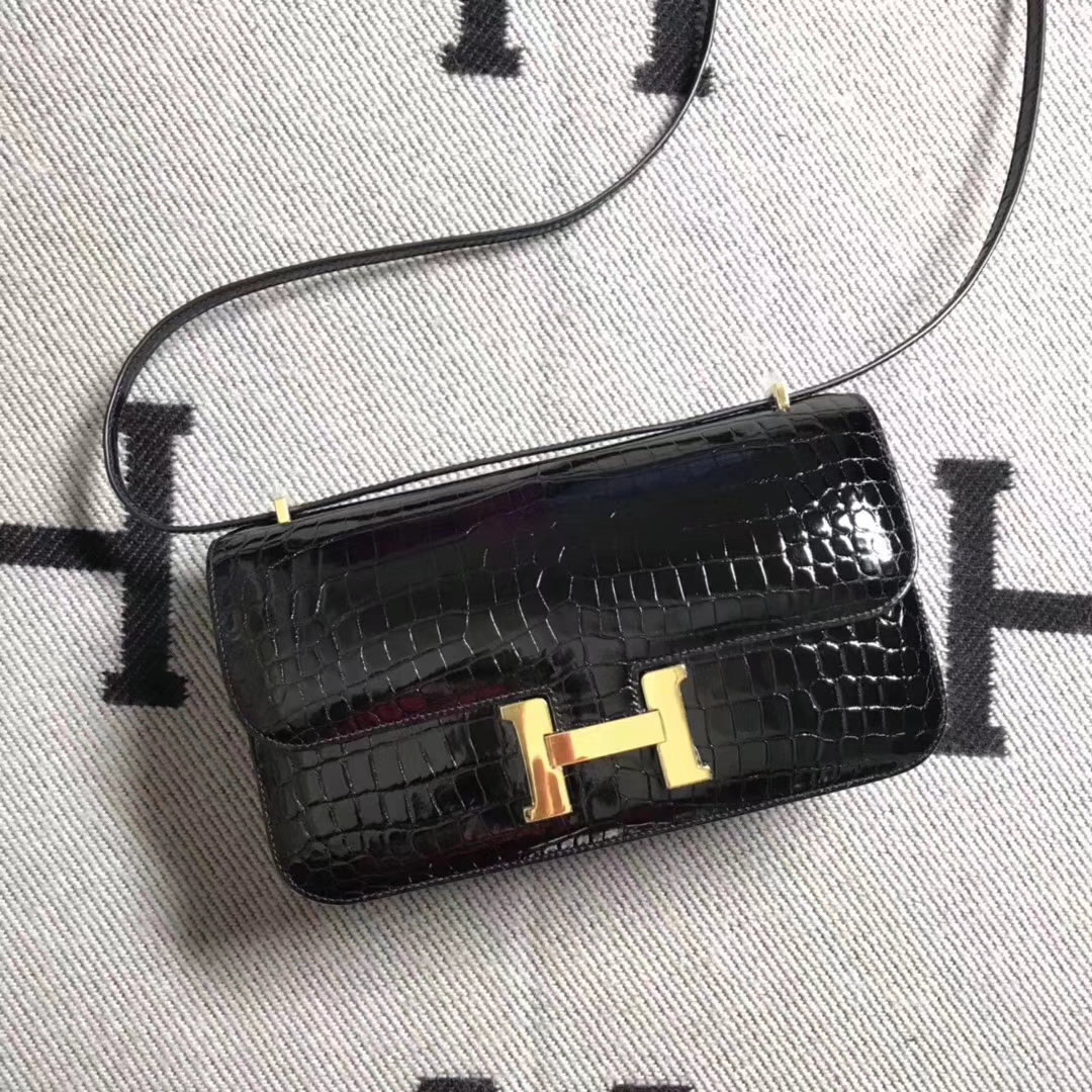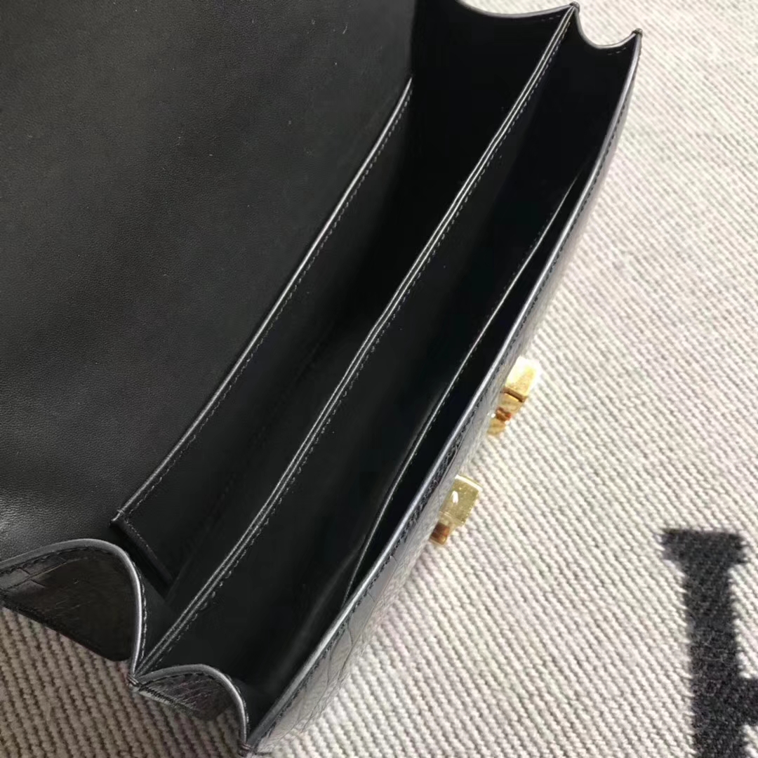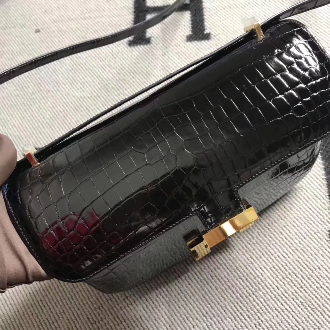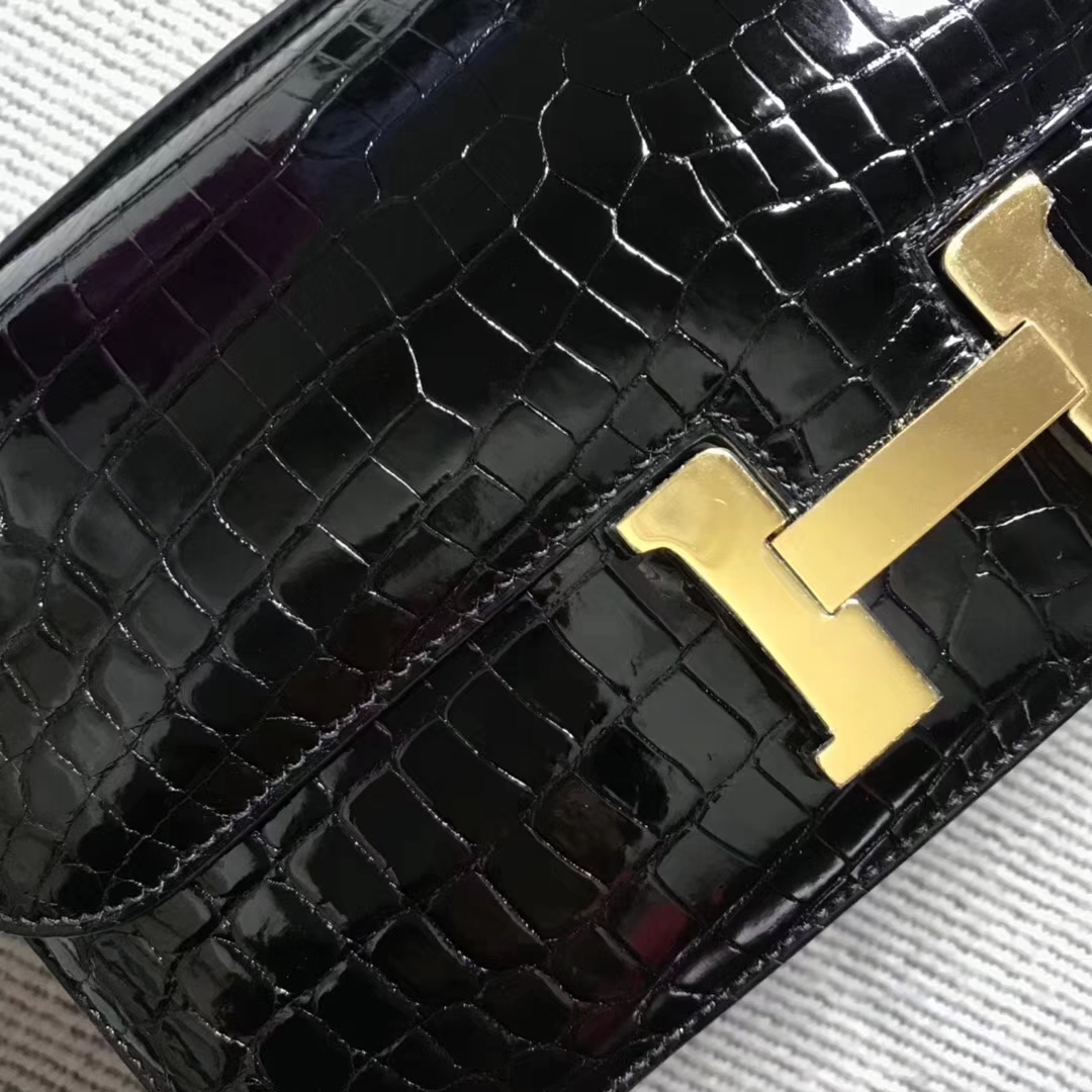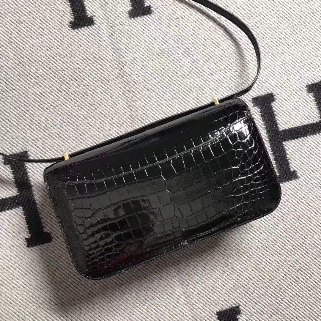 Hermès(爱马仕)Constance 空姐包 极品亮面鳄鱼 小康elan 经典黑金百搭 26cm 2018年12月21日 0 【鳄鱼世家】www.Eyubao.com Constance 26 Constance 空姐包 品牌:Hermès(爱马仕);类别:Constance 空姐包;颜色: 经典黑金;材质:亮面鳄鱼;等级:顶级;附件:全套包装礼盒;尺寸:26cm;功能:手提单肩包