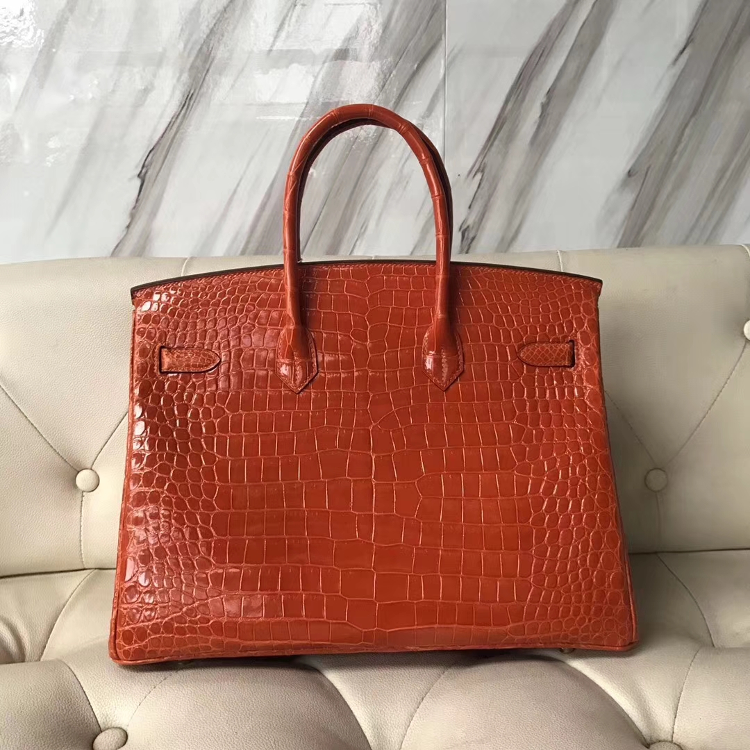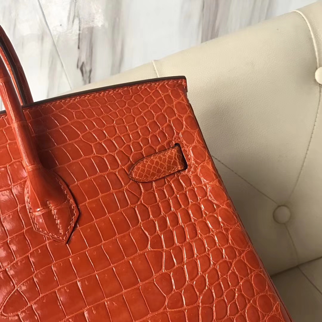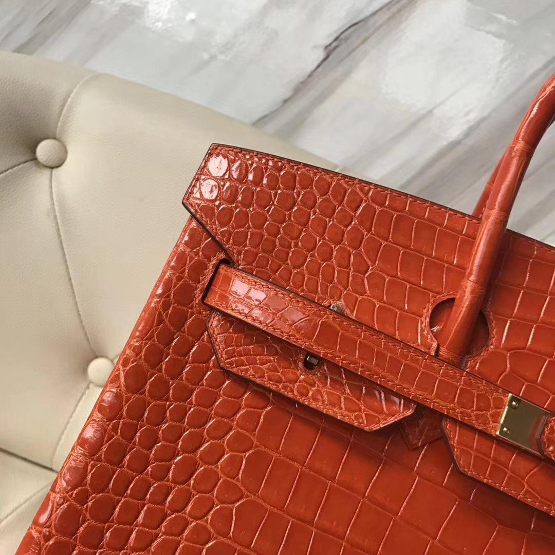 Hermès(爱马仕)Birkin Porosus shiny 亮面鳄鱼 8V 罂粟橘 金扣 35cm 2018年12月21日 0 【鳄鱼世家】www.Eyubao.com Birkin 35 Birkin 铂金包 品牌:Hermès(爱马仕);类别:Birkin 铂金包;颜色:罂粟橘;材质:亮面鳄鱼;等级:顶级;附件:全套包装礼盒;尺寸:35cm;功能:手提单肩包