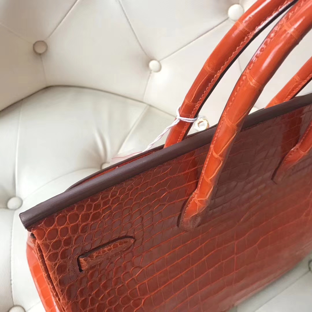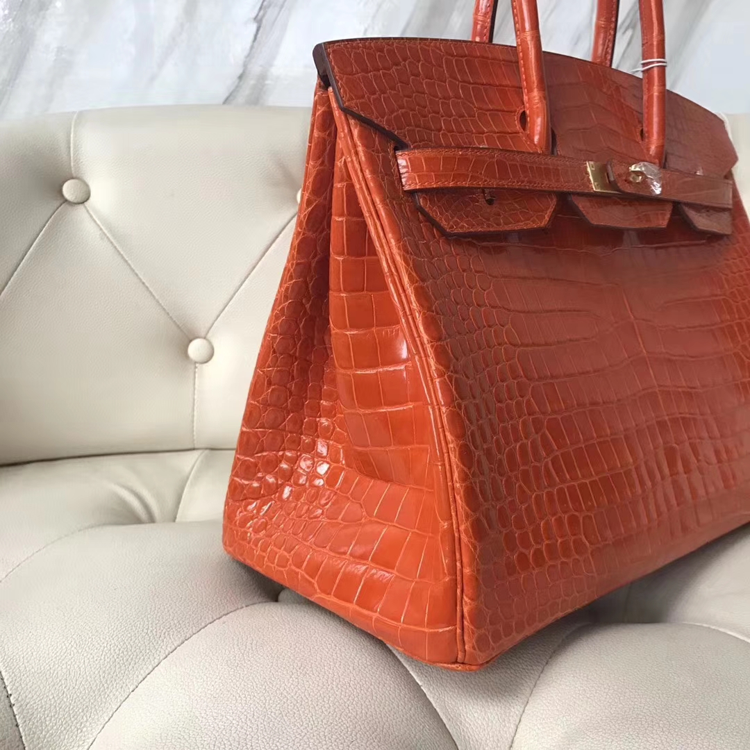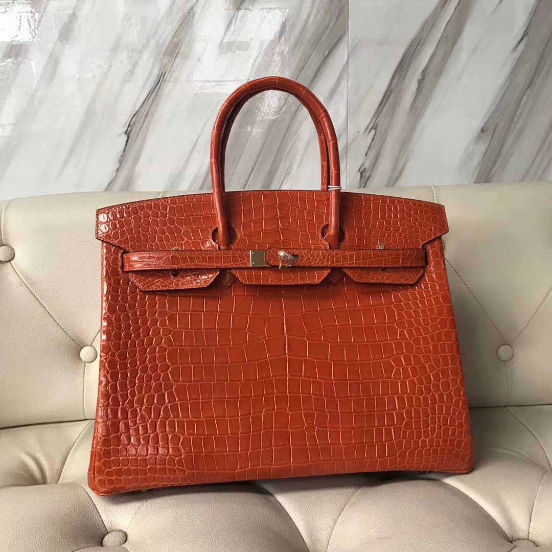 Hermès(爱马仕)Birkin Porosus shiny 亮面鳄鱼 8V 罂粟橘 金扣 35cm 2018年12月21日 0 【鳄鱼世家】www.Eyubao.com Birkin 35 Birkin 铂金包 品牌:Hermès(爱马仕);类别:Birkin 铂金包;颜色:罂粟橘;材质:亮面鳄鱼;等级:顶级;附件:全套包装礼盒;尺寸:35cm;功能:手提单肩包