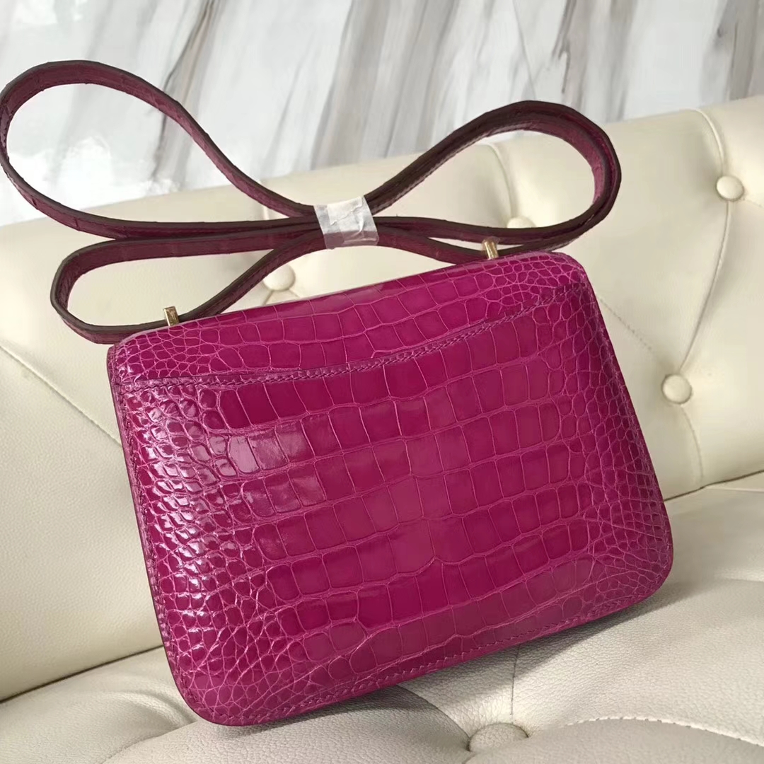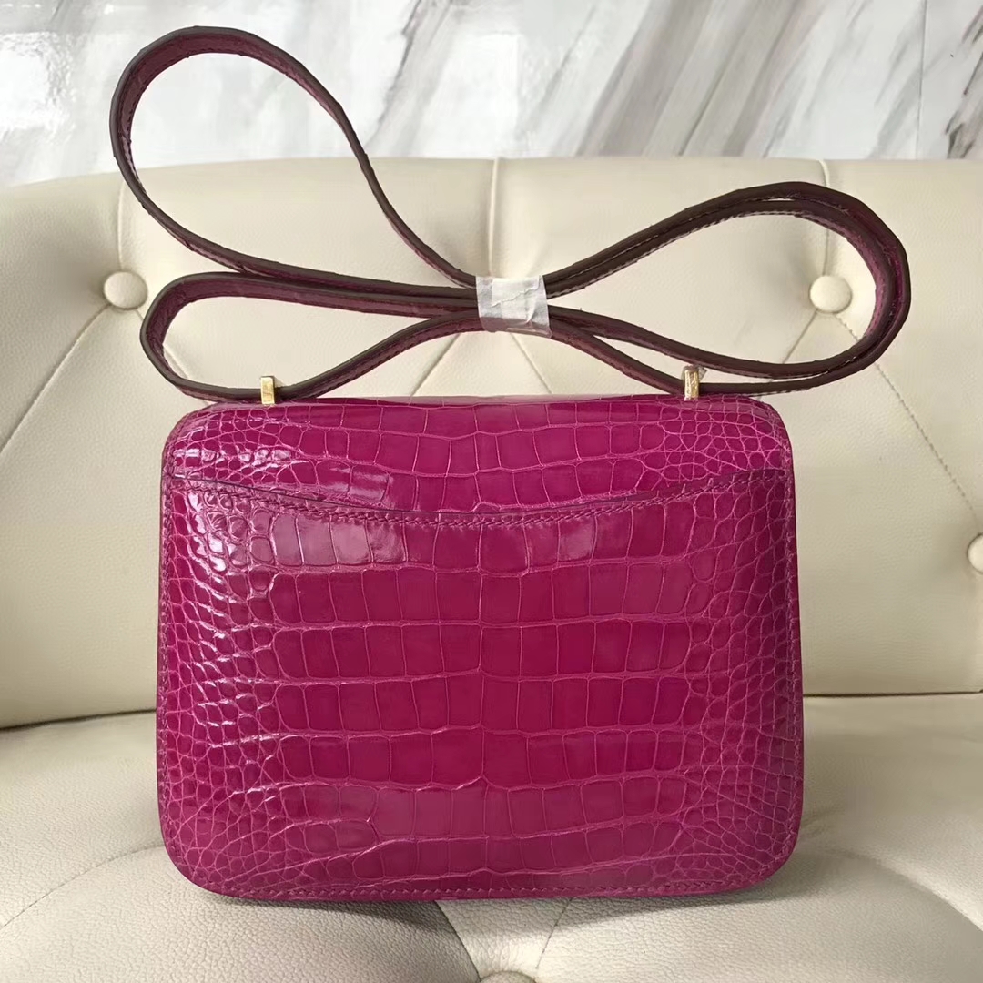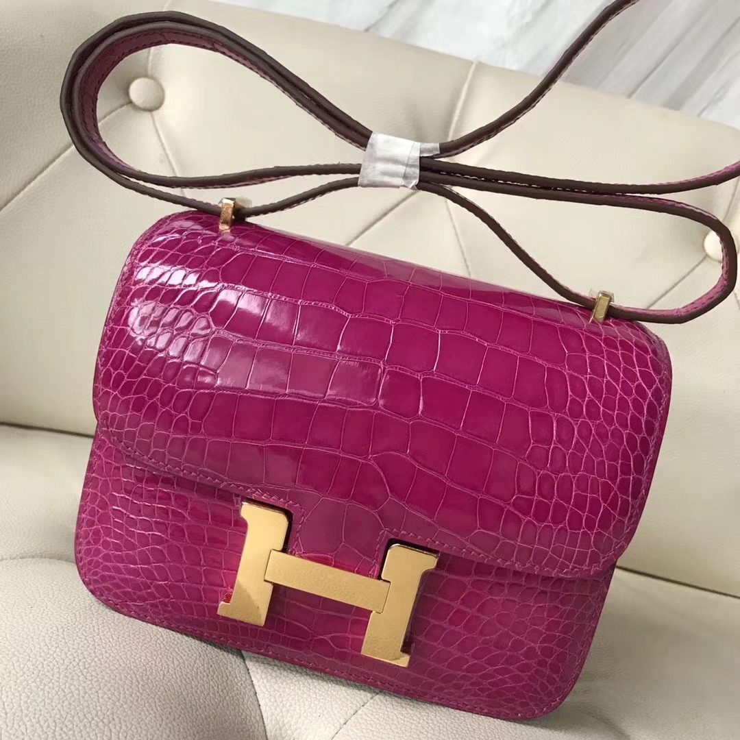 Hermès(爱马仕)Constance Alligator shiny 亮面J5 天方夜谭粉紫 金扣 18cm 2018年12月22日 0 【鳄鱼世家】www.Eyubao.com Constance 18 Constance 空姐包 品牌:Hermès(爱马仕);类别:Constance 空姐包;颜色:天方夜谭粉紫;材质:亮面澳洲湾鳄;等级:顶级;附件:全套包装礼盒;尺寸:18cm;功能:单肩背包