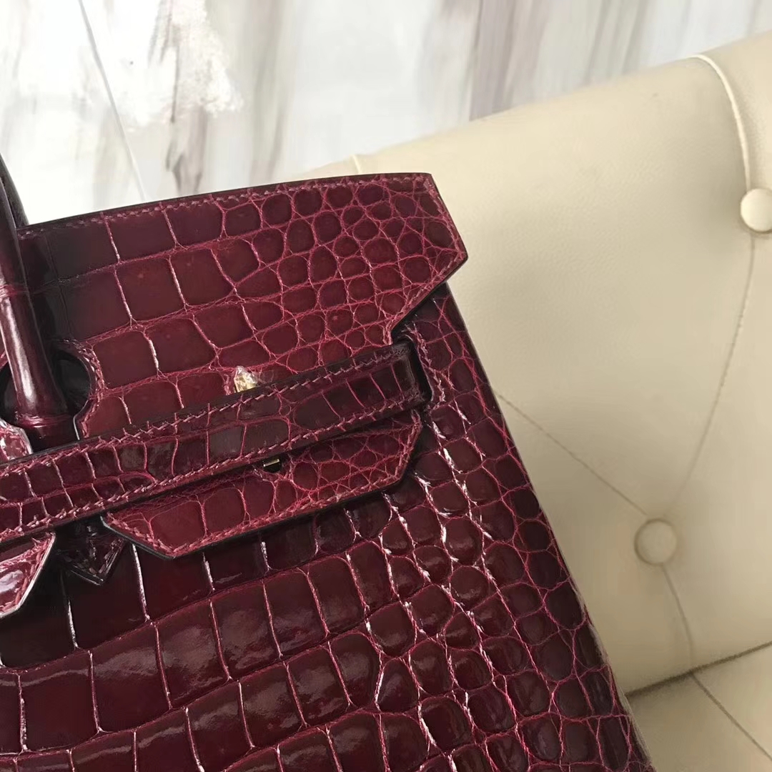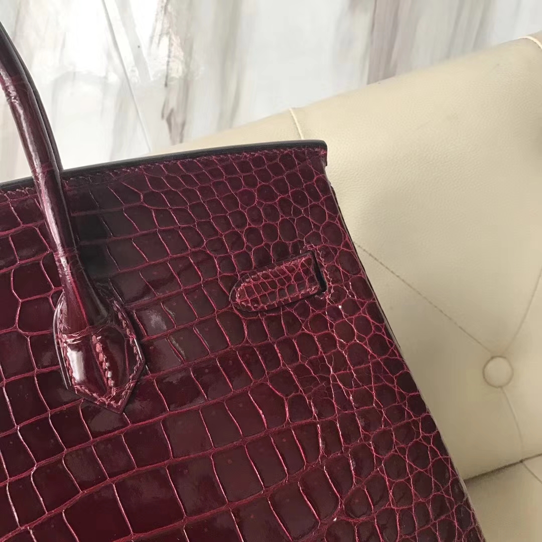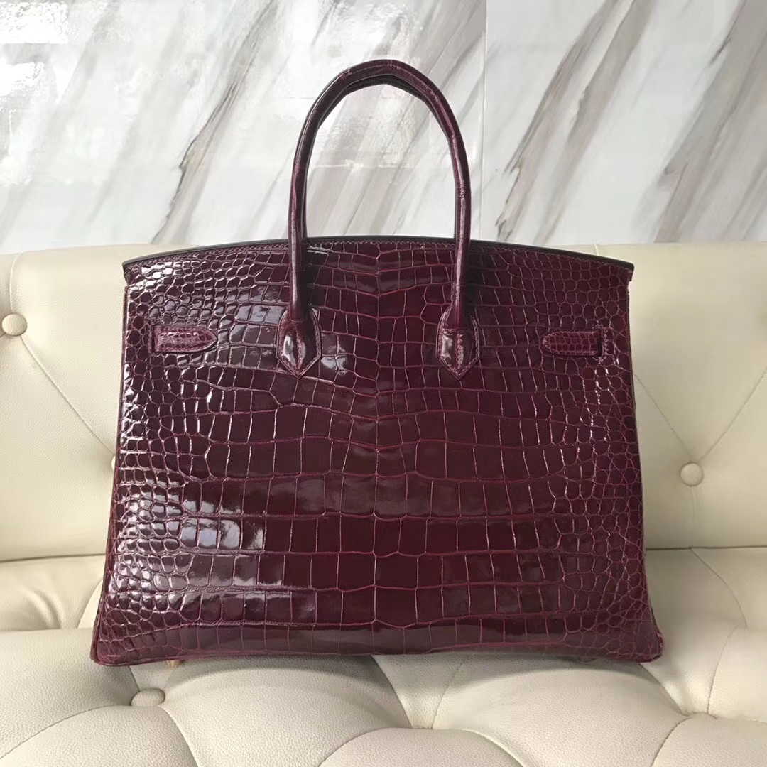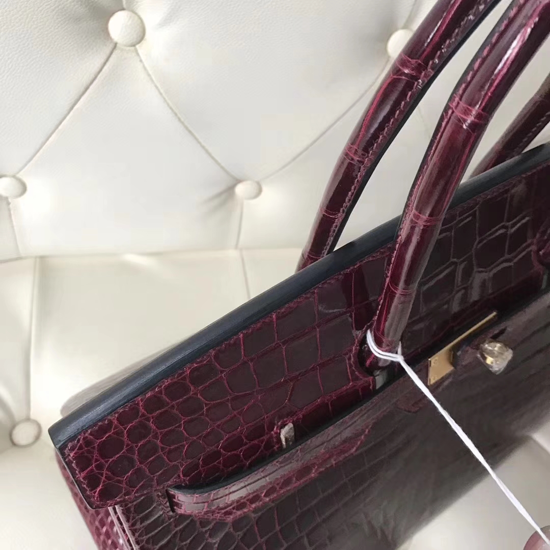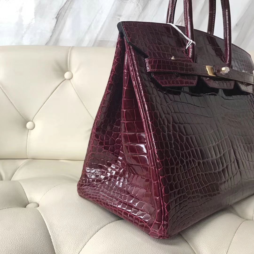 Hermès(爱马仕)Birkin shiny porosus 亮面澳洲湾鳄 F5勃艮第酒红 蜡线全手工 金扣 35cm 2018年12月22日 0 【鳄鱼世家】www.Eyubao.com Birkin 35 Birkin 铂金包 品牌:Hermès(爱马仕);类别:Birkin 铂金包;颜色:勃艮第酒红;材质:亮面澳洲湾鳄;等级:顶级;附件:全套包装礼盒;尺寸:35cm;功能:手提单肩包