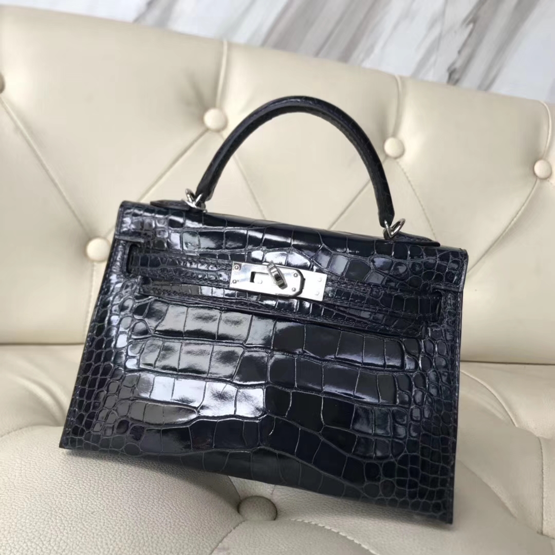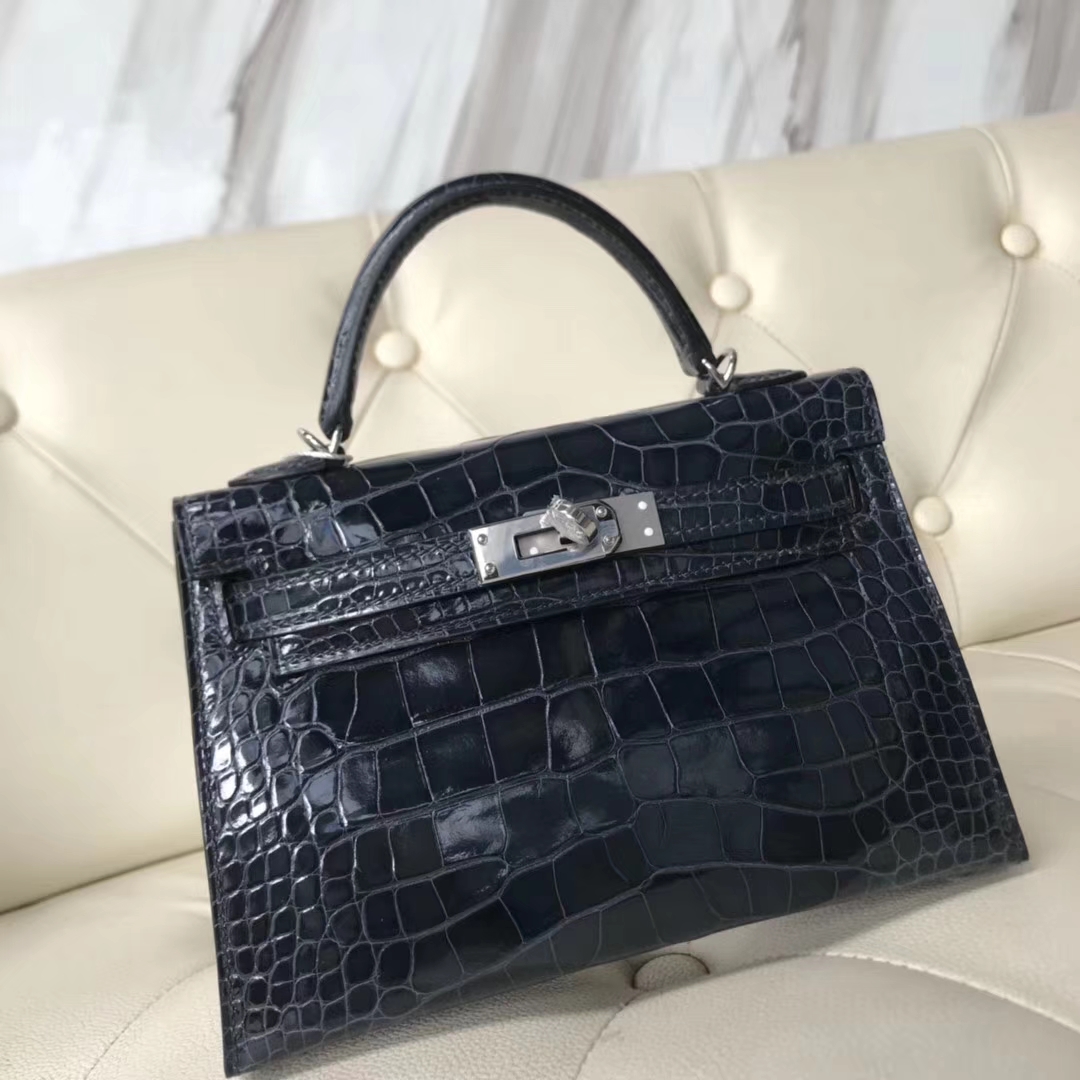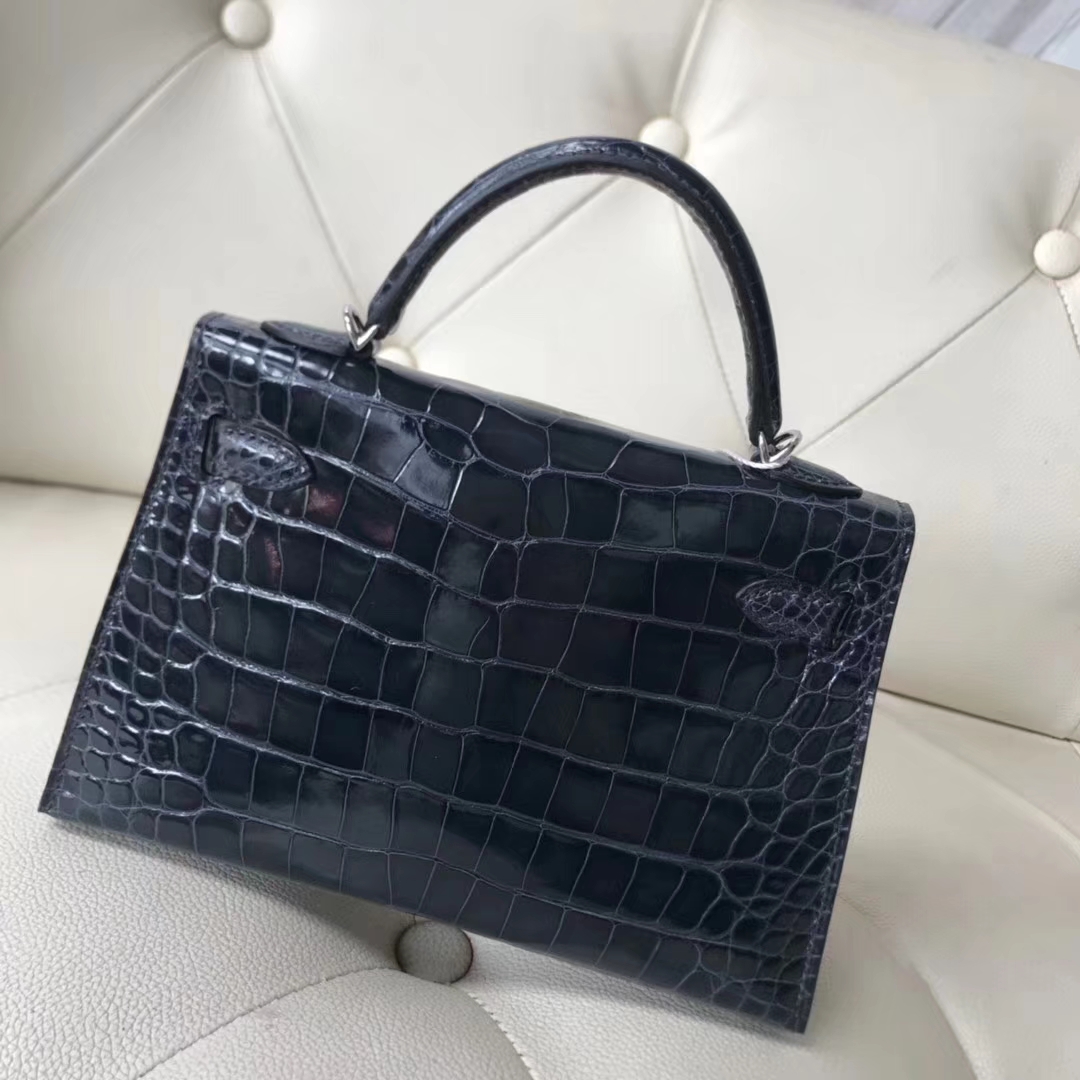 Hermès(爱马仕)Minikelly ll Alligator shiny 亮面鳄鱼 77k 深海蓝 blue indgo 银扣 2018年12月22日 0 【鳄鱼世家】www.Eyubao.com Mini Kelly 2 Mini Kelly 迷你凯莉 品牌:Hermès(爱马仕);类别:Mini Kelly迷你凯莉包;颜色:深海蓝;材质:亮面鳄鱼;等级:顶级;附件:全套包装礼盒;功能:手提单肩包