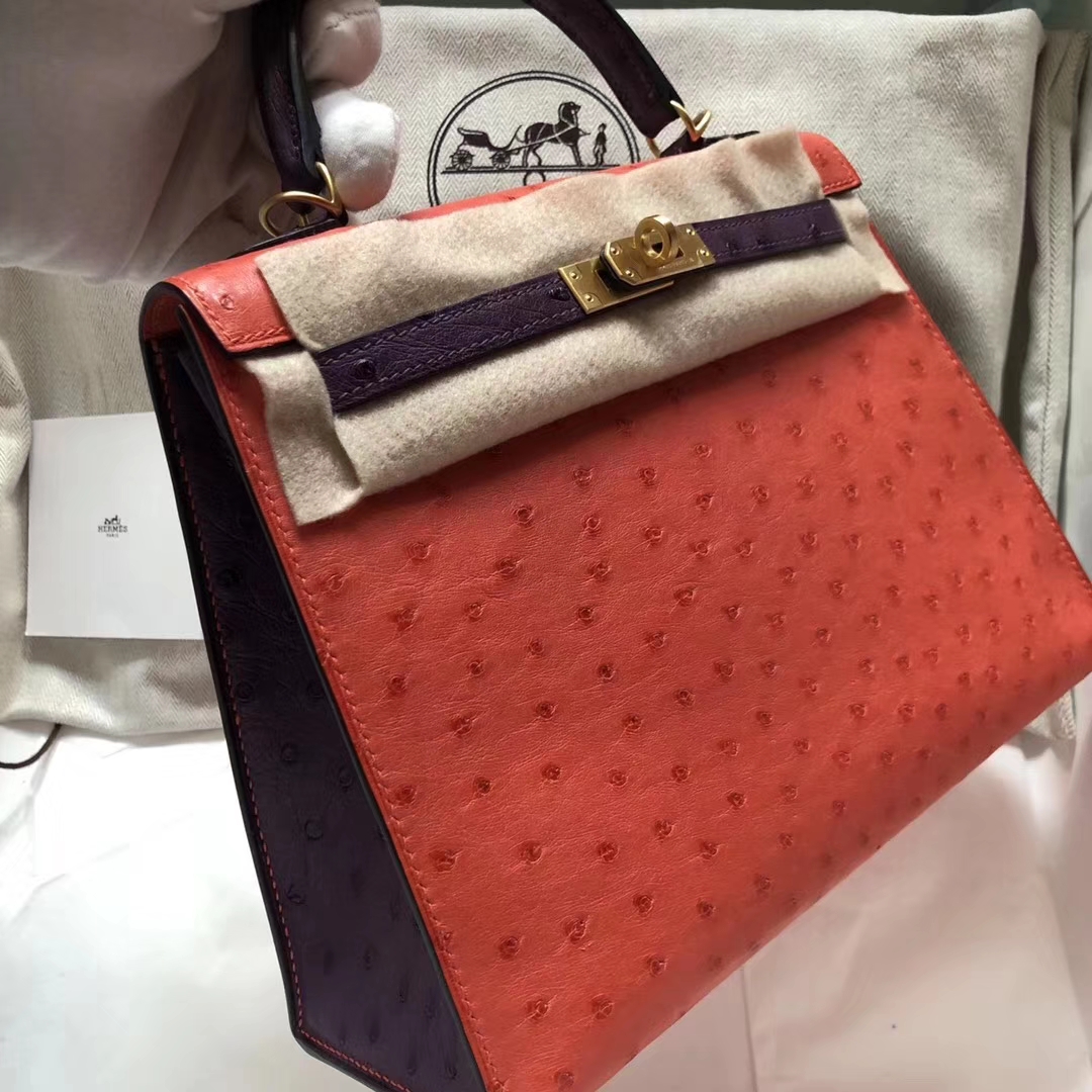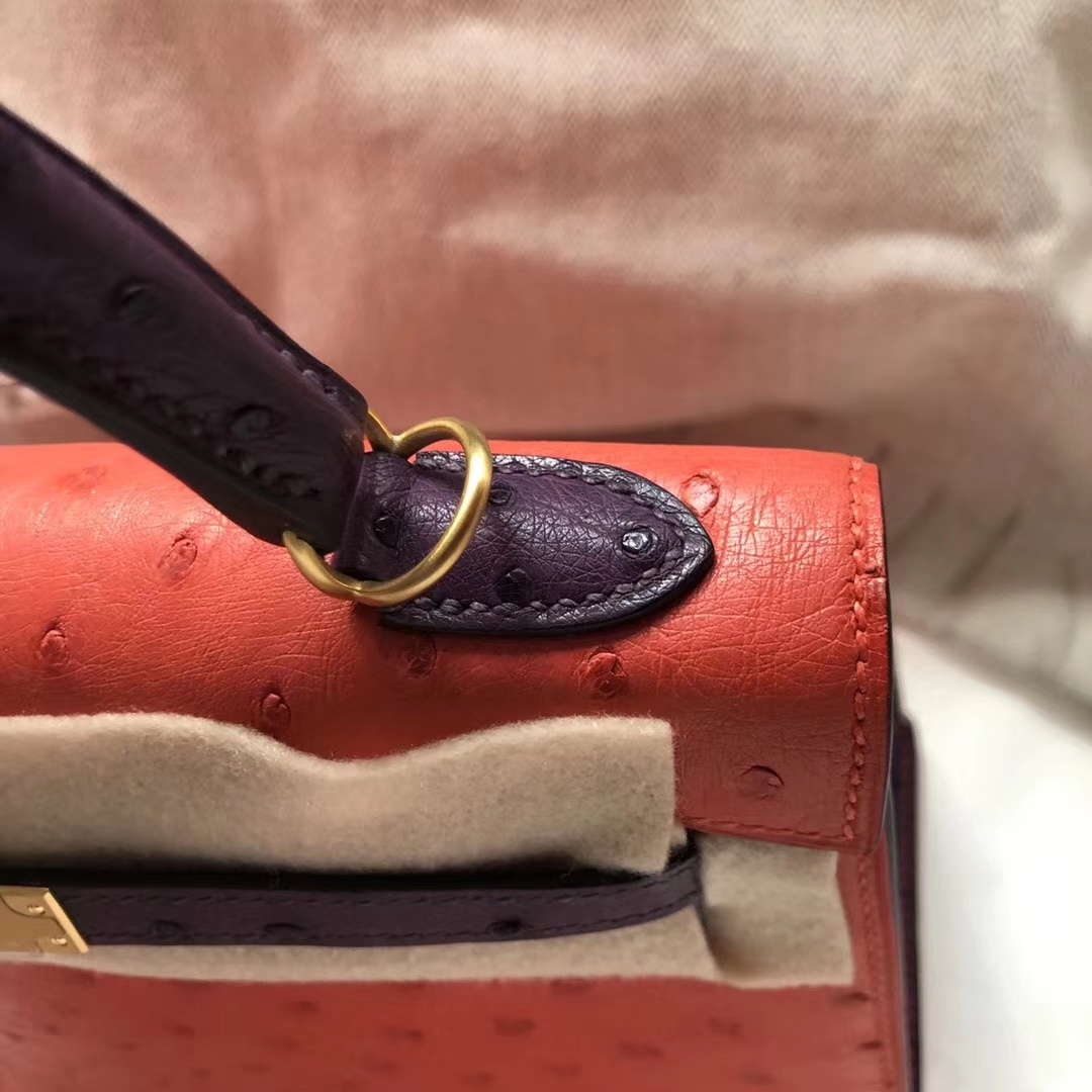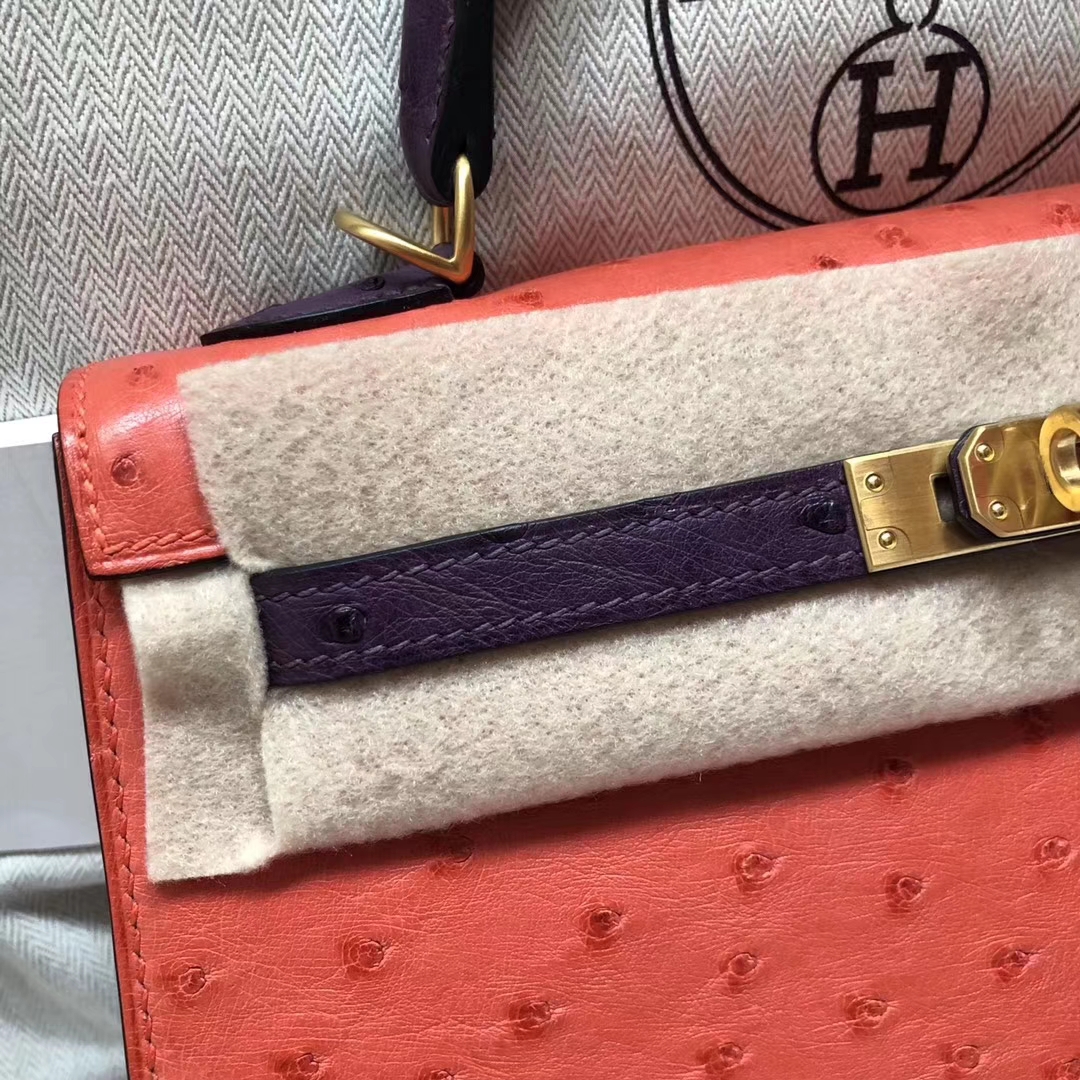 Hermès(爱马仕)Kelly Ostrich kk 鸵鸟 A5 杜鹃红 9w 梦幻紫 金扣 马蹄印 25cm 2018年12月23日 0 【鳄鱼世家】www.Eyubao.com Kelly 25 Kelly 凯莉包 品牌:Hermès(爱马仕);类别:Kelly凯莉包;颜色:杜鹃红;材质: 鸵鸟纹;等级:顶级;附件:全套包装礼盒;尺寸:25cm;功能:手提单肩包