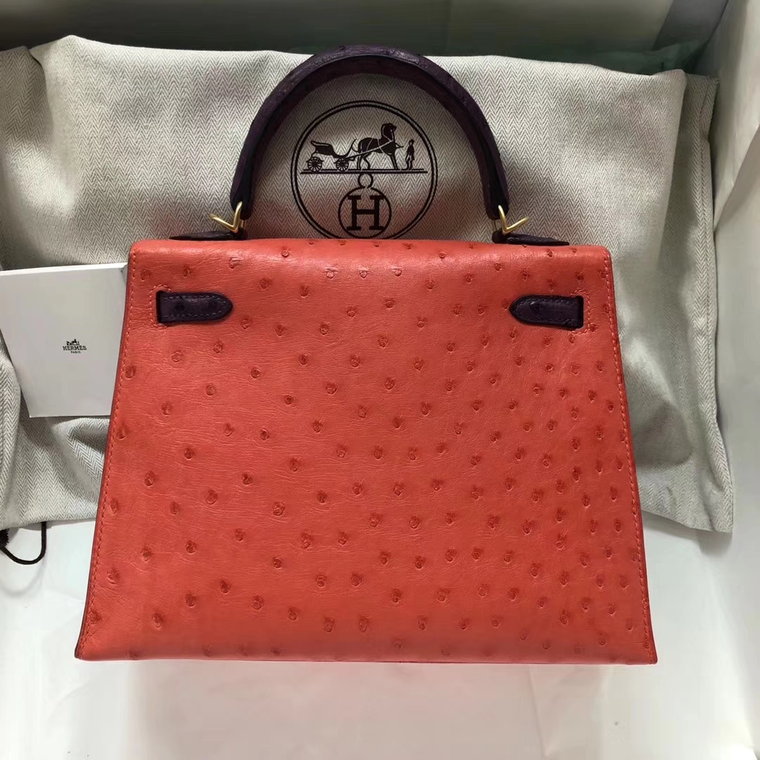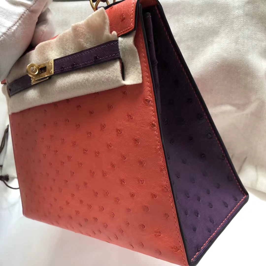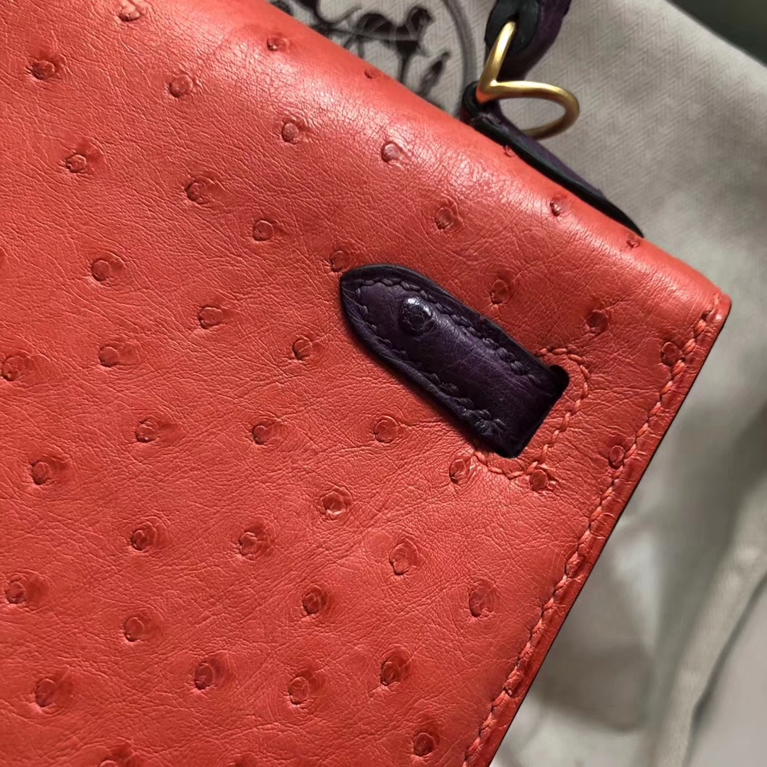 Hermès(爱马仕)Kelly Ostrich kk 鸵鸟 A5 杜鹃红 9w 梦幻紫 金扣 马蹄印 25cm 2018年12月23日 0 【鳄鱼世家】www.Eyubao.com Kelly 25 Kelly 凯莉包 品牌:Hermès(爱马仕);类别:Kelly凯莉包;颜色:杜鹃红;材质: 鸵鸟纹;等级:顶级;附件:全套包装礼盒;尺寸:25cm;功能:手提单肩包