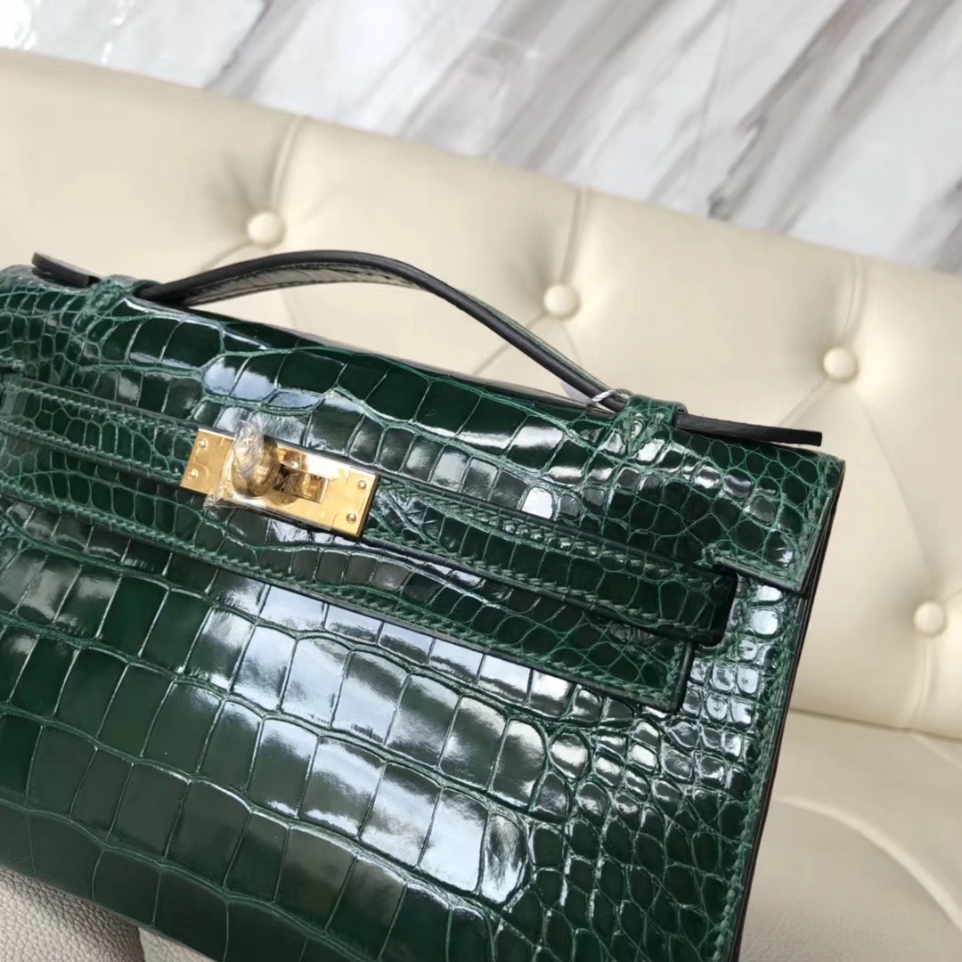 Hermès(爱马仕)Minikelly pochette 亮面鳄鱼 ck67 祖母绿 金扣 手拿包 晚宴包 22cm 2018年12月23日 0 【鳄鱼世家】www.Eyubao.com Mini Kelly 1 Mini Kelly 迷你凯莉 品牌:Hermès(爱马仕);类别:Mini Kelly迷你凯莉包;颜色:祖母绿;材质:亮面鳄鱼;等级:顶级;附件:全套包装礼盒;功能:手拿包 晚宴包