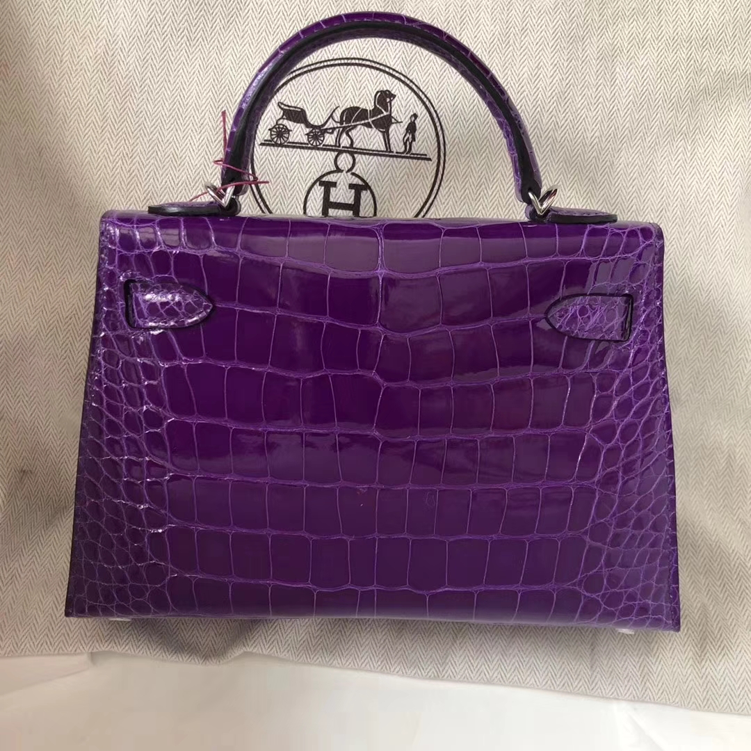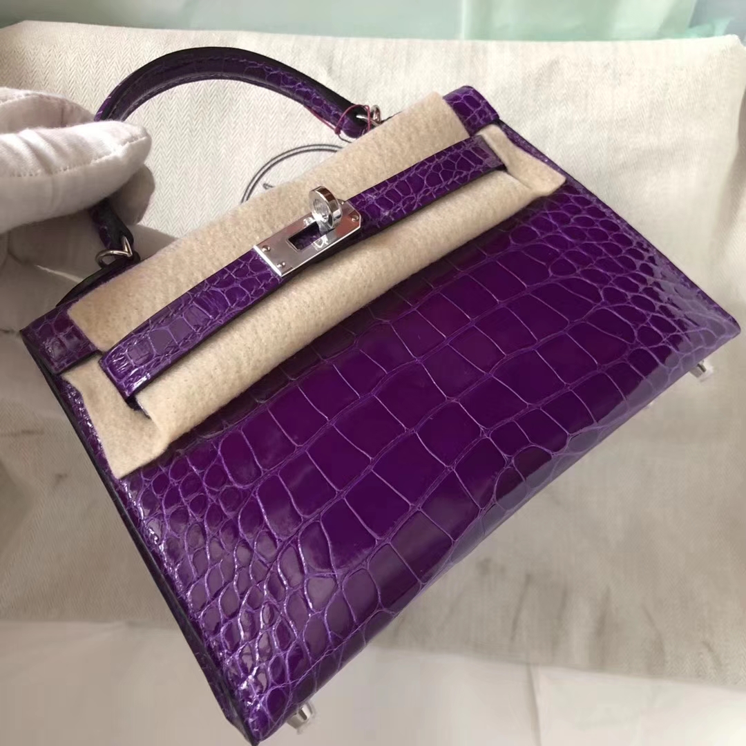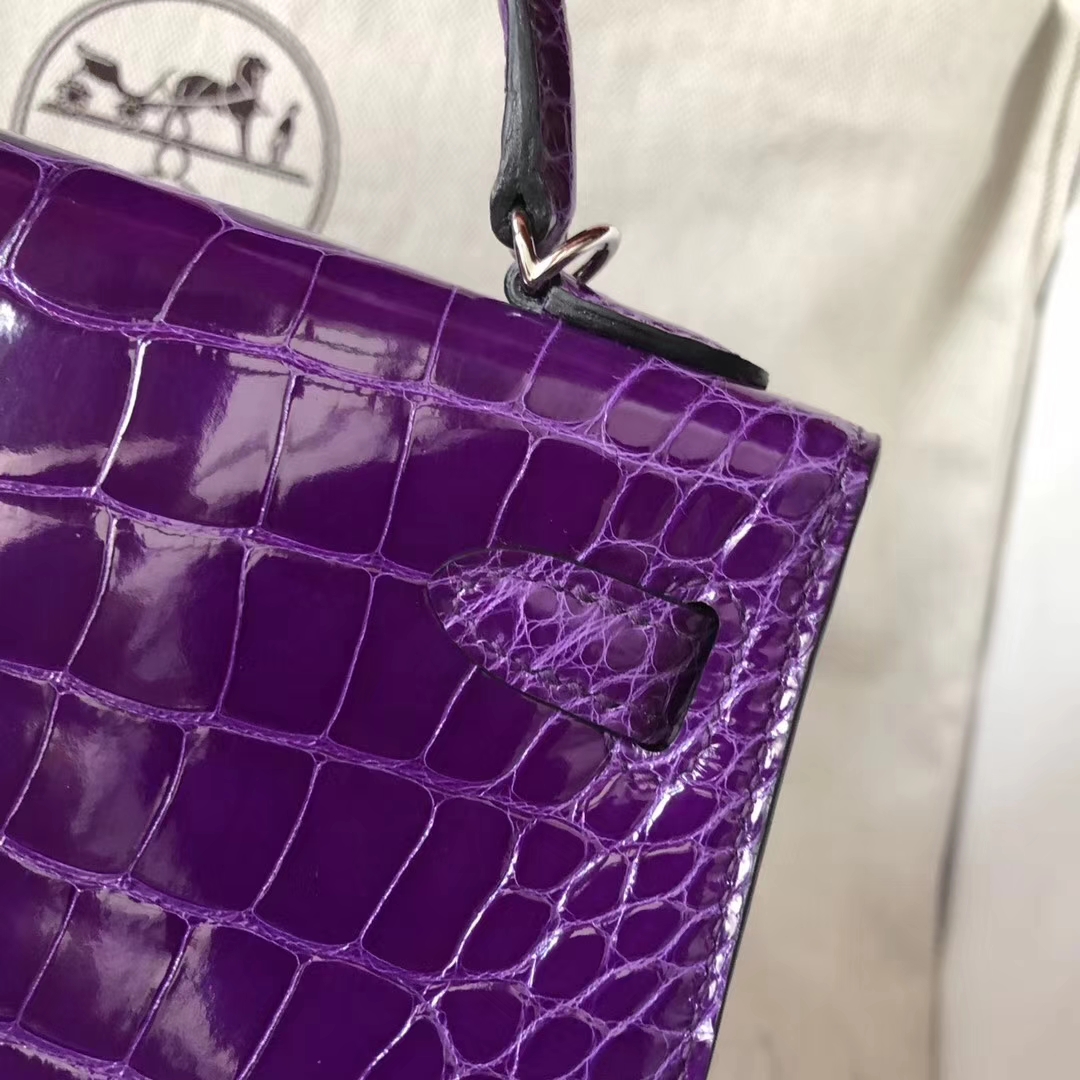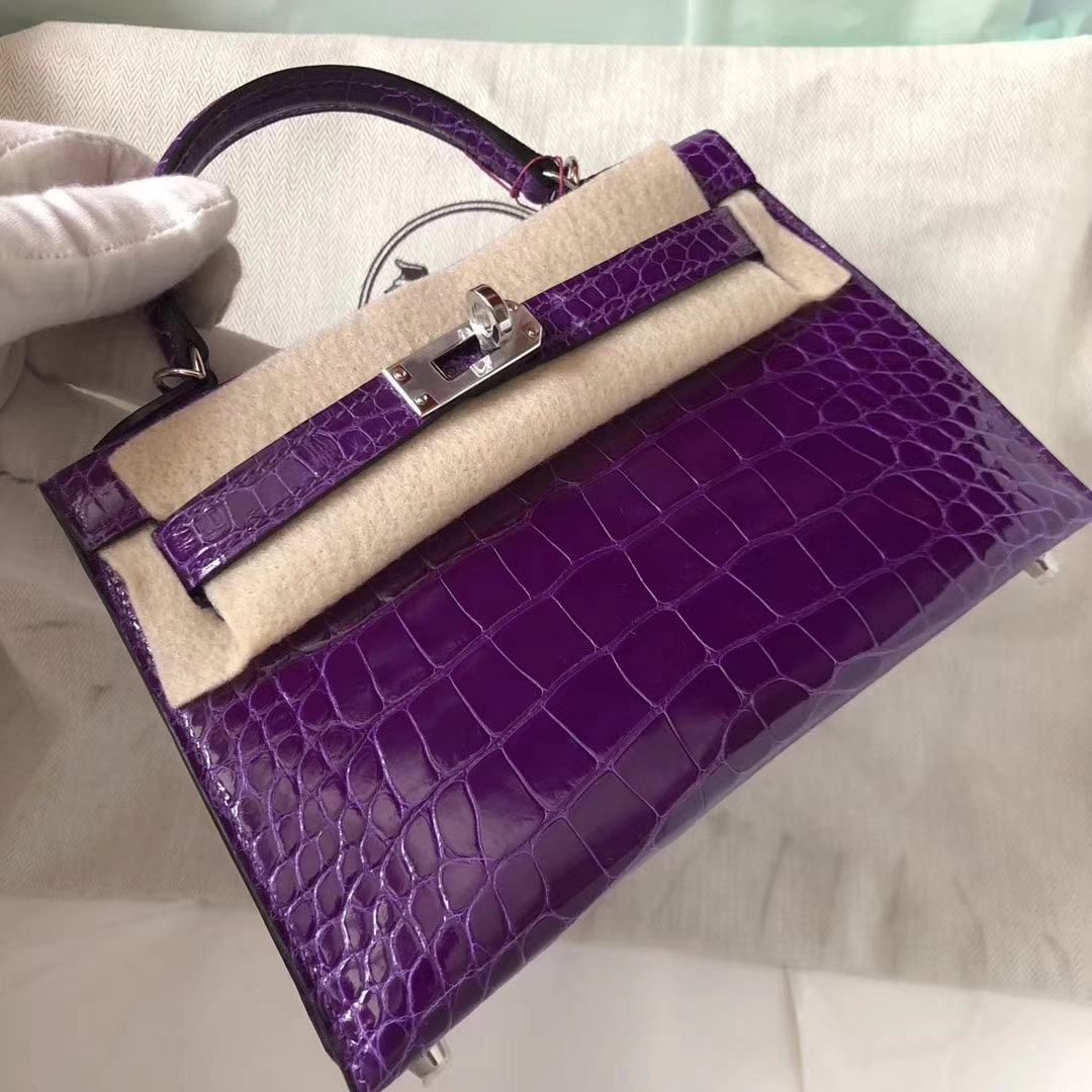 Hermès(爱马仕)Minikelly ll Alligator shiny 亮面鳄鱼 5L 极度紫 银扣 2018年12月23日 0 【鳄鱼世家】www.Eyubao.com Mini Kelly 2 Mini Kelly 迷你凯莉 品牌:Hermès(爱马仕);类别:Mini Kelly迷你凯莉包;颜色:极度紫;材质:亮面鳄鱼;等级:顶级;附件:全套包装礼盒;功能:手提单肩包
