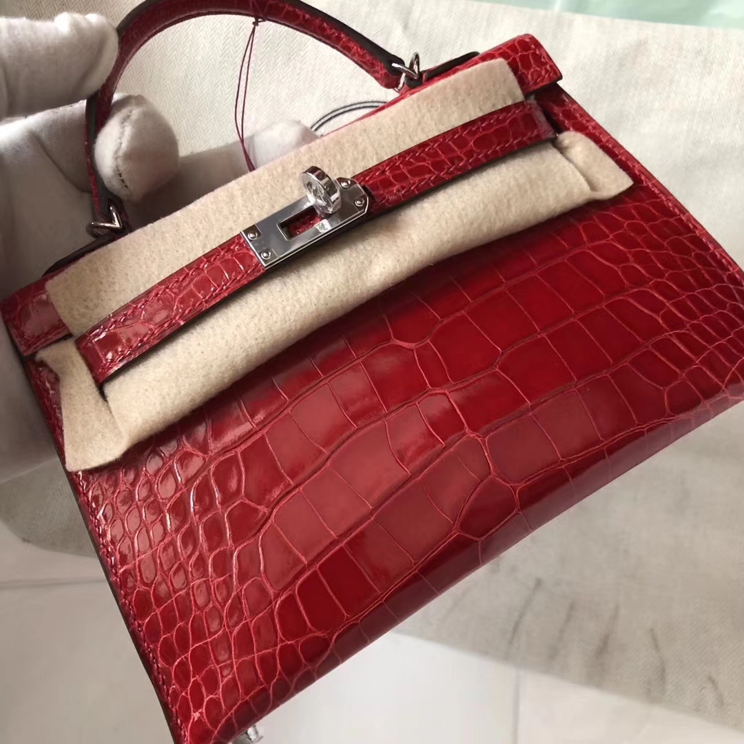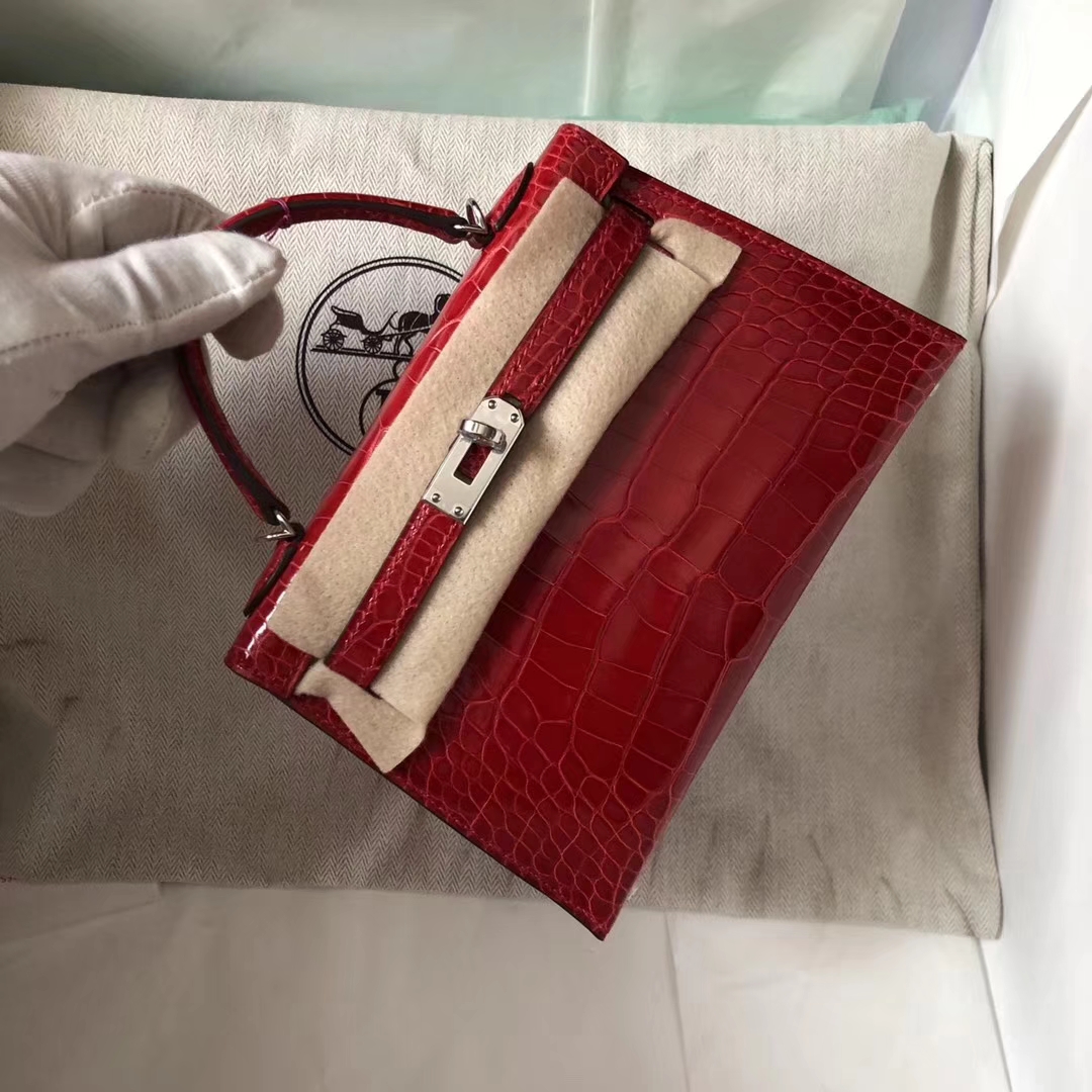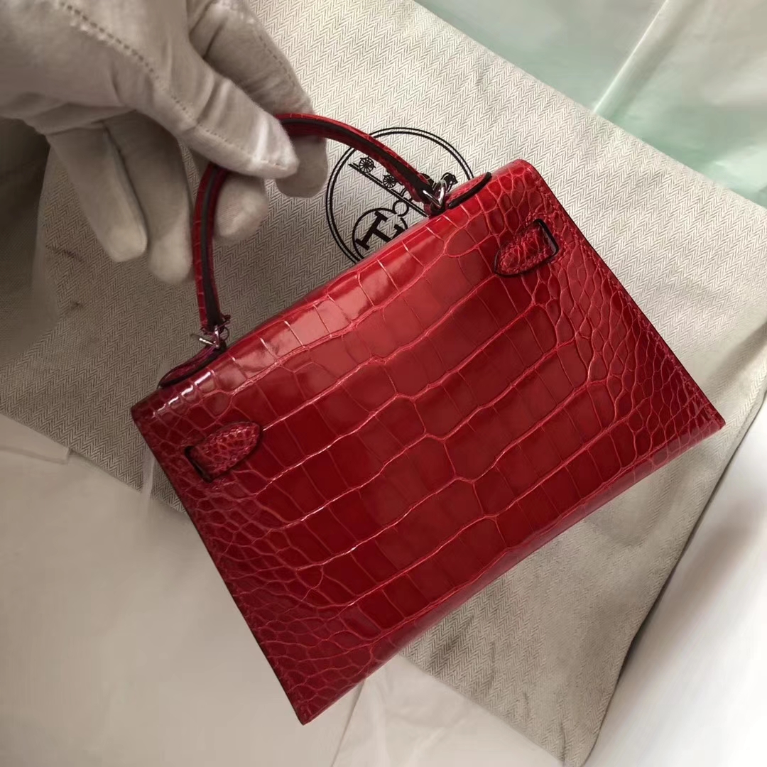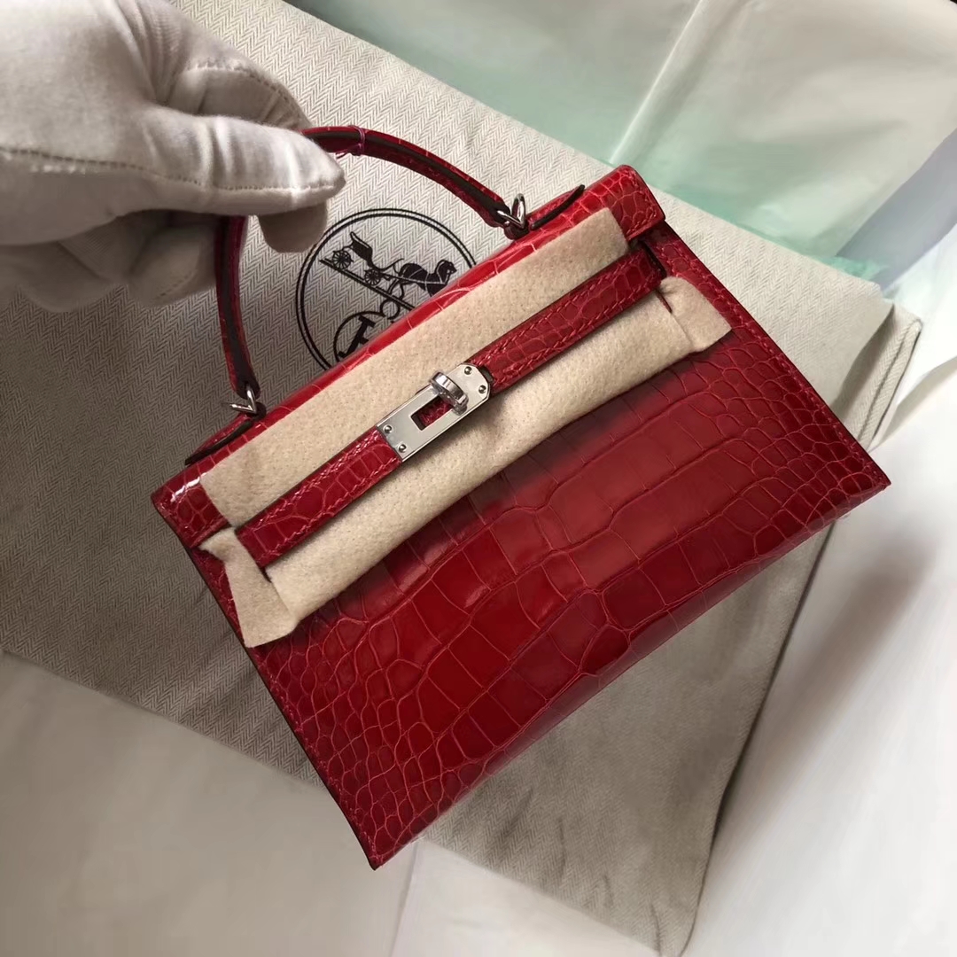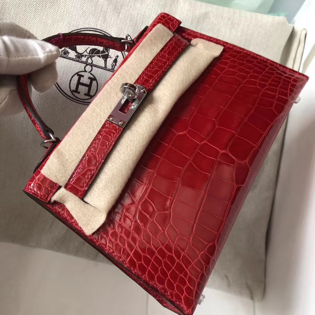 Hermès(爱马仕)Minikelly ll Alligator shiny 亮面鳄鱼 ck95 法拉利红 Braise 银扣 2018年12月23日 0 【鳄鱼世家】www.Eyubao.com Mini Kelly 2 Mini Kelly 迷你凯莉 品牌:Hermès(爱马仕);类别:Mini Kelly迷你凯莉包;颜色:法拉利红;材质:亮面鳄鱼;等级:顶级;附件:全套包装礼盒;功能:手提单肩包