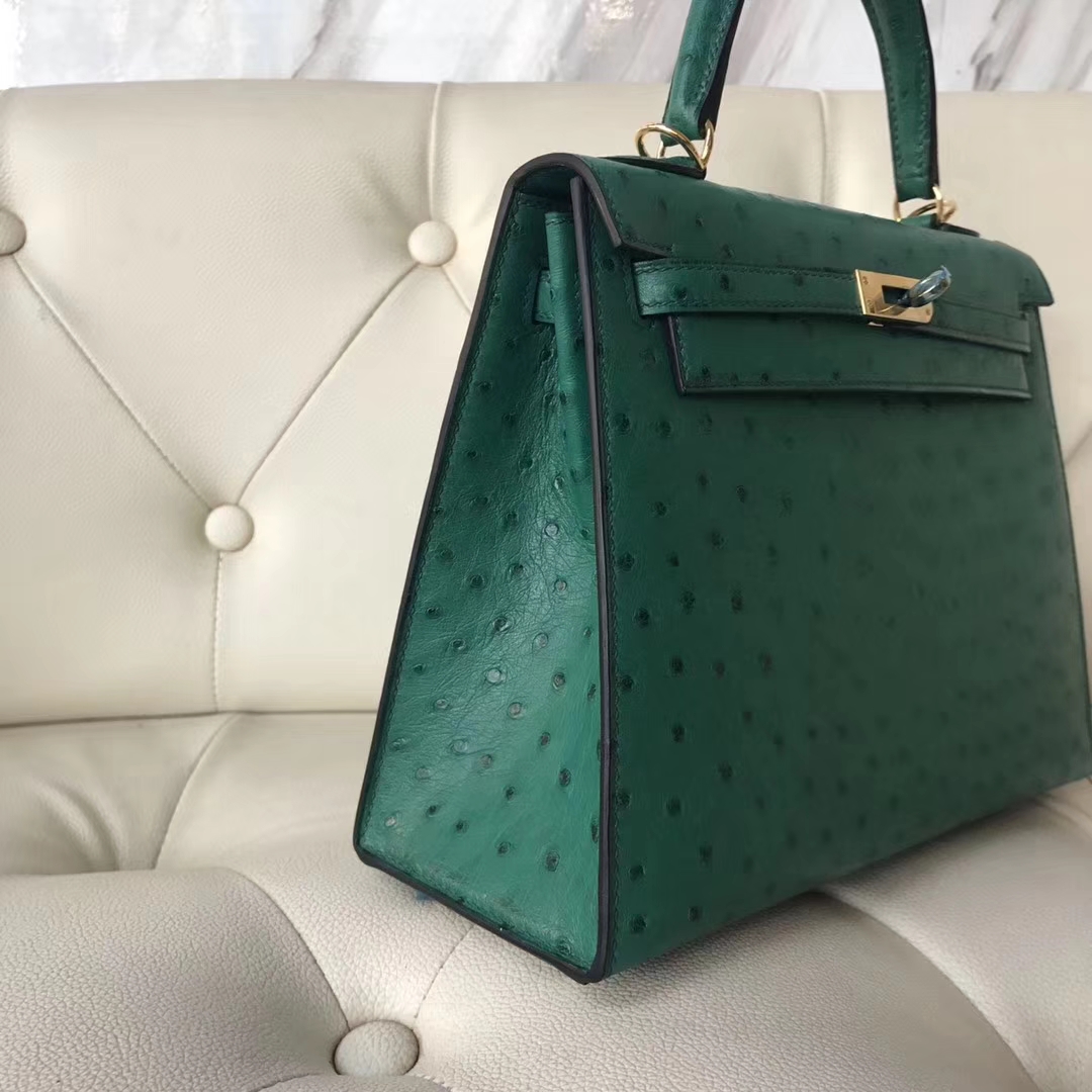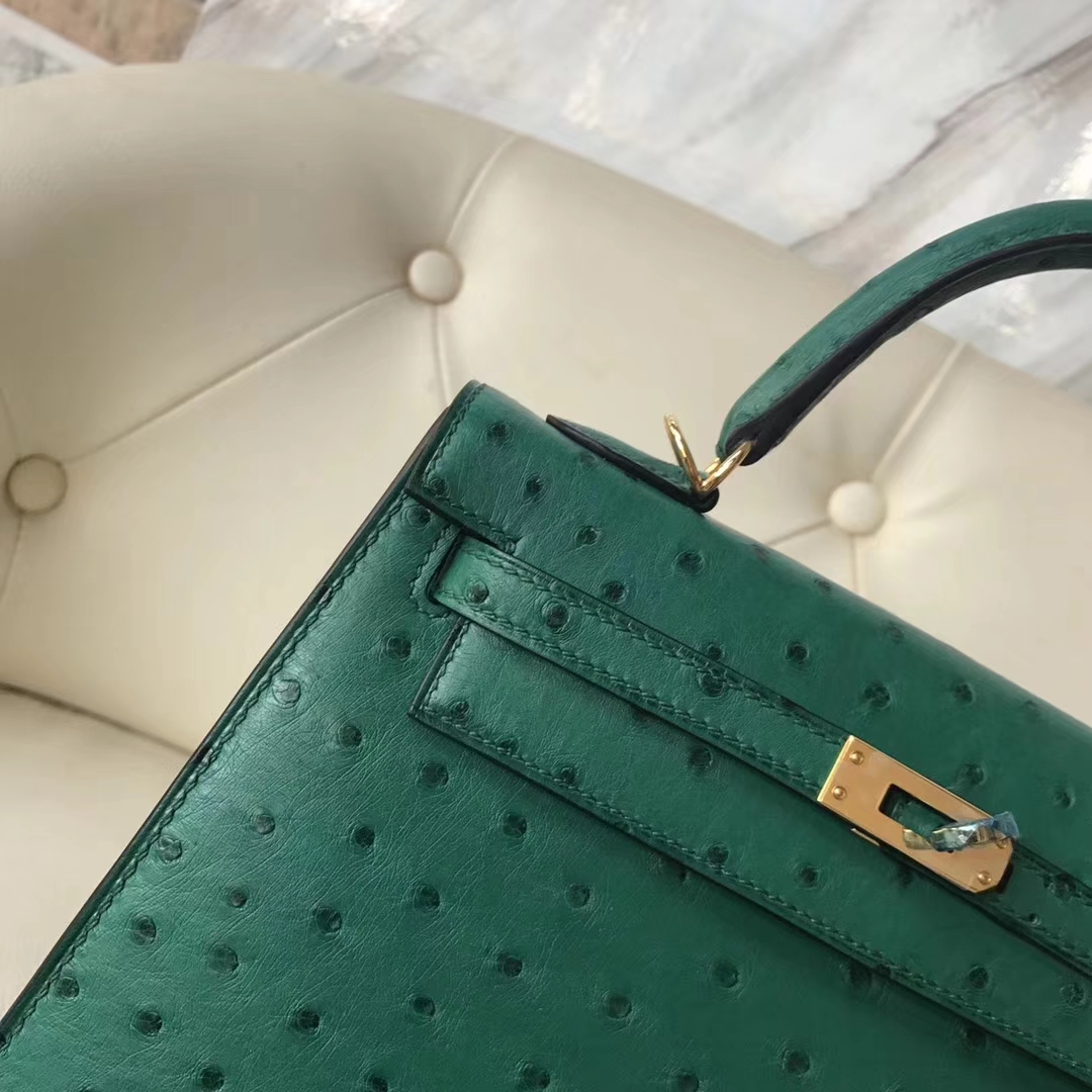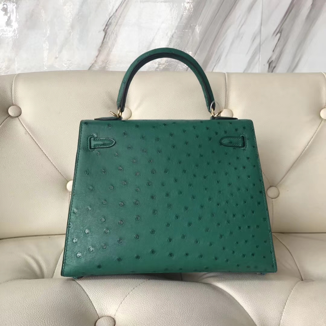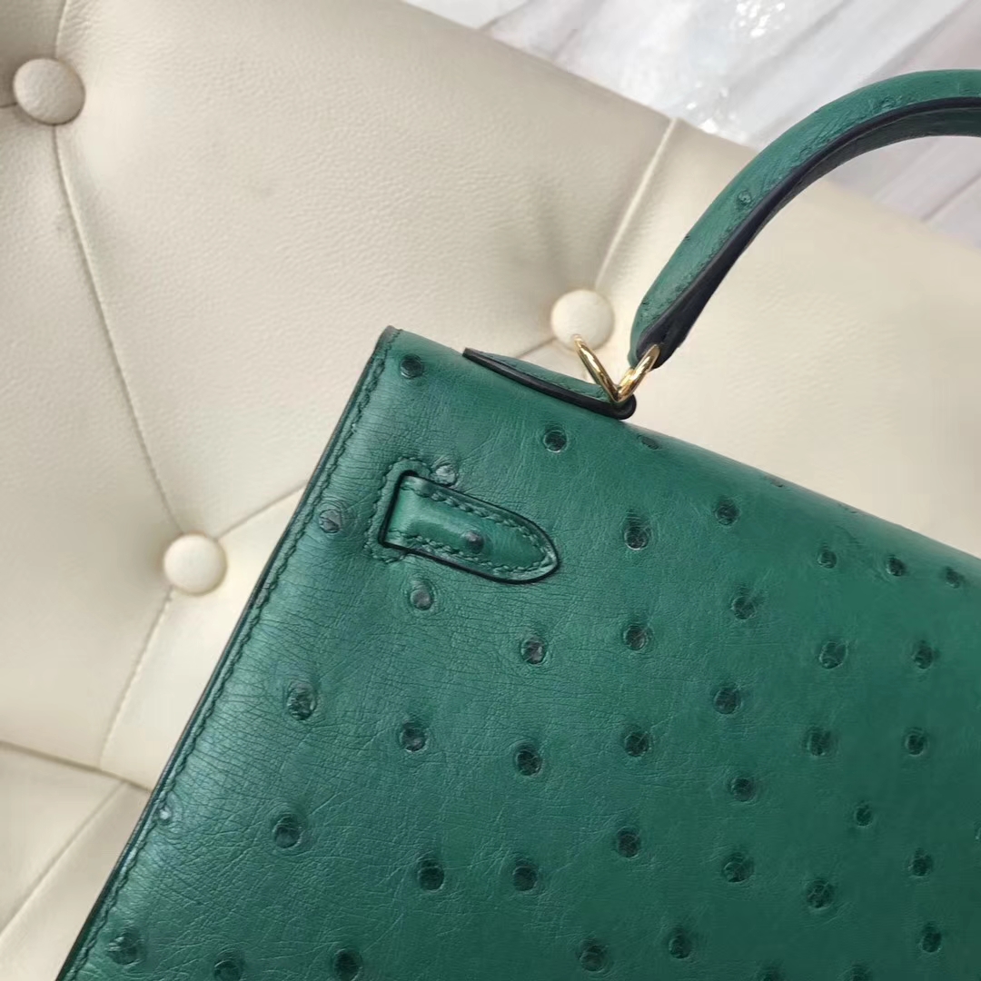 Hermès(爱马仕)Kelly ostrich kk鸵鸟 U4丝绒绿 顶级工艺 蜡线全手工 金扣 25cm 2018年12月23日 0 【鳄鱼世家】www.Eyubao.com Kelly 25 Kelly 凯莉包 品牌:Hermès(爱马仕);类别:Kelly凯莉包;颜色:丝绒绿;材质: 鸵鸟纹;等级:顶级;附件:全套包装礼盒;尺寸:25cm;功能:手提单肩包