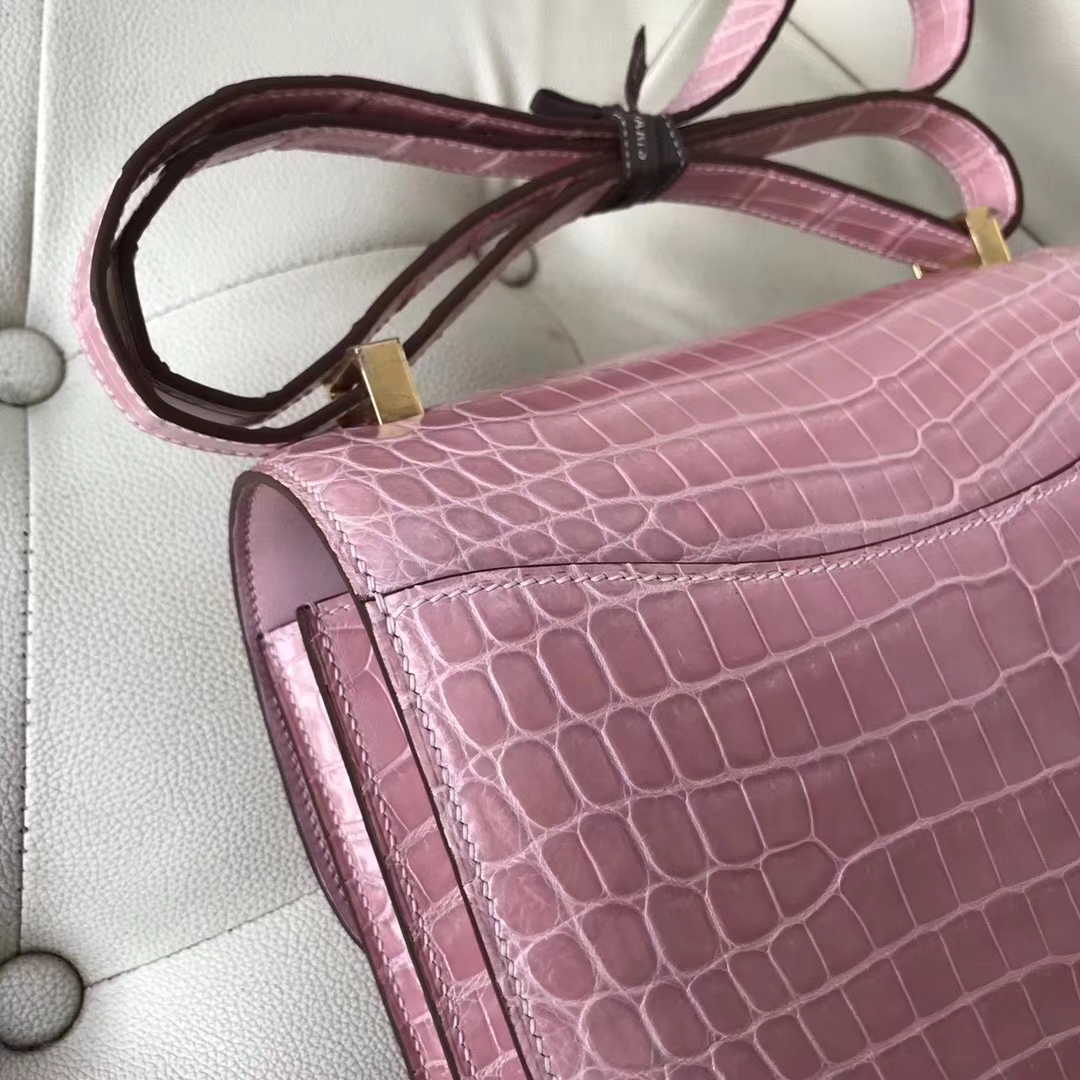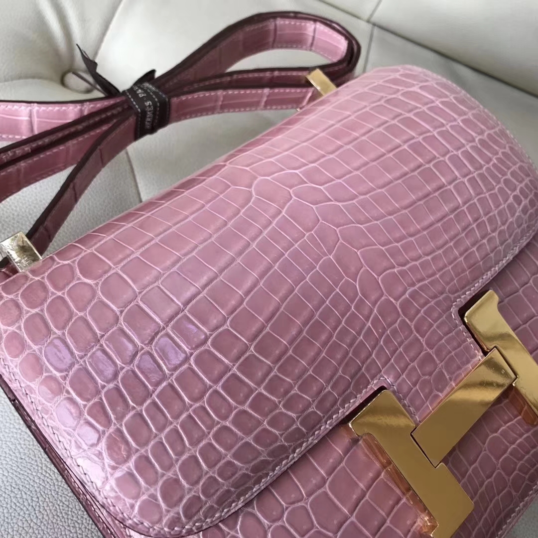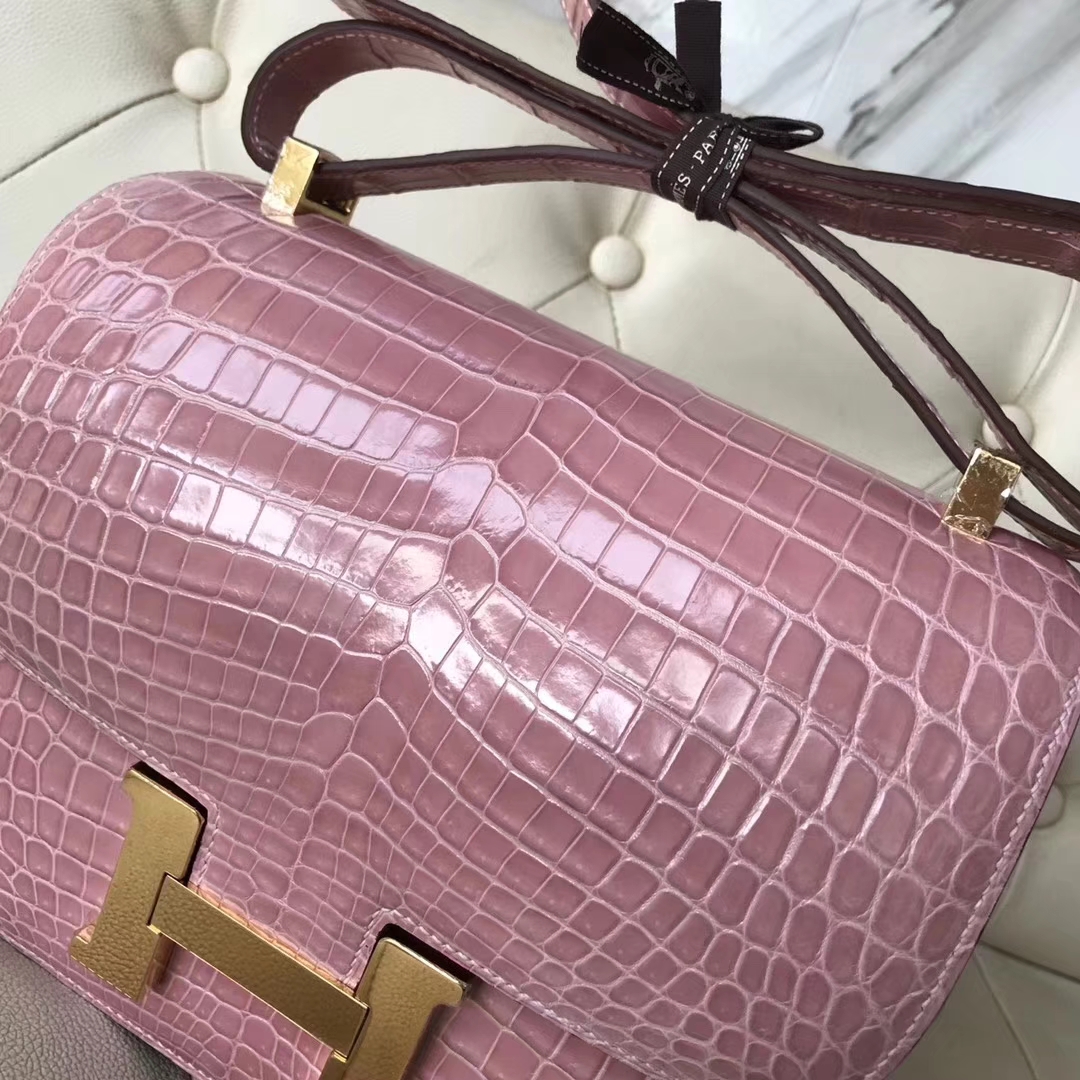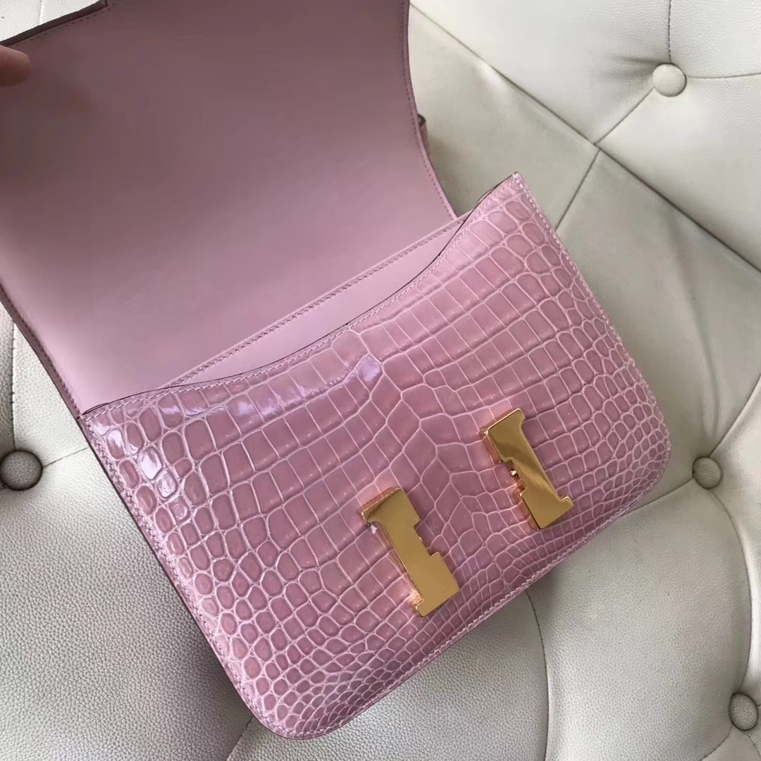 Hermès(爱马仕)Constance shiny nilo crocodile 亮面尼罗鳄 1Q奶昔粉 23cm 接受定制 2019年1月18日 0 【鳄鱼世家】www.Eyubao.com Constance 24 Constance 空姐包 品牌:Hermès(爱马仕);类别:Constance 空姐包;颜色:奶昔粉;材质:亮面尼罗鳄;等级:顶级;附件:全套包装礼盒;尺寸:23cm;功能:单肩背包