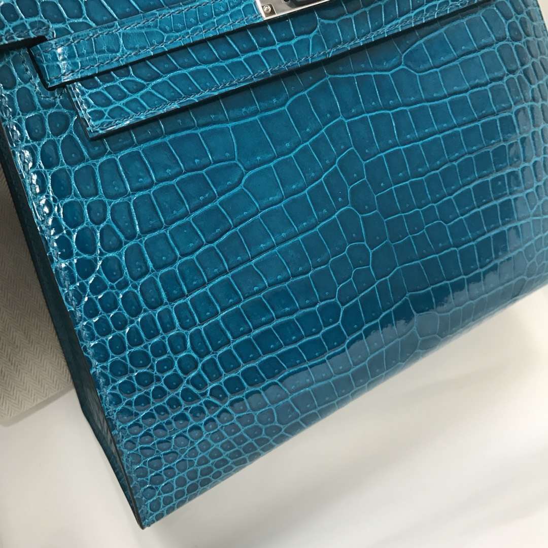 Hermès(爱马仕)Kelly porosus shiny 亮面澳洲 7w 伊兹密尔蓝 Blue izmir 银扣 25cm 2019年1月18日 0 【鳄鱼世家】www.Eyubao.com Kelly 25 Kelly 凯莉包 品牌:Hermès(爱马仕);类别:Kelly凯莉包;颜色:伊兹密尔蓝;材质: 亮面澳洲;等级:顶级;附件:全套包装礼盒;尺寸:25cm;功能:手提单肩包