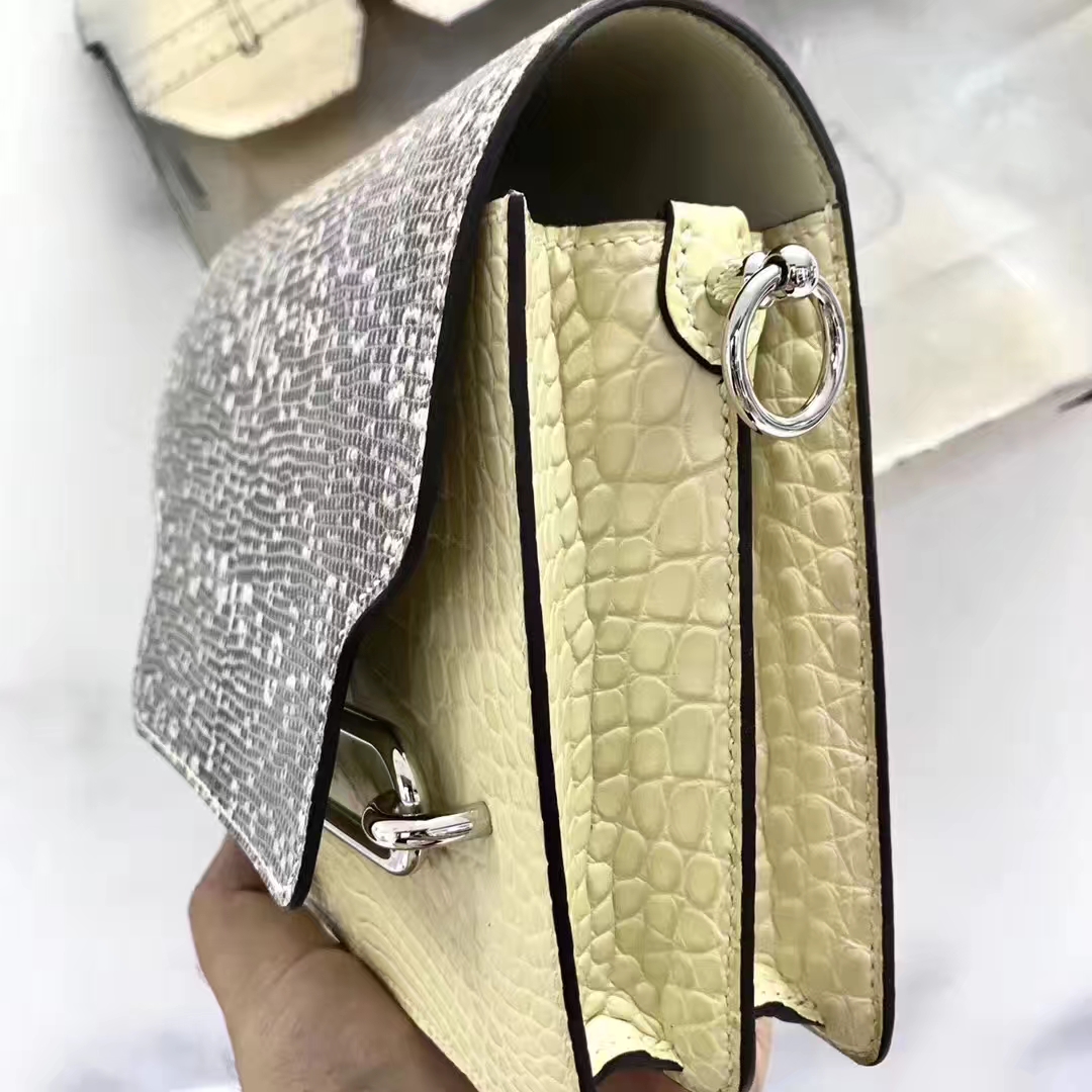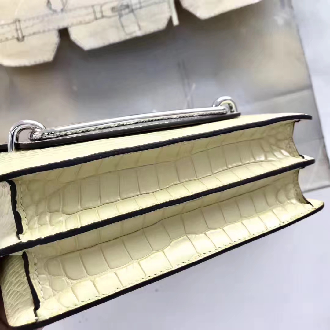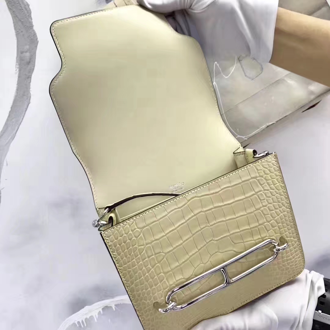 Hermès(爱马仕)Roulis 8L 奶油白 蜥蜴 小喜马拉雅色 银扣 现货 18cm 2019年1月19日 0 【鳄鱼世家】www.Eyubao.com Roulis 猪鼻子 品牌:Hermès(爱马仕);类别:Roulis猪鼻包;颜色:小喜马拉雅色;材质:精选蜥蜴;等级:顶级;附件:全套包装礼盒;尺寸:18cm;功能:单肩斜挎包