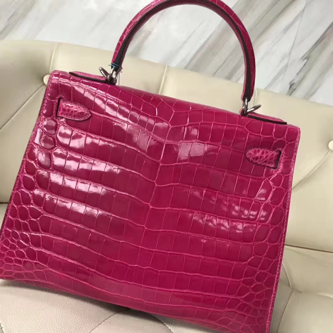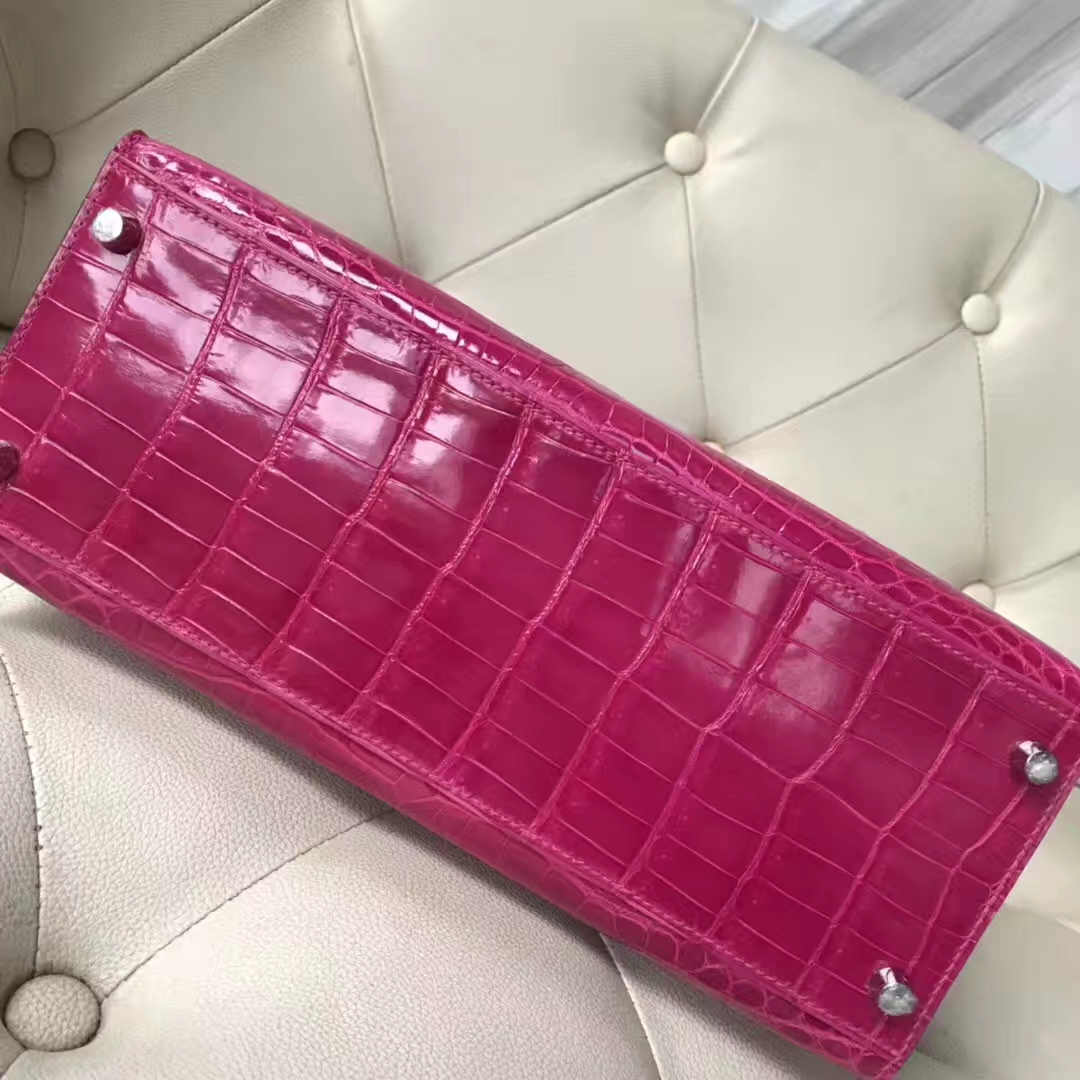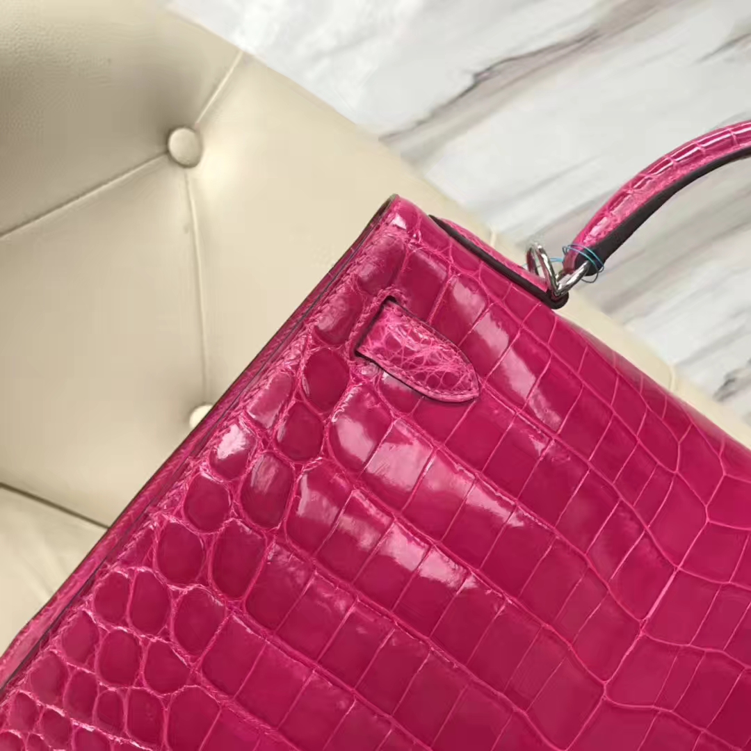 Hermès(爱马仕)Kelly Crocodile shiny 亮面鳄鱼J5 天方夜谭粉紫 银扣 现货 28cm 2019年1月19日 0 【鳄鱼世家】www.Eyubao.com Kelly 28 Kelly 凯莉包 品牌:Hermès(爱马仕);类别:Kelly凯莉包;颜色:天方夜谭粉紫;材质: 亮面鳄鱼;等级:顶级;附件:全套包装礼盒;尺寸:28cm;功能:手提单肩包