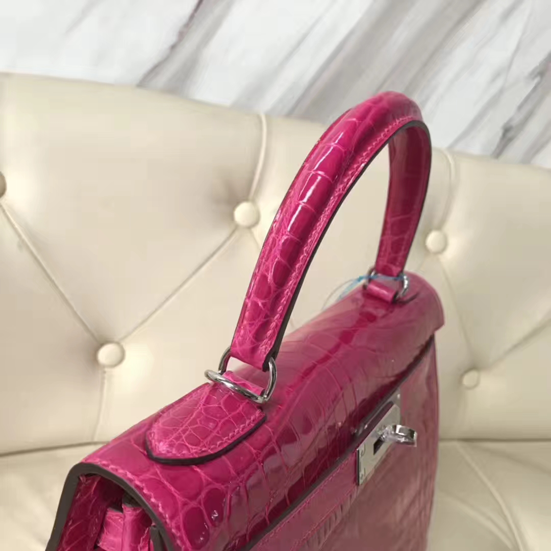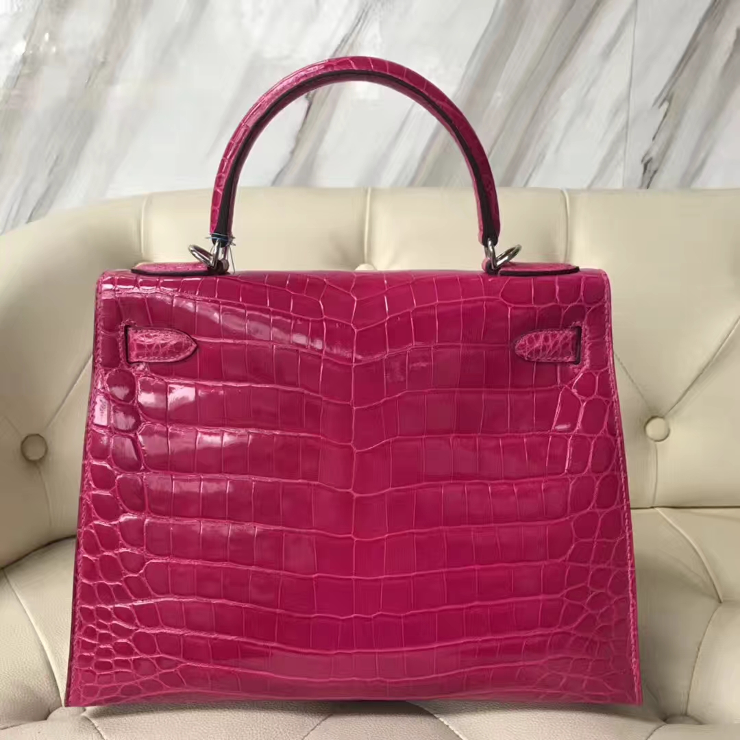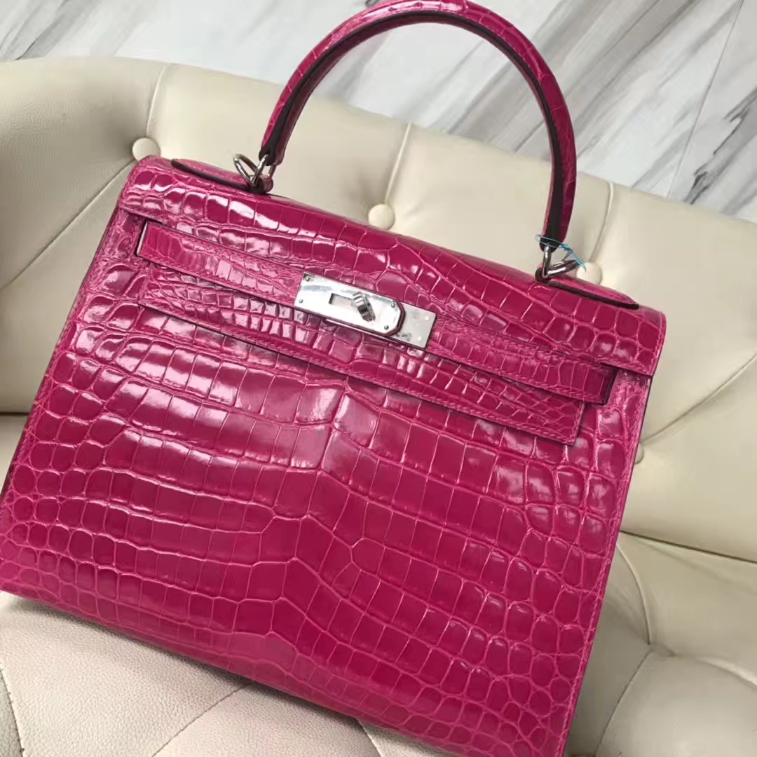 Hermès(爱马仕)Kelly Crocodile shiny 亮面鳄鱼J5 天方夜谭粉紫 银扣 现货 28cm 2019年1月19日 0 【鳄鱼世家】www.Eyubao.com Kelly 28 Kelly 凯莉包 品牌:Hermès(爱马仕);类别:Kelly凯莉包;颜色:天方夜谭粉紫;材质: 亮面鳄鱼;等级:顶级;附件:全套包装礼盒;尺寸:28cm;功能:手提单肩包