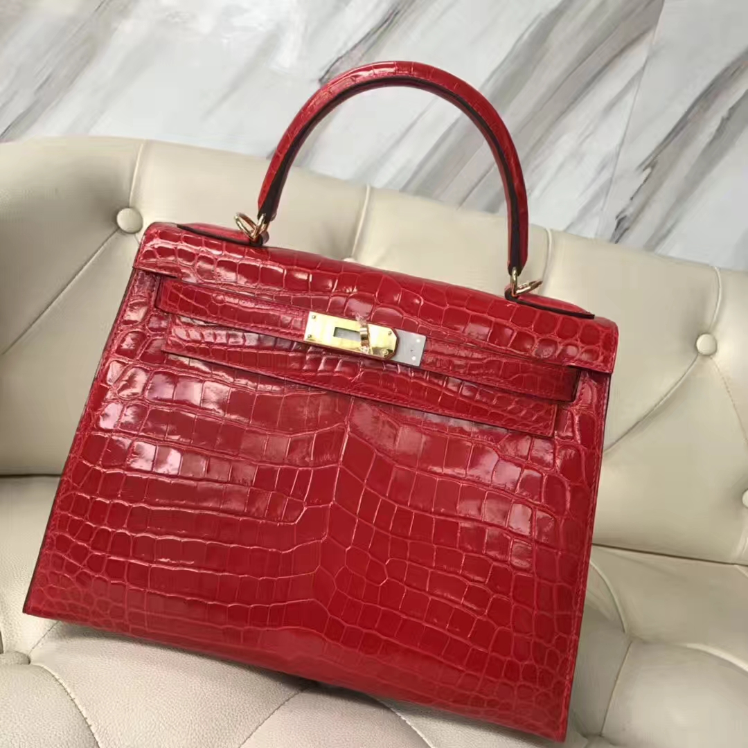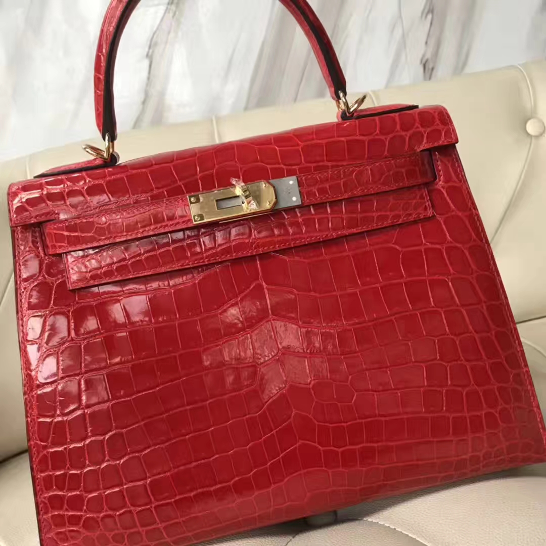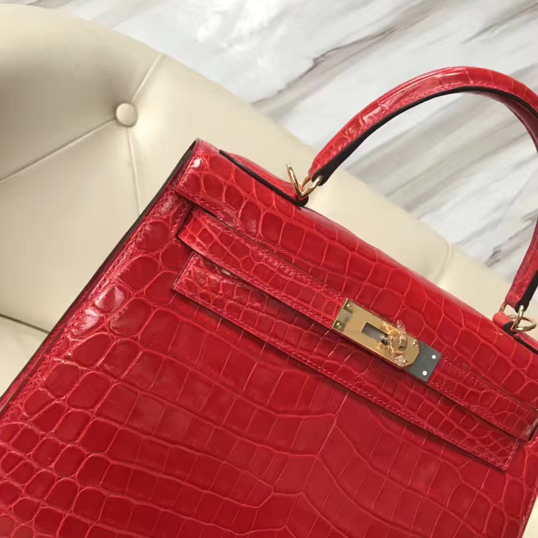 Hermès(爱马仕)Kelly Crocodile shiny 亮面鳄鱼ck95 法拉利红 Braise 金扣 28cm 2019年1月19日 0 【鳄鱼世家】www.Eyubao.com Kelly 28 Kelly 凯莉包 品牌:Hermès(爱马仕);类别:Kelly凯莉包;颜色:法拉利红;材质: 亮面鳄鱼;等级:顶级;附件:全套包装礼盒;尺寸:28cm;功能:手提单肩包