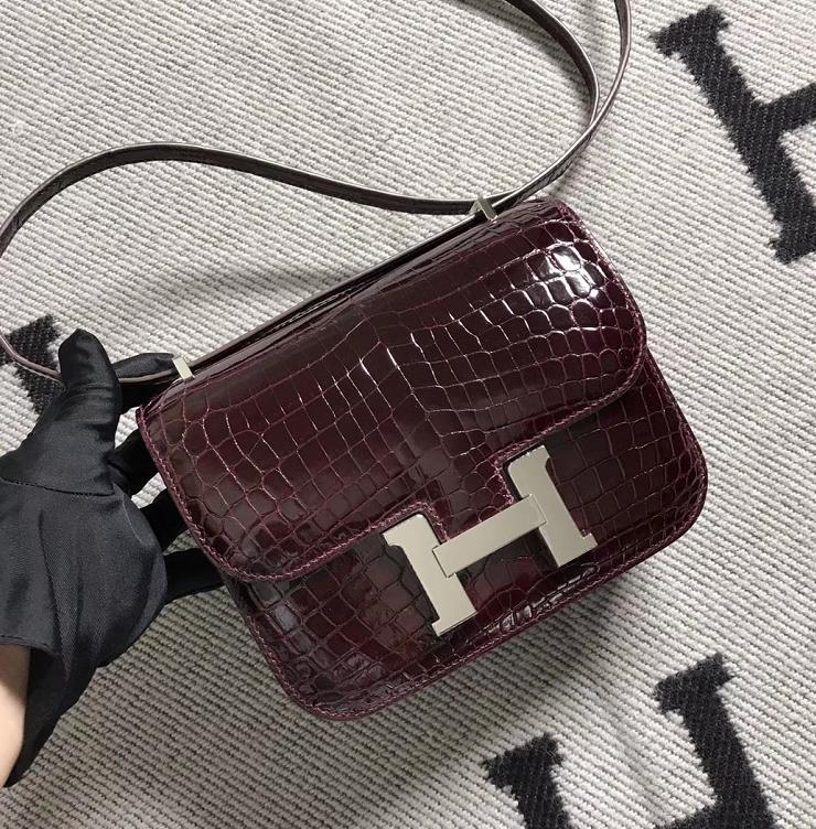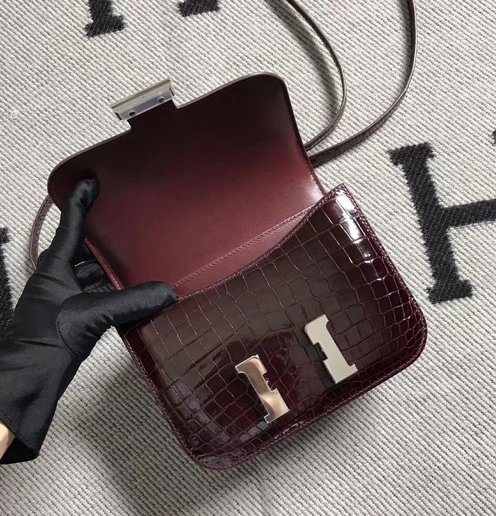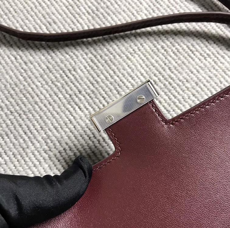 Hermes爱马仕 Constance 19 酒红色 原版皮 银扣 2018年7月30日 0 【鳄鱼世家】www.Eyubao.com Constance 19 Constance 空姐包 品牌:Hermès(爱马仕);类别:Constance空姐包;颜色:酒红色;材质:精选原版皮;等级:顶级;附件:全套包装礼盒;尺寸:19cm;功能:单肩斜挎包