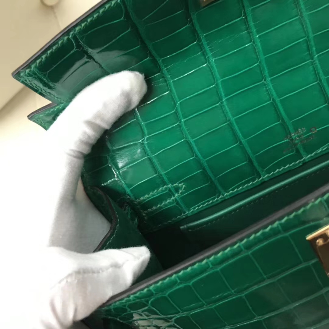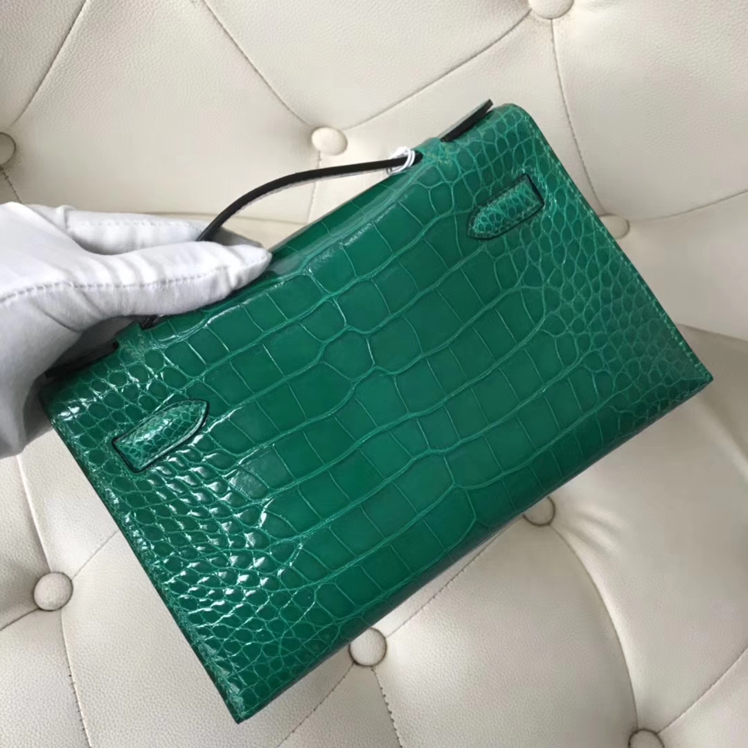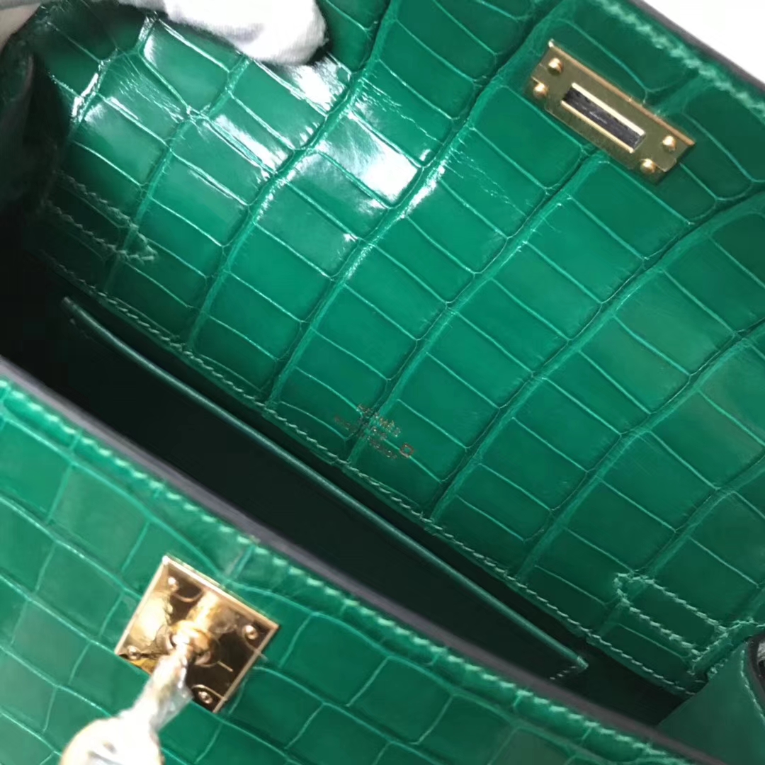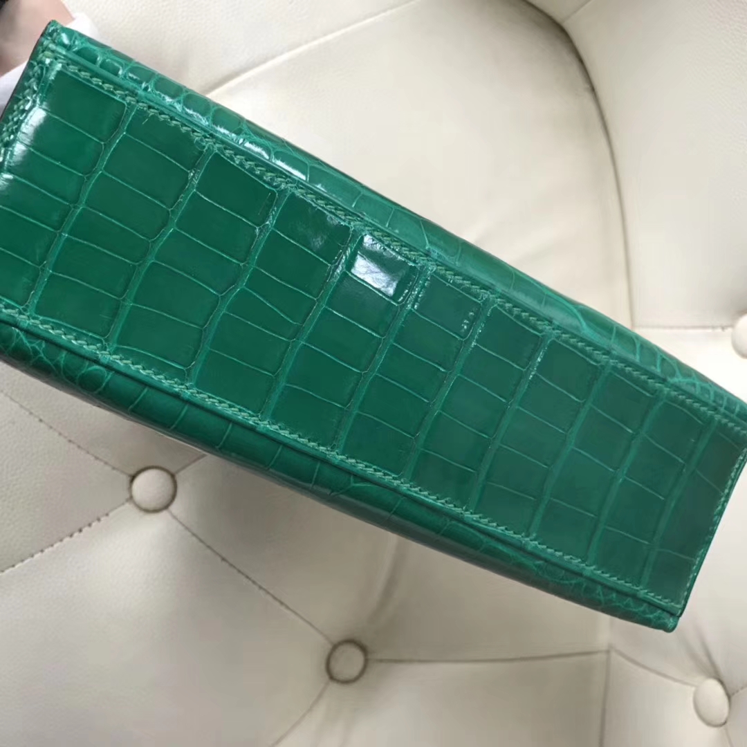 Hermès(爱马仕)Minikelly pochette 亮面鳄鱼 6Q 翡翠绿 金扣 手拿包 晚宴 22cm 2019年1月19日 0 【鳄鱼世家】www.Eyubao.com Mini Kelly 1 Mini Kelly 迷你凯莉 品牌:Hermès(爱马仕);类别:Mini Kelly迷你凯莉包;颜色:翡翠绿;材质:亮面鳄鱼;等级:顶级;附件:全套包装礼盒;功能:晚宴包、手拿包