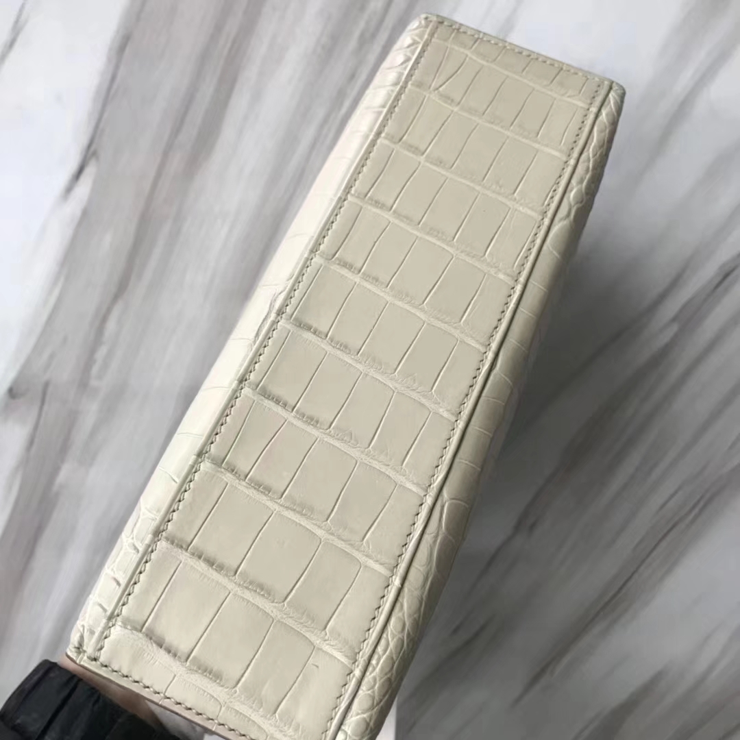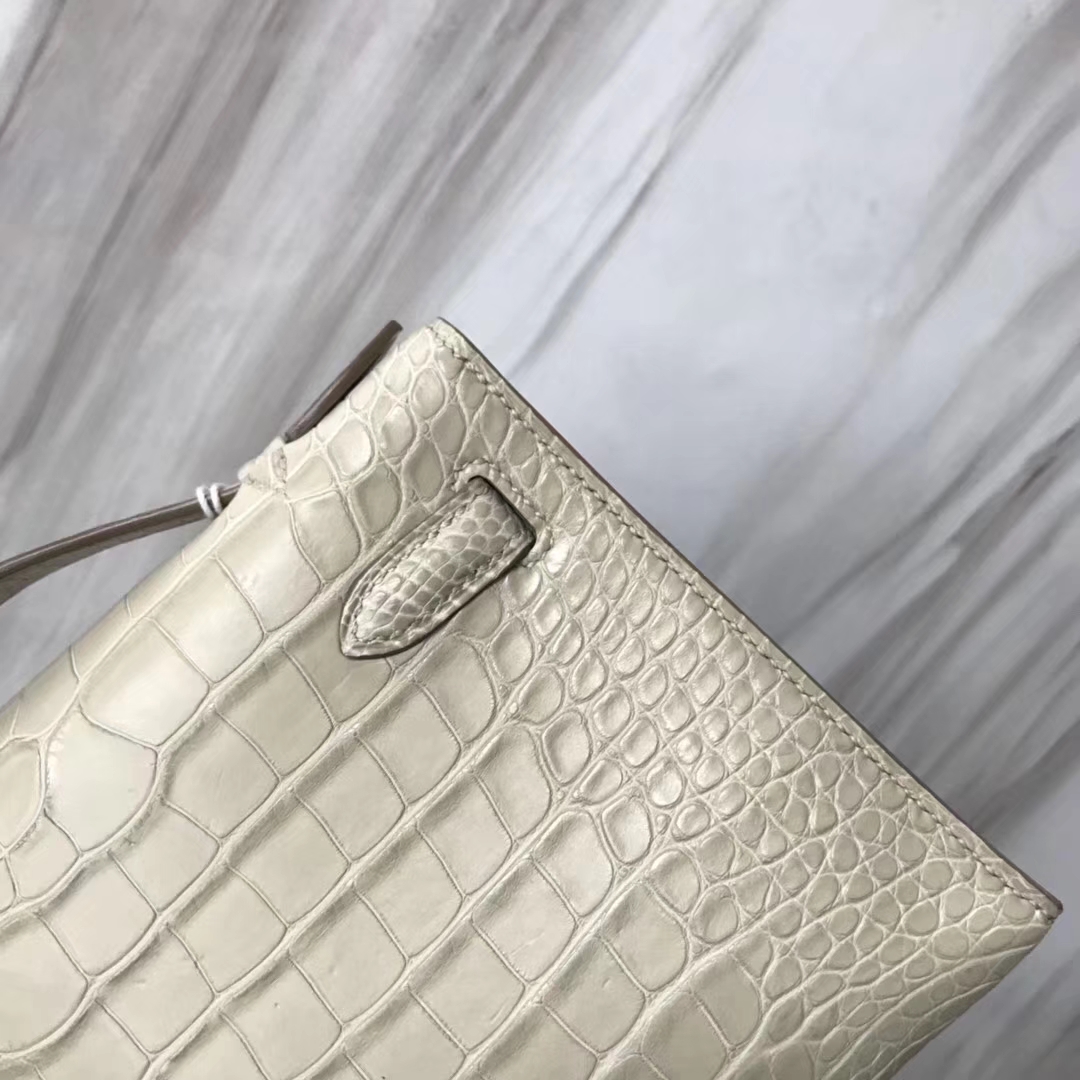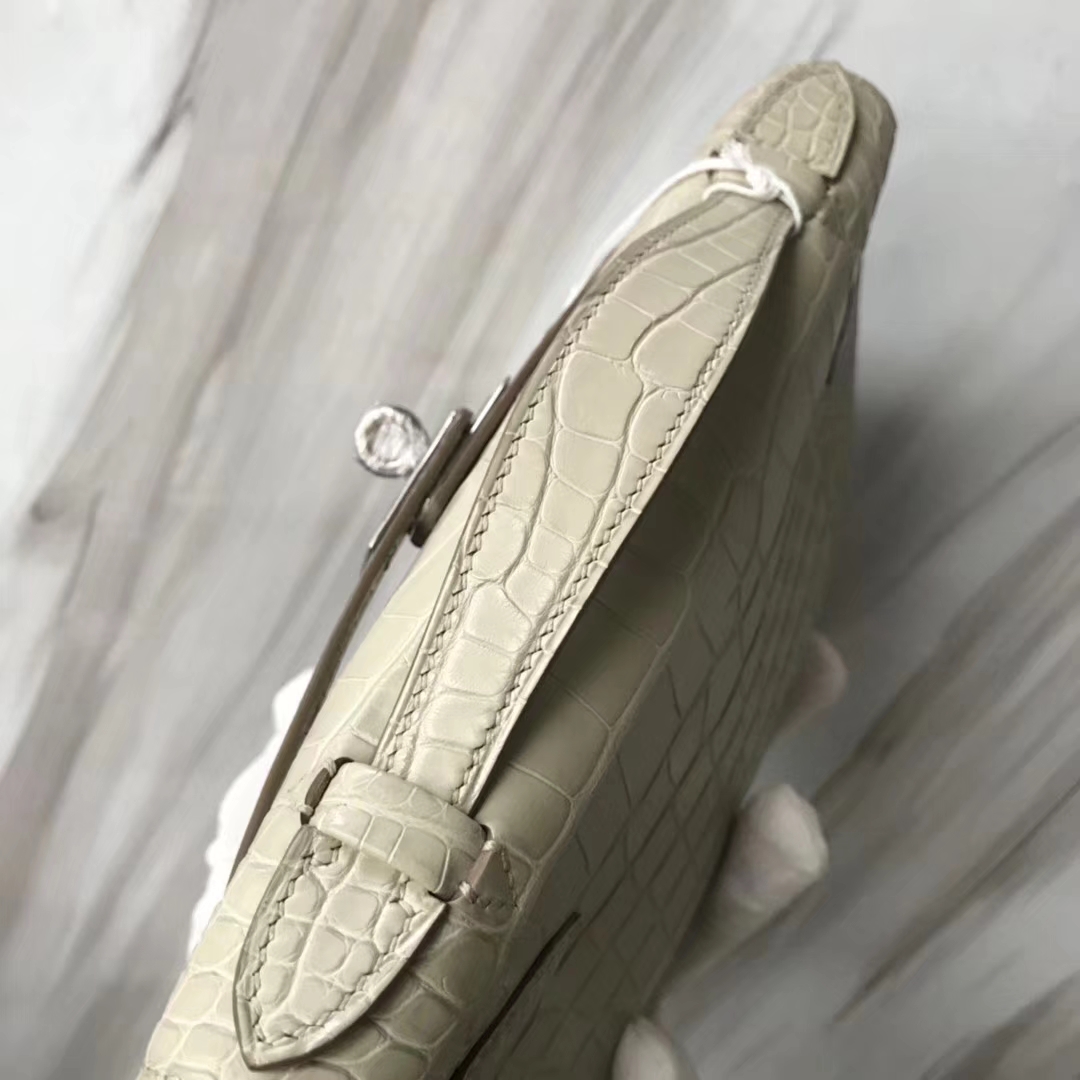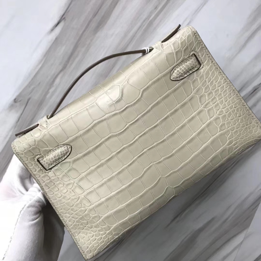 Hermès(爱马仕)Minikelly pochette 雾面鳄鱼 8L 奶油白 beton 银扣 手拿包 晚宴包 22cm 2019年1月19日 0 【鳄鱼世家】www.Eyubao.com Mini Kelly 1 Mini Kelly 迷你凯莉 品牌:Hermès(爱马仕);类别:Mini Kelly迷你凯莉包;颜色:奶油白;材质:雾面鳄鱼;等级:顶级;附件:全套包装礼盒;尺寸:22cm;功能:手提单肩包