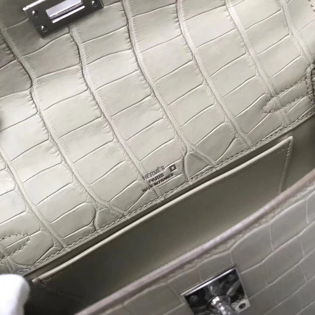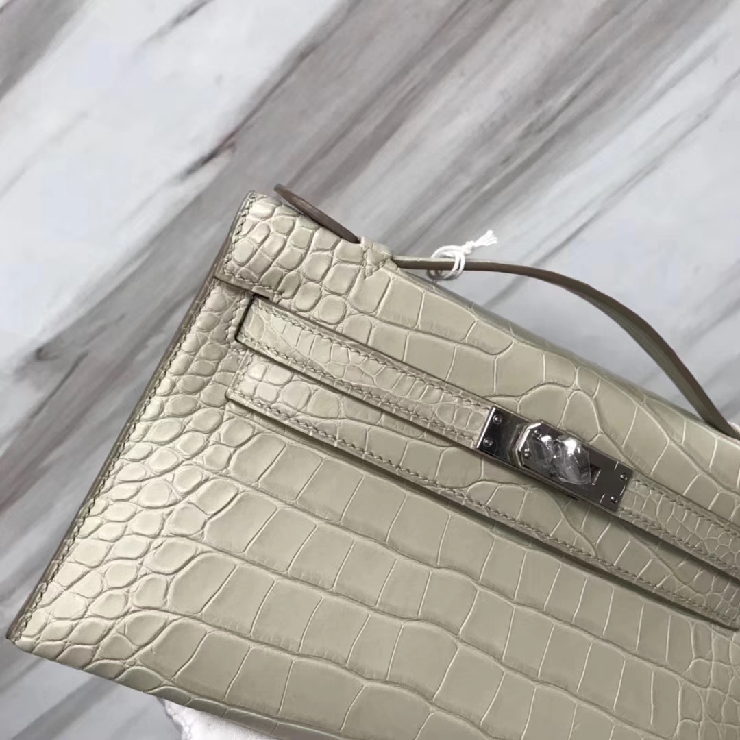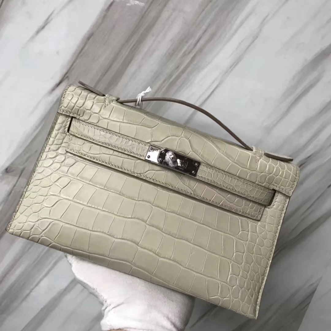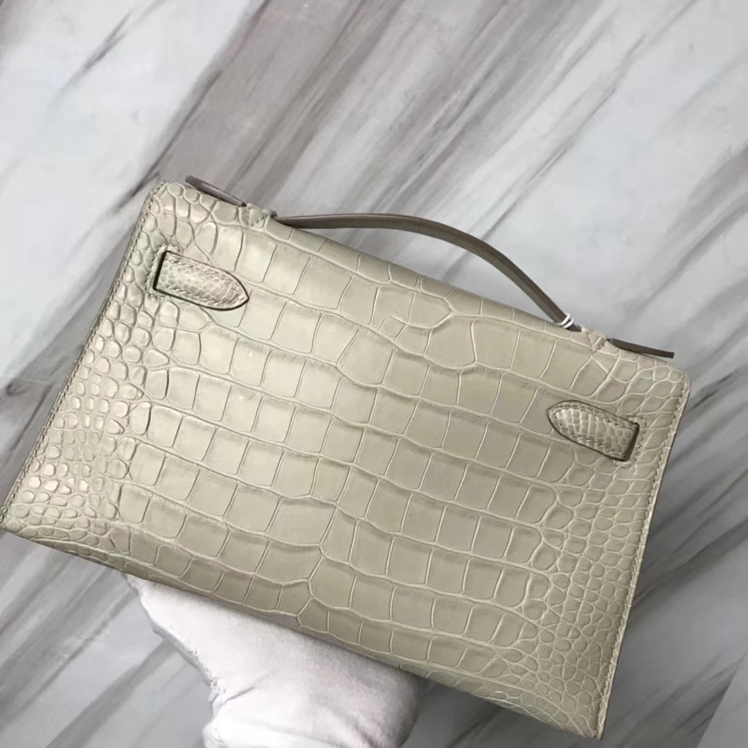 Hermès(爱马仕)Minikelly pochette 雾面鳄鱼 8L 奶油白 beton 银扣 手拿包 晚宴包 22cm 2019年1月19日 0 【鳄鱼世家】www.Eyubao.com Mini Kelly 1 Mini Kelly 迷你凯莉 品牌:Hermès(爱马仕);类别:Mini Kelly迷你凯莉包;颜色:奶油白;材质:雾面鳄鱼;等级:顶级;附件:全套包装礼盒;尺寸:22cm;功能:手提单肩包