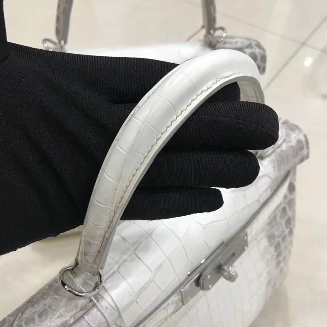 Hermès(爱马仕)Kelly Himalaya 喜马拉雅 银扣 每一只都独一无二 现货 28cm 2019年3月1日 0 【鳄鱼世家】www.Eyubao.com Kelly 28 Kelly 凯莉包 品牌:Hermès(爱马仕);类别:Kelly 凯莉包;颜色: 喜马拉雅;材质:澳洲湾鳄;等级:顶级;附件:全套包装礼盒;尺寸:28cm;功能:手提单肩包