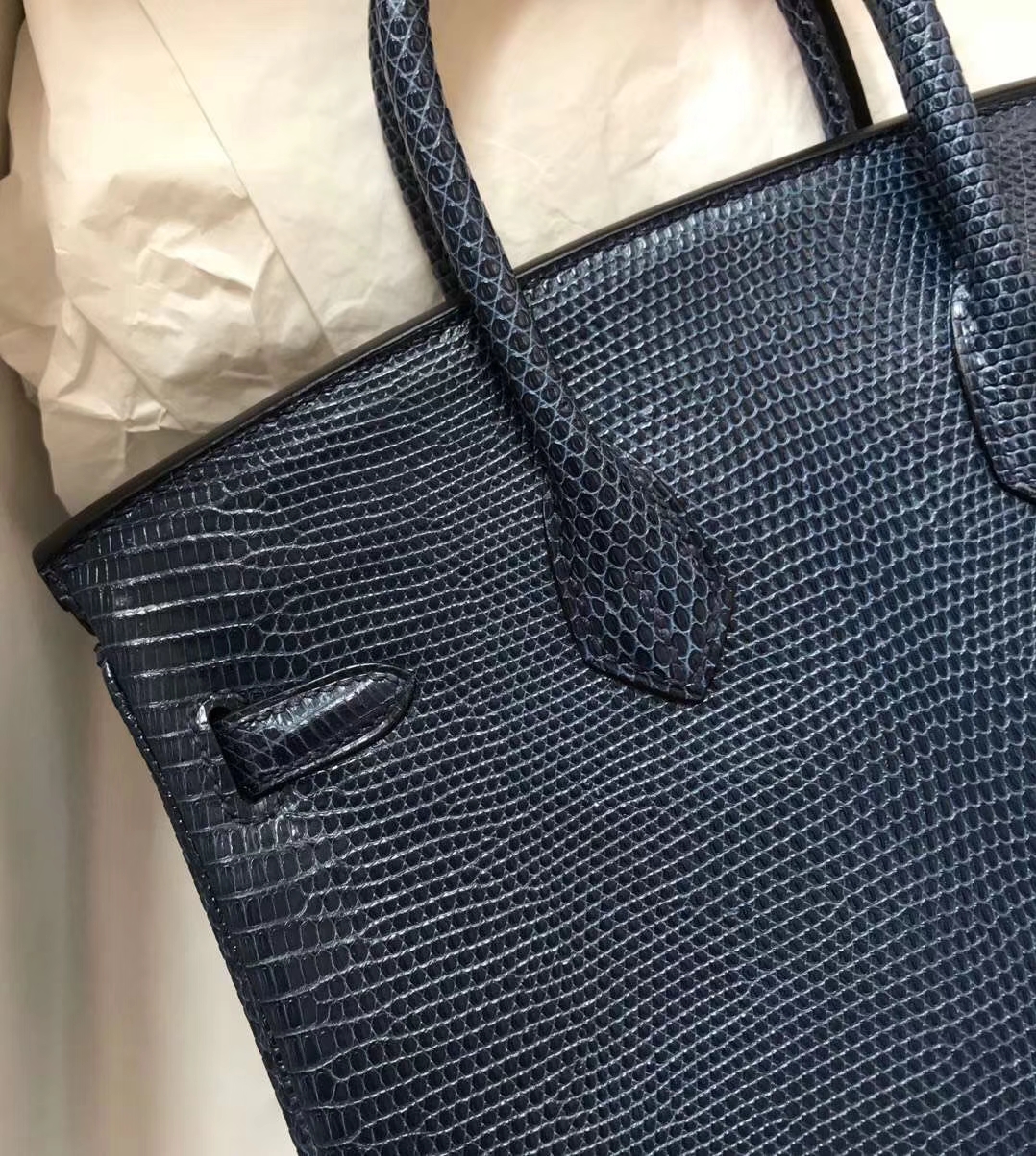 Hermès(爱马仕)Birkin lizard进口蜥蜴皮 ck73宝石蓝 顶级工艺 蜡线全手工 金扣 25cm 2019年3月3日 0 【鳄鱼世家】www.Eyubao.com Birkin 25 Birkin 铂金包 品牌:Hermès(爱马仕);类别:Birkin 铂金包;颜色: 宝石蓝;材质:亮面尼罗鳄 ;等级:顶级;附件:全套包装礼盒;尺寸:25cm;功能:手提单肩包