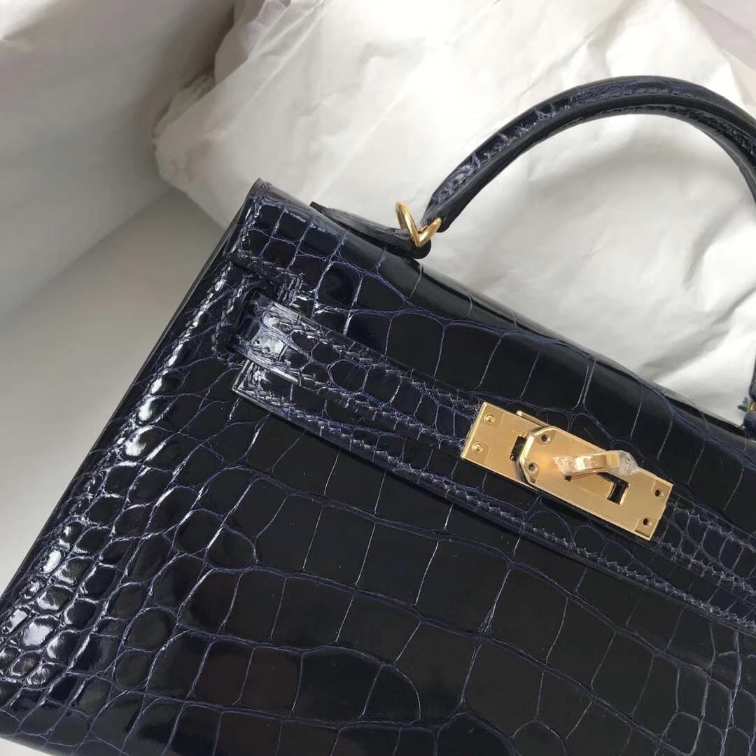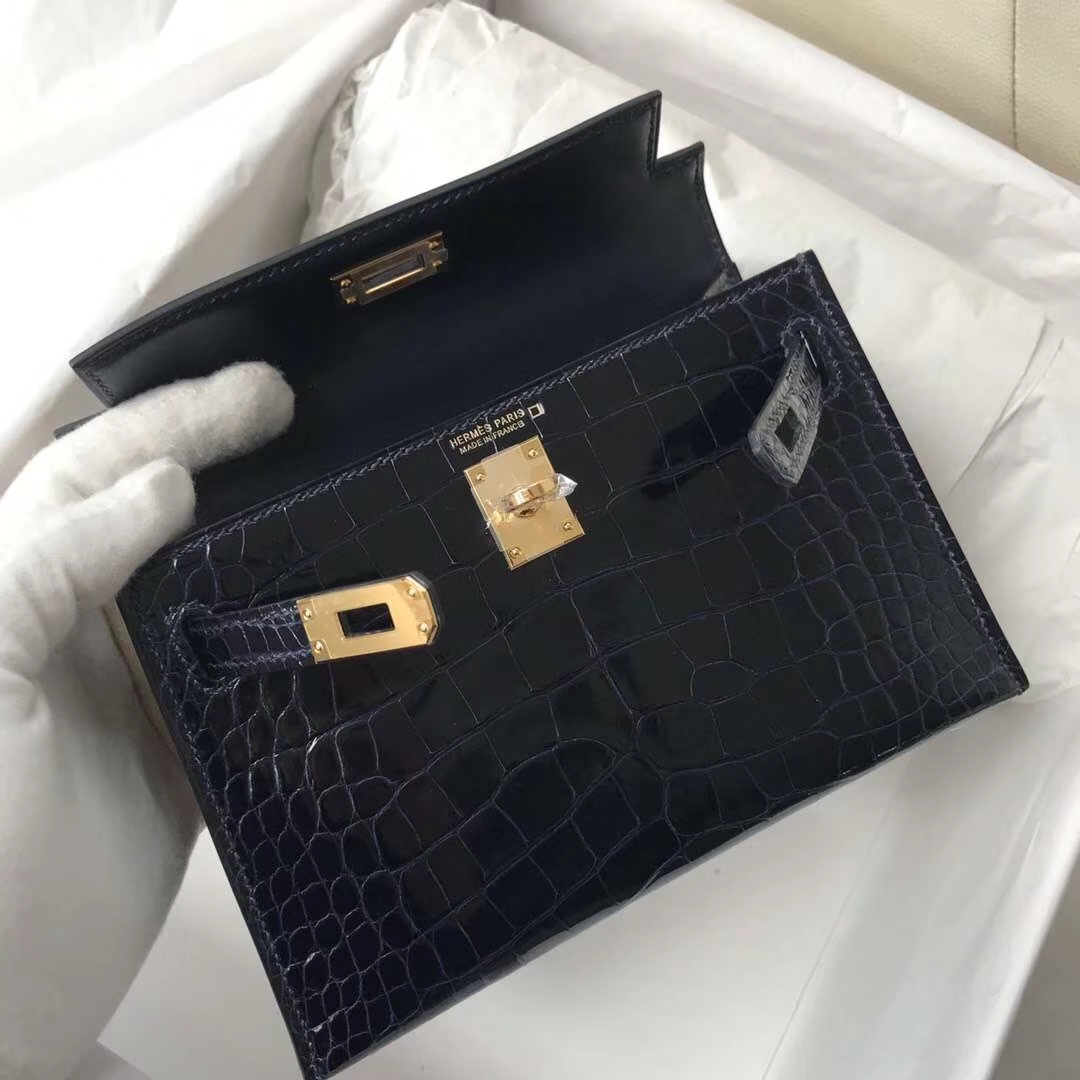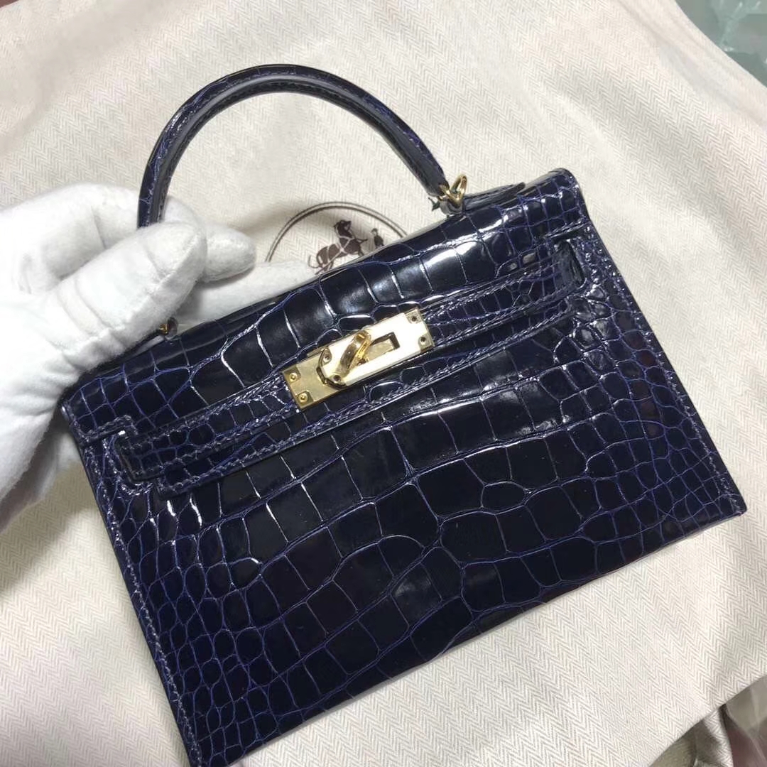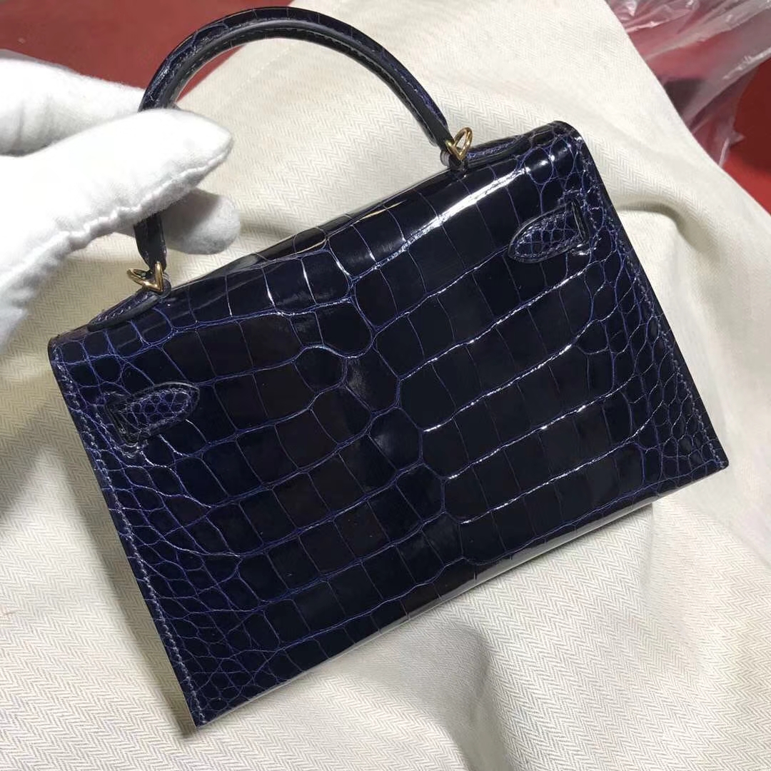 Hermès(爱马仕)Minikelly ll Alligator shiny 亮面鳄鱼 7K 宝石蓝 Blue saphir 金扣 2019年3月3日 0 【鳄鱼世家】www.Eyubao.com Mini Kelly 2 Mini Kelly 迷你凯莉 品牌:Hermès(爱马仕);类别:Mini Kelly迷你凯莉包;颜色: 宝石蓝;材质:亮面框框鳄鱼;等级:顶级;附件:全套包装礼盒;尺寸:18cm;功能:手提单肩包