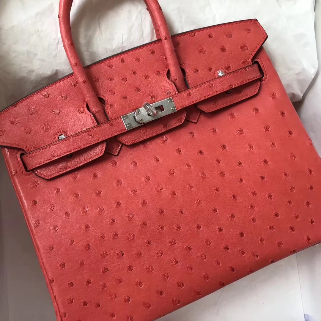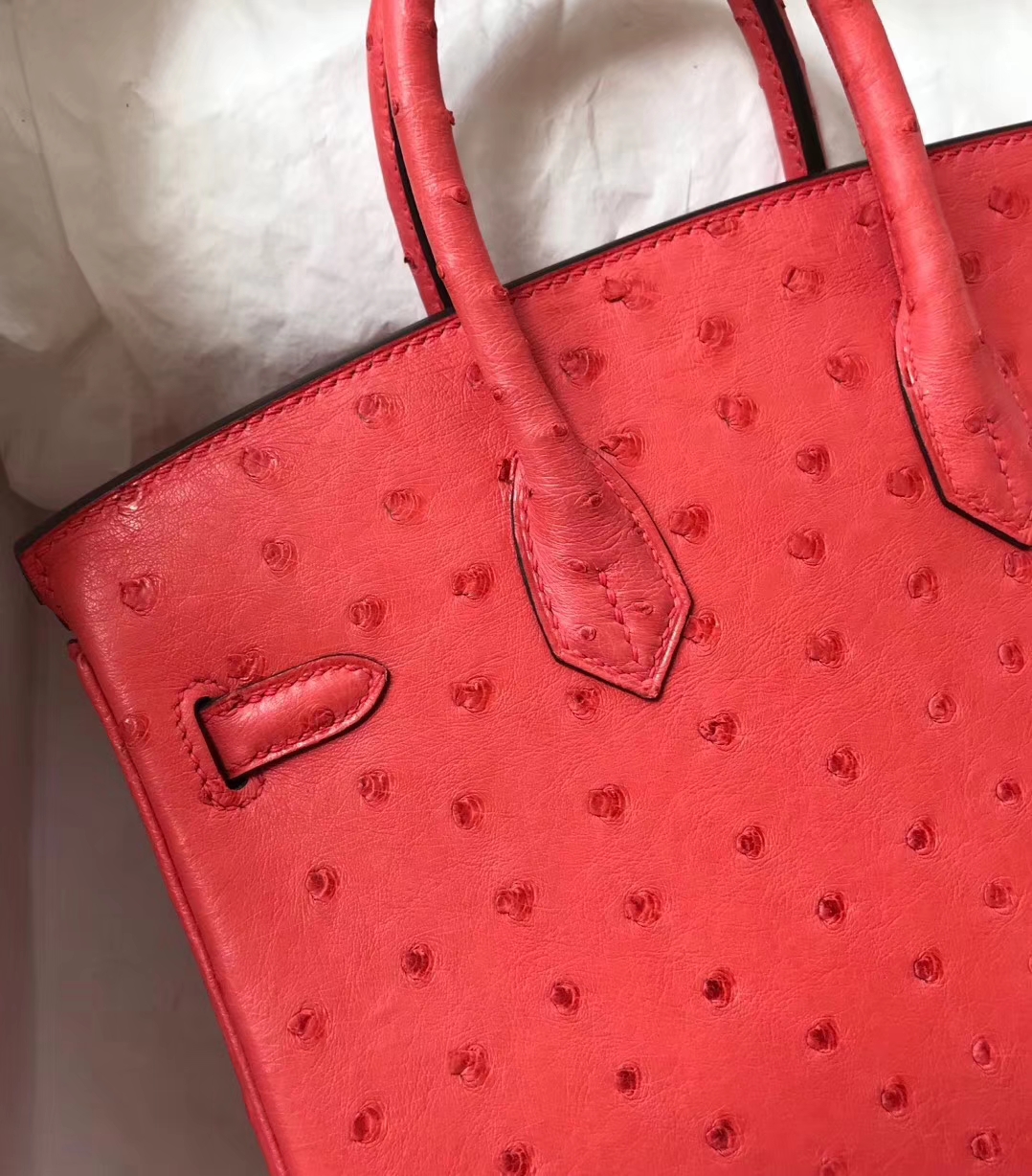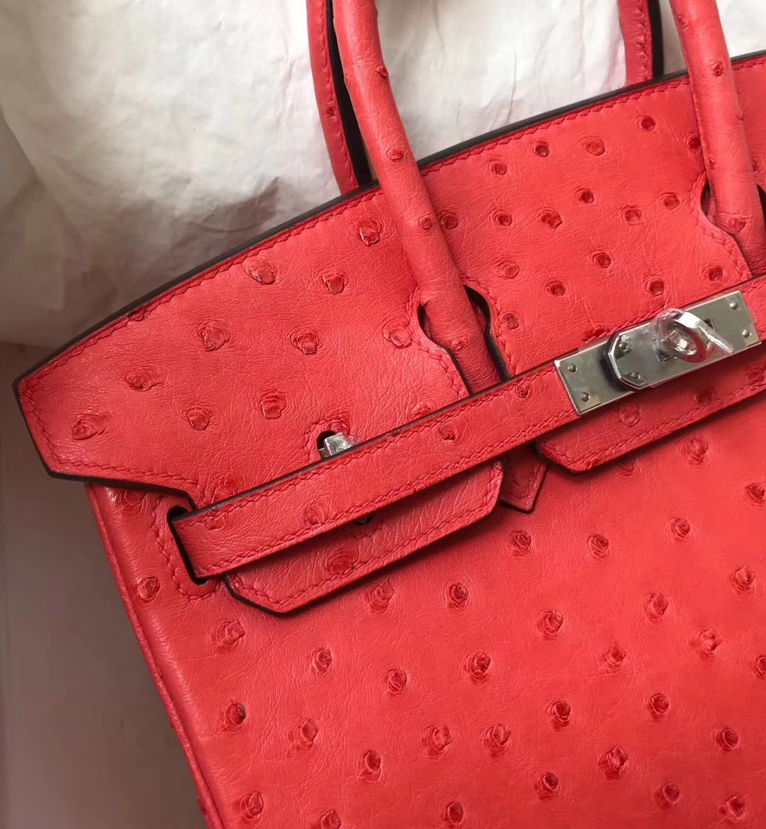 Hermès(爱马仕)Birkin ostrich kk鸵鸟 A5杜鹃红 顶级工艺 蜡线全手工 银扣 25cm 2019年3月4日 0 【鳄鱼世家】www.Eyubao.com Birkin 25 Birkin 铂金包 品牌:Hermès(爱马仕);类别:Birkin 铂金包;颜色: 杜鹃红;材质:鸵鸟纹;等级:顶级;附件:全套包装礼盒;尺寸:25cm;功能:手提单肩包