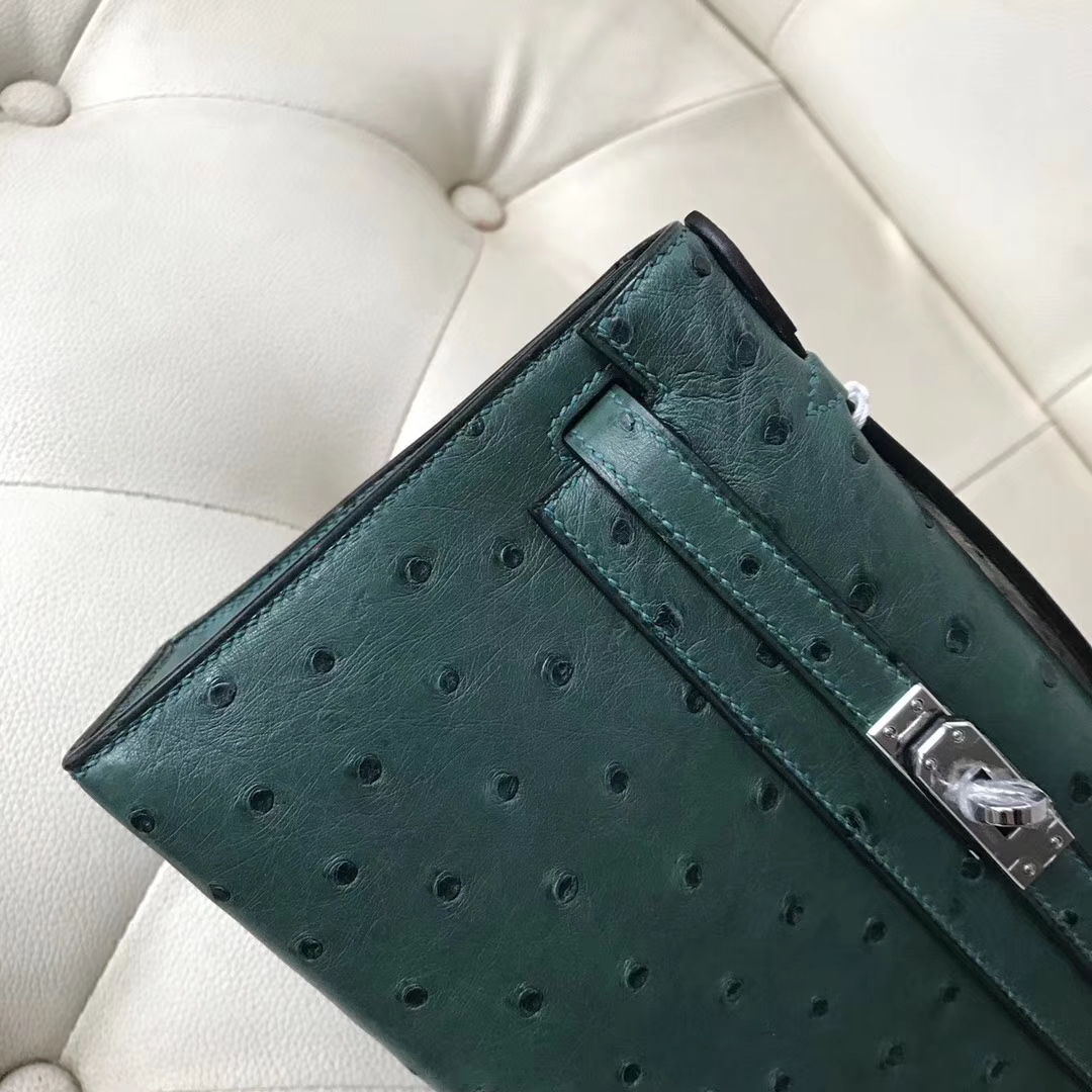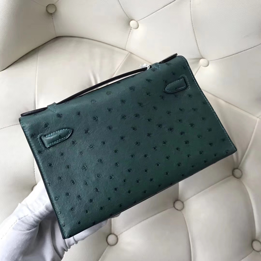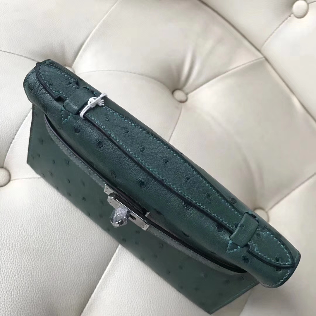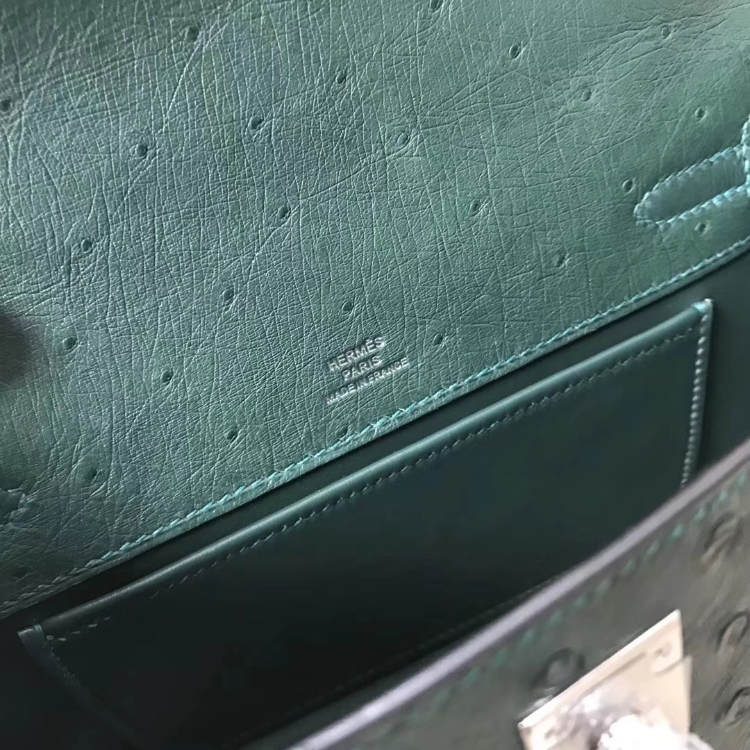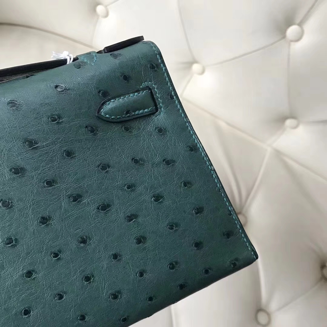 Hermès(爱马仕)Mini Kelly ostrich kk鸵鸟 顶级鸵鸟皮 Z6孔雀绿 蜡线全手工 银扣 22cm 2019年3月4日 0 【鳄鱼世家】www.Eyubao.com Mini Kelly 1 Mini Kelly 迷你凯莉 品牌:Hermès(爱马仕);类别:Mini Kelly迷你凯莉包;颜色: 孔雀绿;材质:鸵鸟纹;等级:顶级;附件:全套包装礼盒;尺寸:22cm;功能:手提单肩包