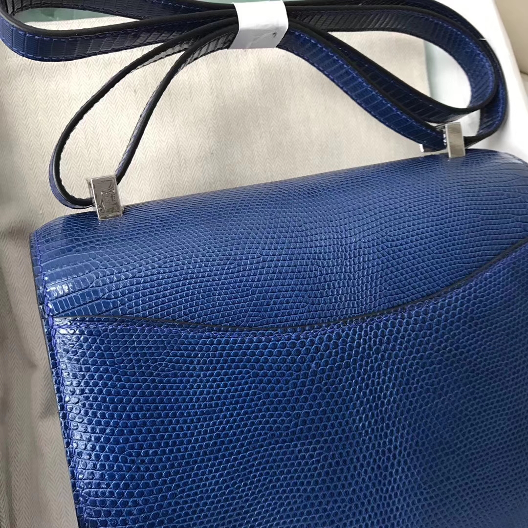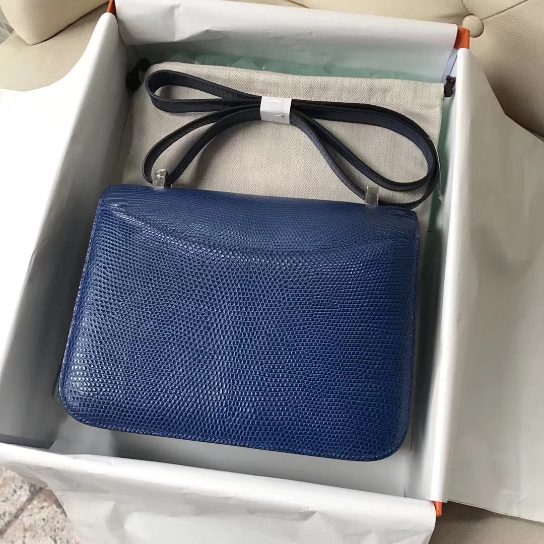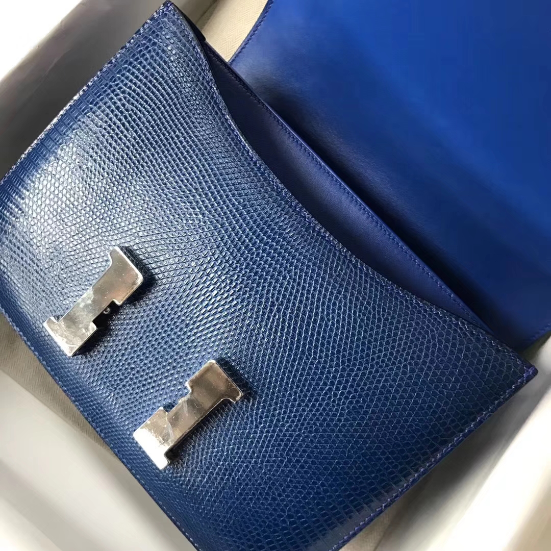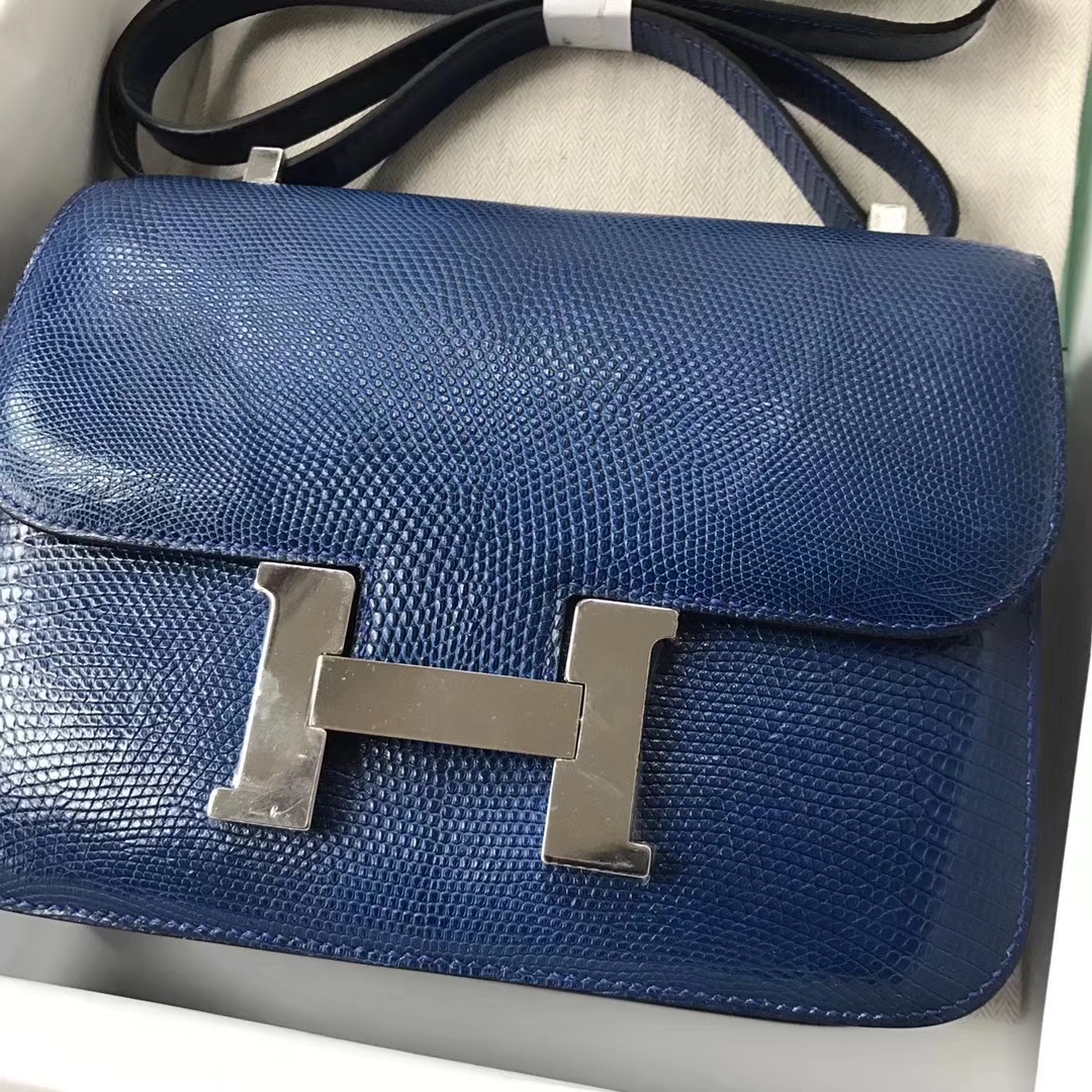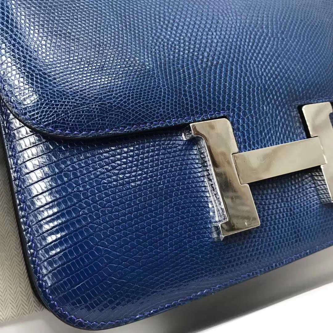 Hermès(爱马仕)Constance lizard 进口蜥蜴皮 7Q希腊蓝 蜡线全手工 银扣 23cm 2019年3月4日 0 【鳄鱼世家】www.Eyubao.com Constance 24 Constance 空姐包 品牌:Hermès(爱马仕);类别:Constance 空姐包;颜色: 希腊蓝;材质:进口蜥蜴皮;等级:顶级;附件:全套包装礼盒;尺寸:23cm;功能:单肩背包