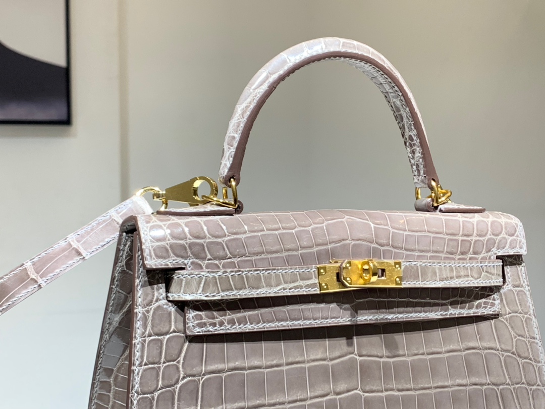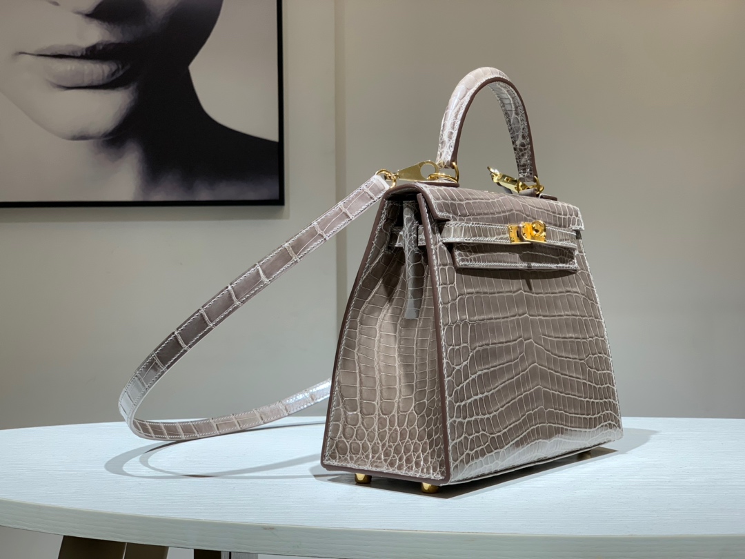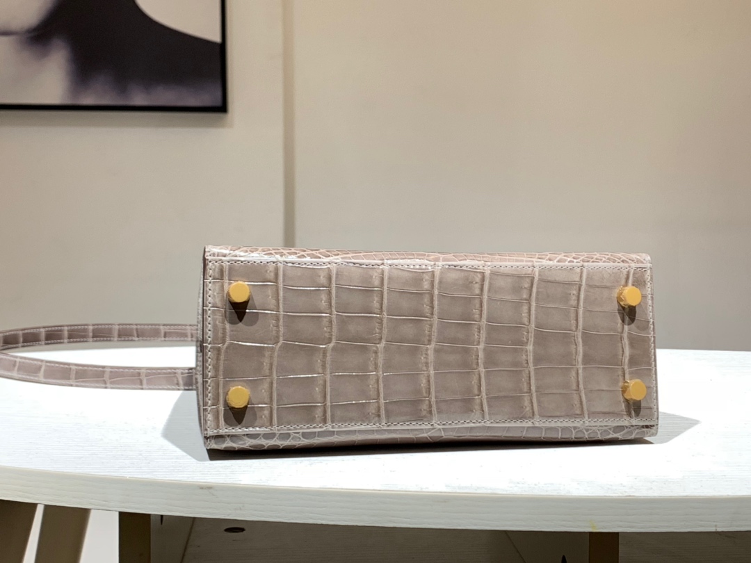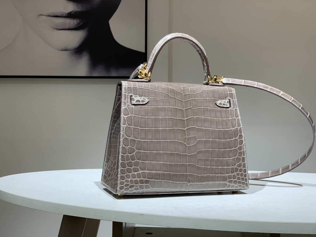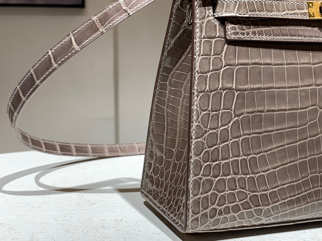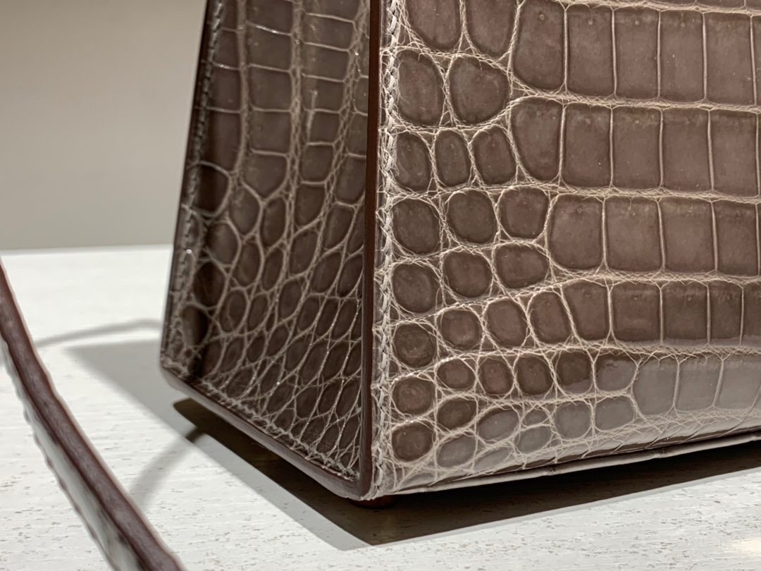 Hermès(爱马仕)Kelly 亮光鳄鱼皮 大象灰 现货 金扣 25cm 2019年3月15日 0 【鳄鱼世家】www.Eyubao.com Kelly 25 Kelly 凯莉包 品牌:Hermès(爱马仕);类别:Kelly 凯莉包;颜色: 大象灰;材质:亮光鳄鱼皮;等级:顶级;附件:全套包装礼盒;尺寸:25cm;功能:手提单肩包