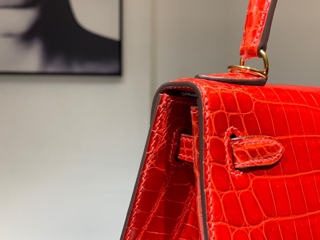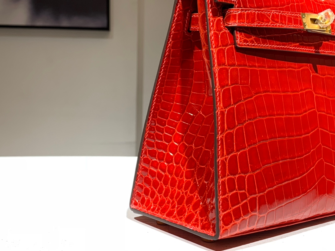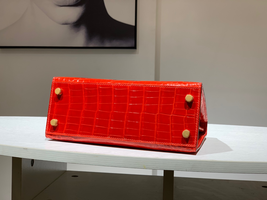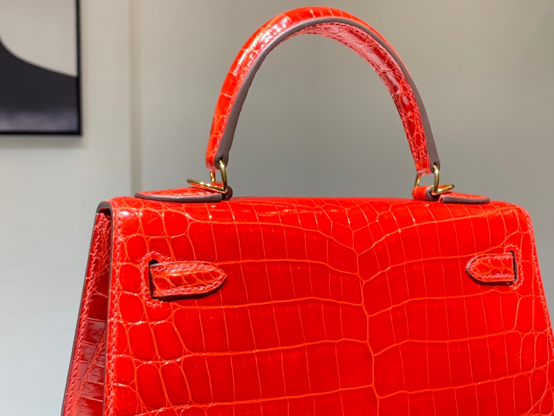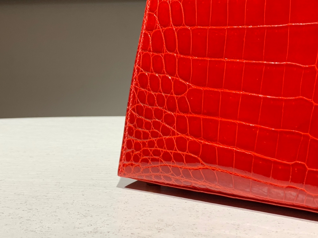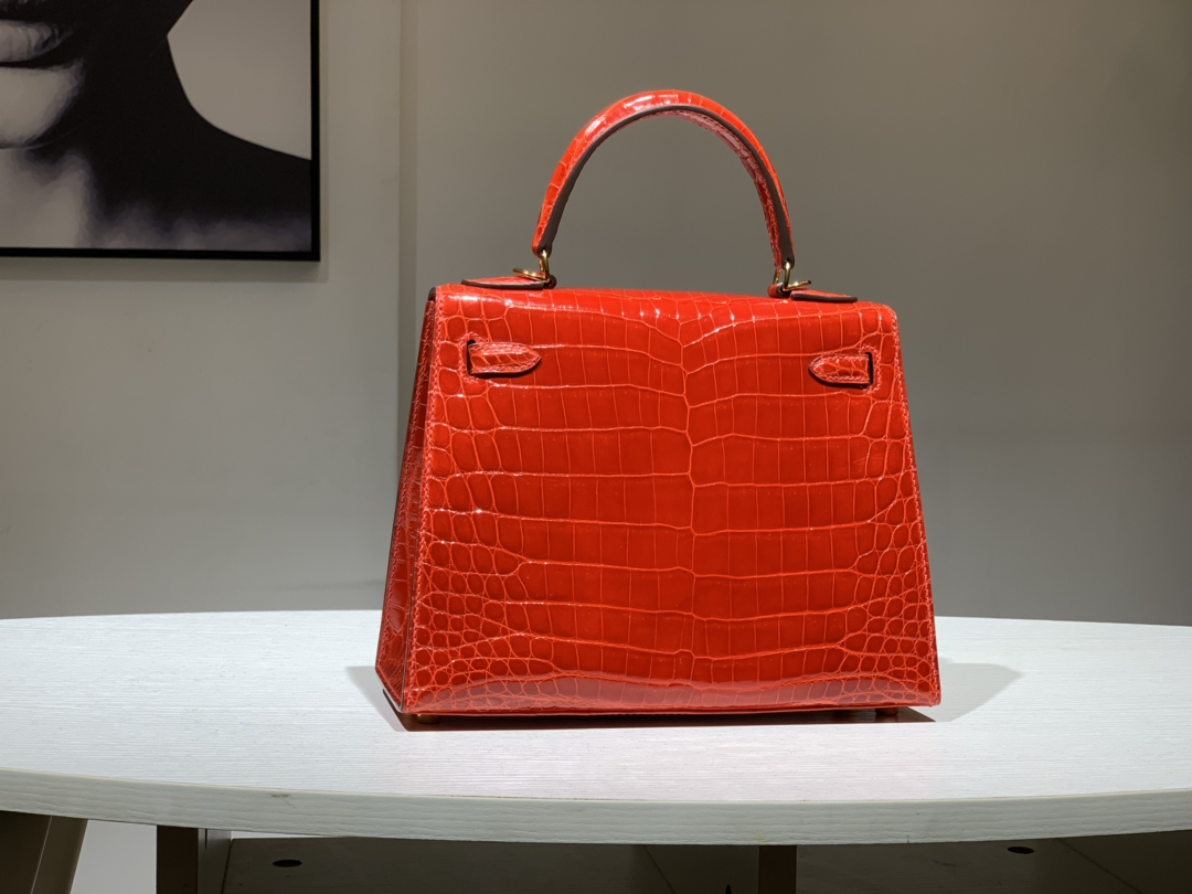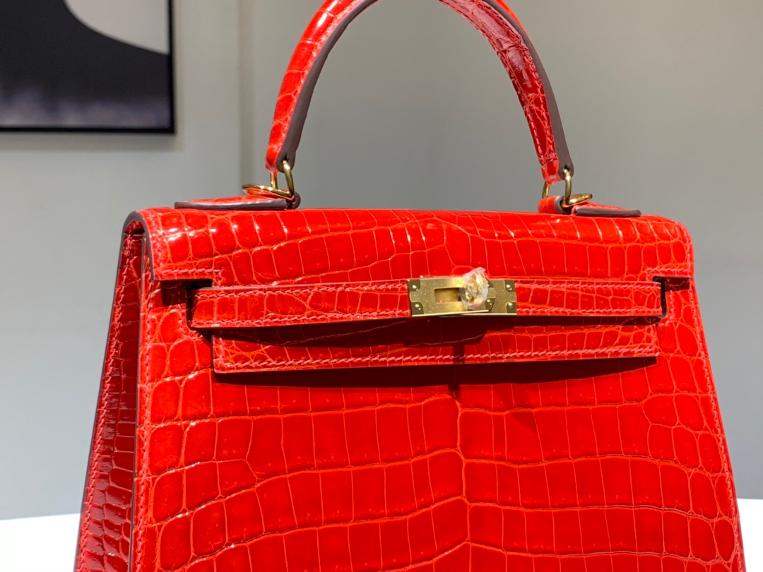 品牌:Hermès(爱马仕);类别:Kelly 凯莉包;颜色: 法拉利红;材质:亮光鳄鱼皮;等级:顶级;附件:全套包装礼盒;尺寸:25cm;功能:手提单肩包