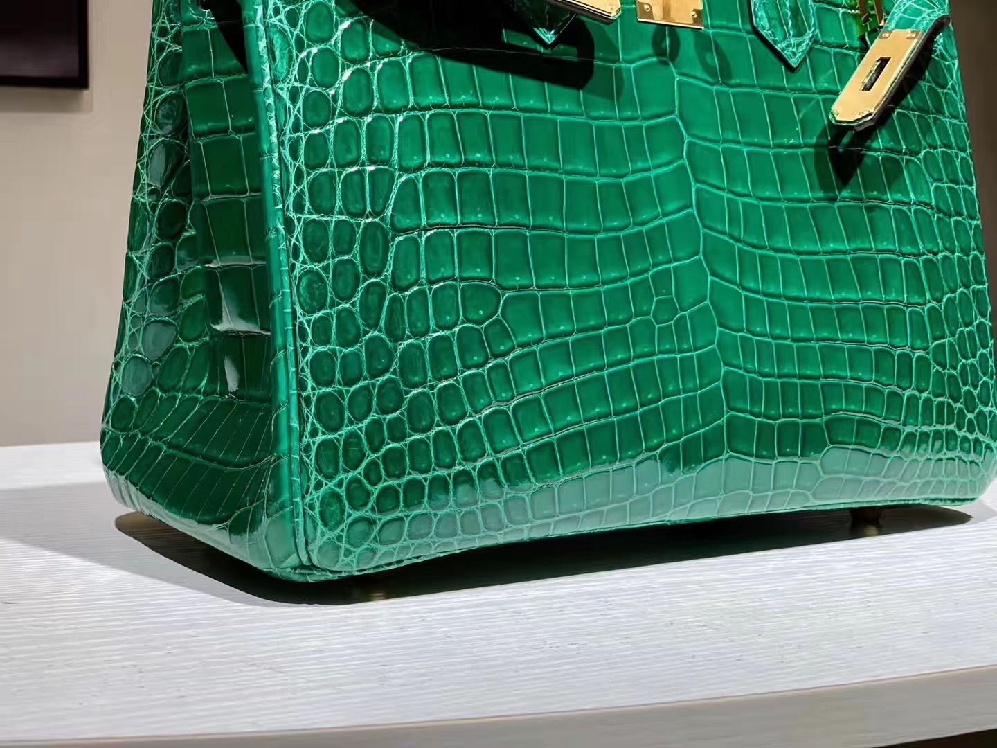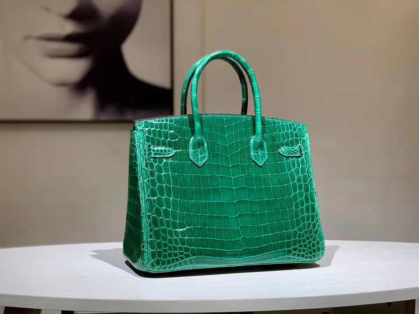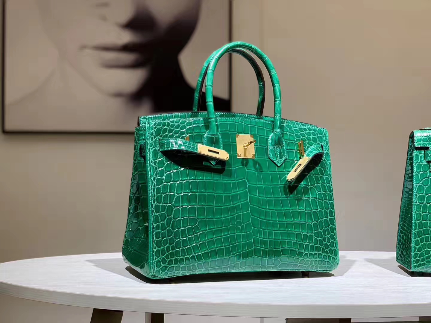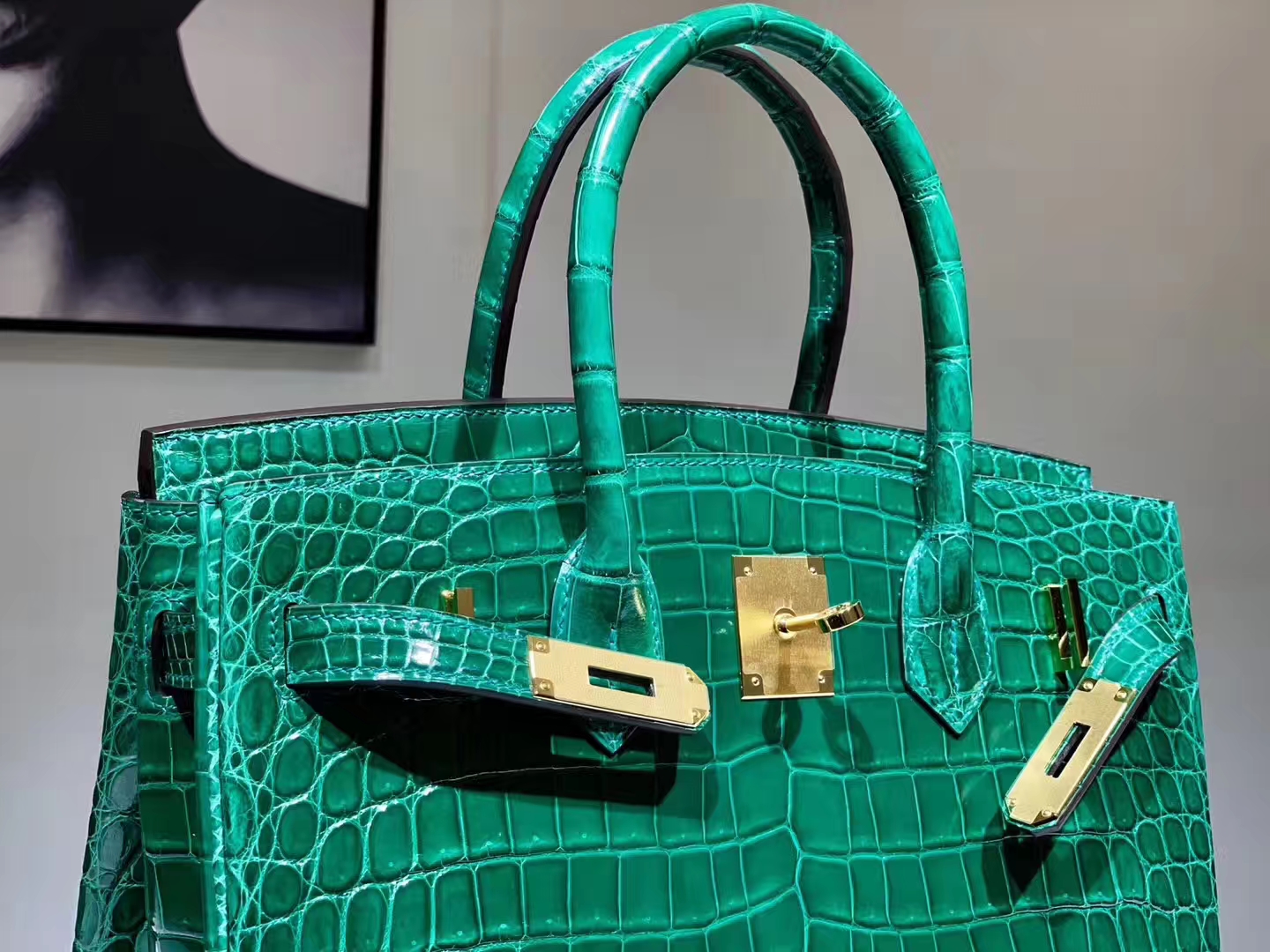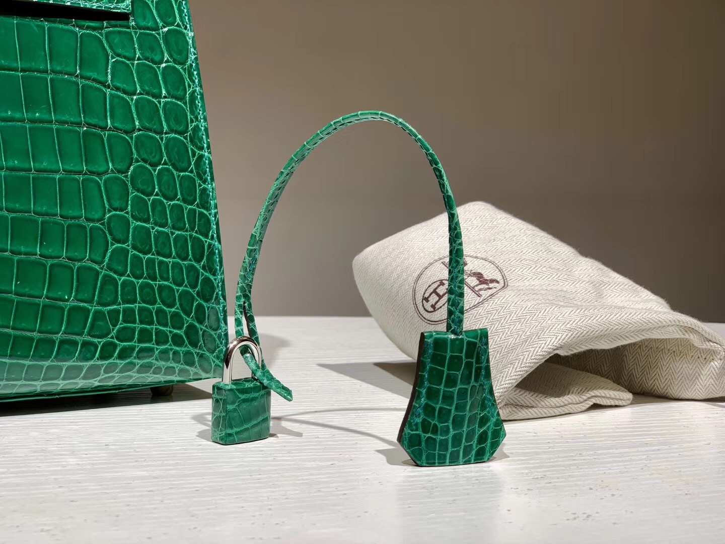Hermès(爱马仕)Birkin 铂金包 鳄鱼皮 翡翠绿 25cm 金扣 现货 2019年3月16日 0 【鳄鱼世家】www.Eyubao.com Birkin 25 Birkin 铂金包 品牌:Hermès(爱马仕);类别:Birkin 铂金包;颜色:翡翠绿;材质:亮光鳄鱼皮;等级:顶级;附件:全套包装礼盒;尺寸:25cm;功能:手提单肩包