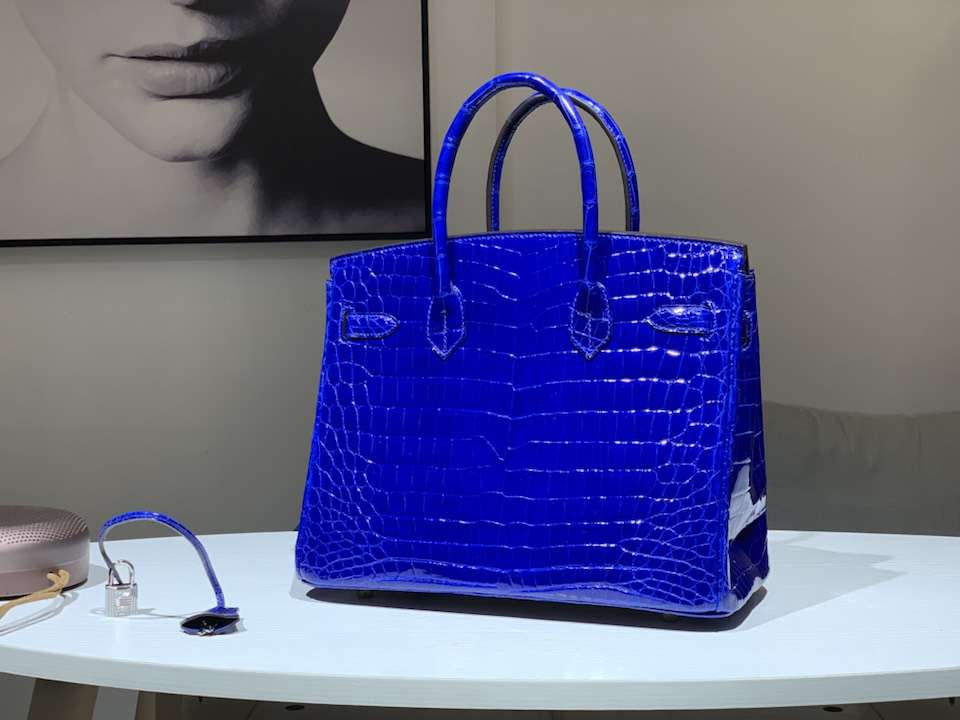 Hermès(爱马仕)Birkin 铂金包 鳄鱼皮 纯手工 电光蓝 银扣 全套专柜包装 2019年3月16日 0 【鳄鱼世家】www.Eyubao.com Birkin 25 Birkin 铂金包 品牌:Hermès(爱马仕);类别:Birkin 铂金包;颜色: 电光蓝;材质:亮光鳄鱼皮;等级:顶级;附件:全套包装礼盒;尺寸:25cm;功能:手提单肩包