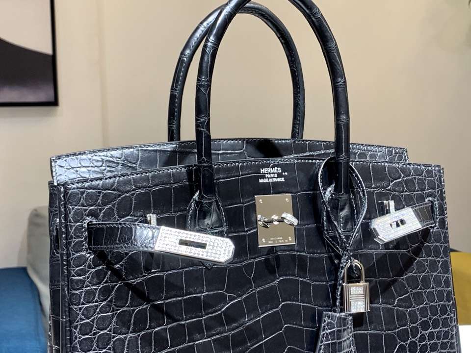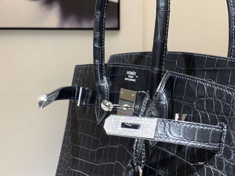 Hermès(爱马仕)Birkin 铂金包 鳄鱼皮 纯手工蜡线 黑色 银扣 全套专柜包装 2019年3月16日 0 【鳄鱼世家】www.Eyubao.com Kelly 25 Kelly 凯莉包 品牌:Hermès(爱马仕);类别:Birkin 铂金包;颜色: 黑色;材质:亮光鳄鱼皮;等级:顶级;附件:全套包装礼盒;尺寸:25cm;功能:手提单肩包