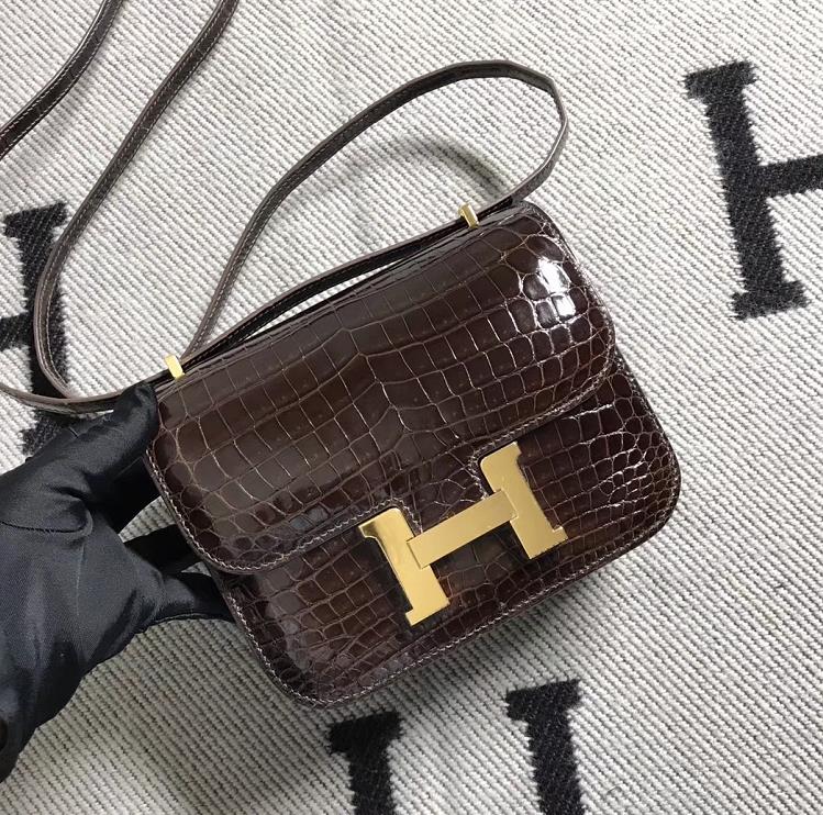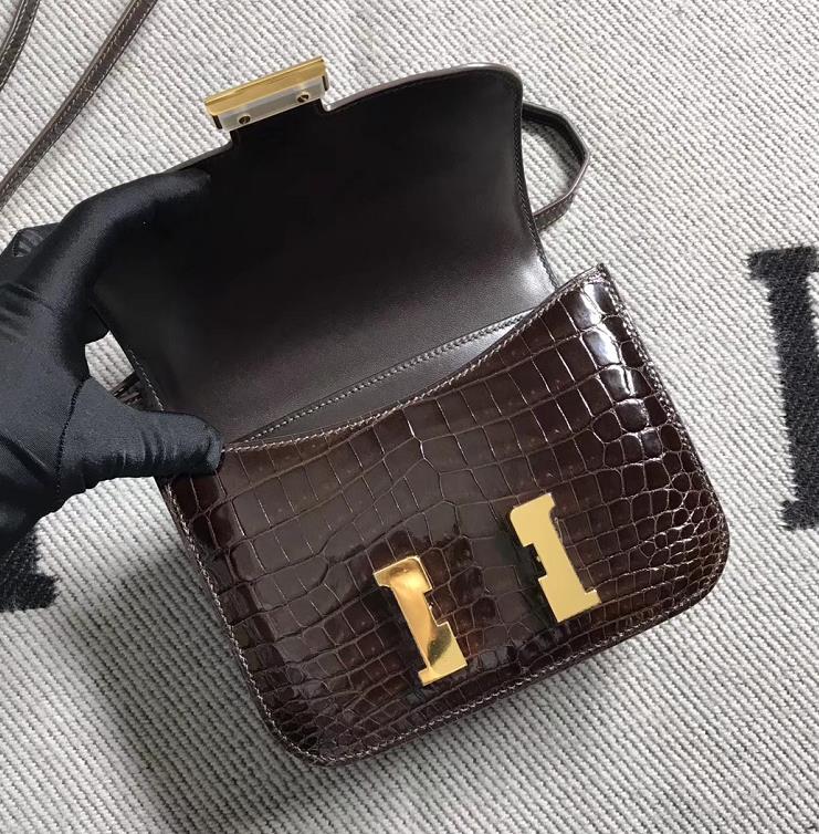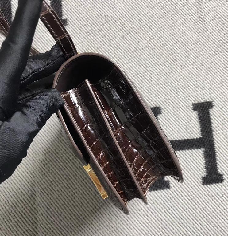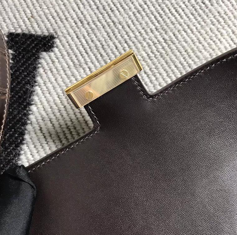 Hermes爱马仕 Constance 19 深啡色 原版皮 金扣 2018年7月30日 0 【鳄鱼世家】www.Eyubao.com Constance 19 Constance 空姐包 品牌:Hermès(爱马仕);类别:Constance空姐包;颜色:深啡色;材质:精选原版皮;等级:顶级;附件:全套包装礼盒;尺寸:19cm;功能:单肩斜挎包