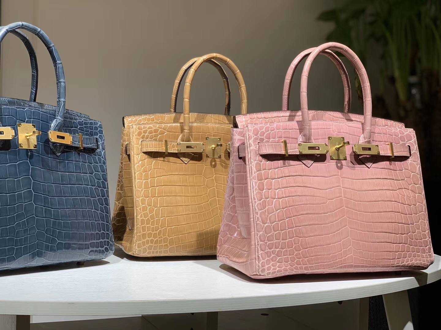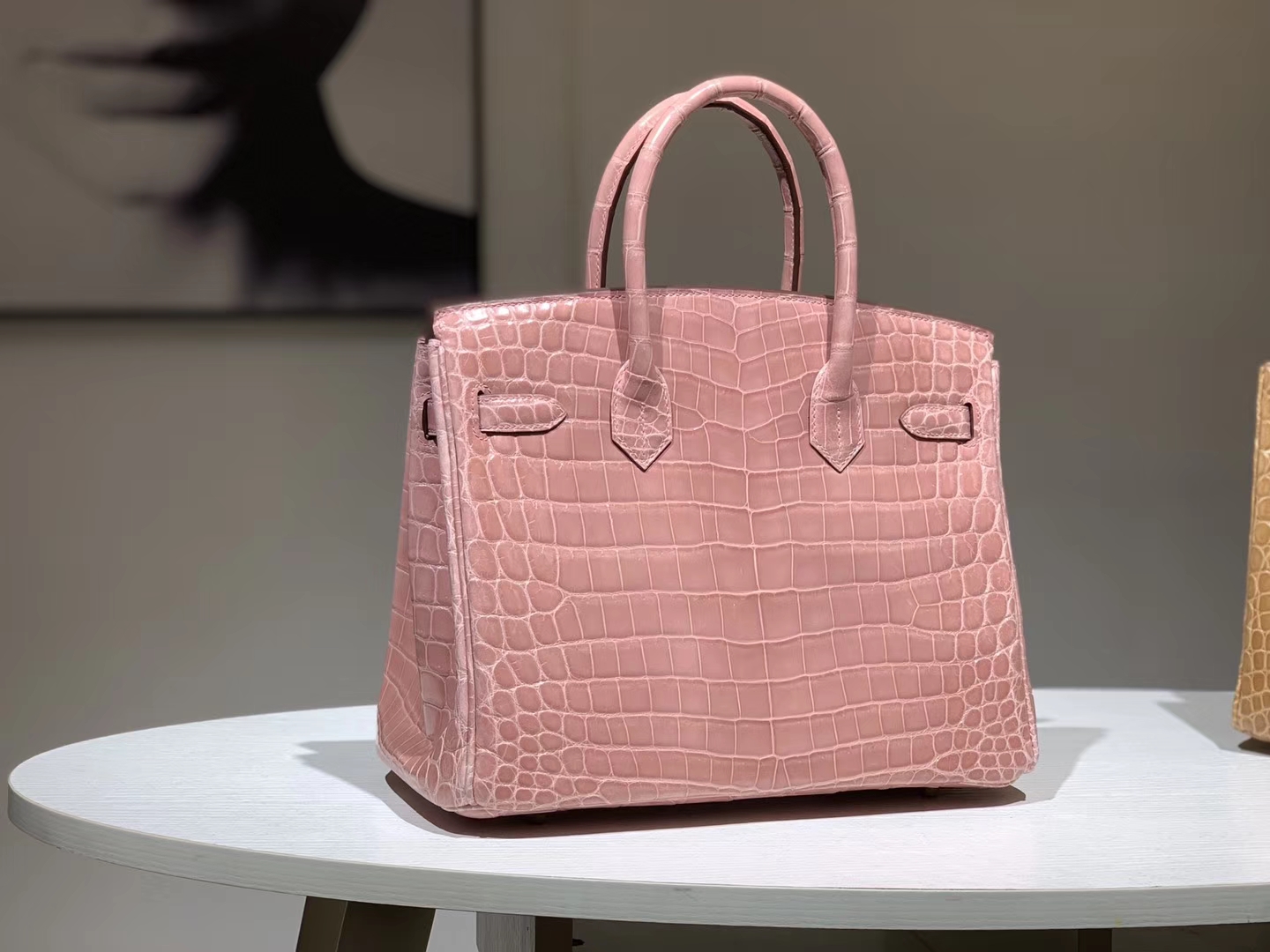 Hermès(爱马仕)Brikin铂金包 鳄鱼皮 玫瑰粉 30cm 2019年3月18日 0 【鳄鱼世家】www.Eyubao.com Birkin 30 Birkin 铂金包 品牌:Hermès(爱马仕);类别:Brikin 铂金包;颜色:玫瑰粉;材质:鳄鱼皮;等级:顶级;附件:全套包装礼盒;尺寸:30cm;功能:单肩背包