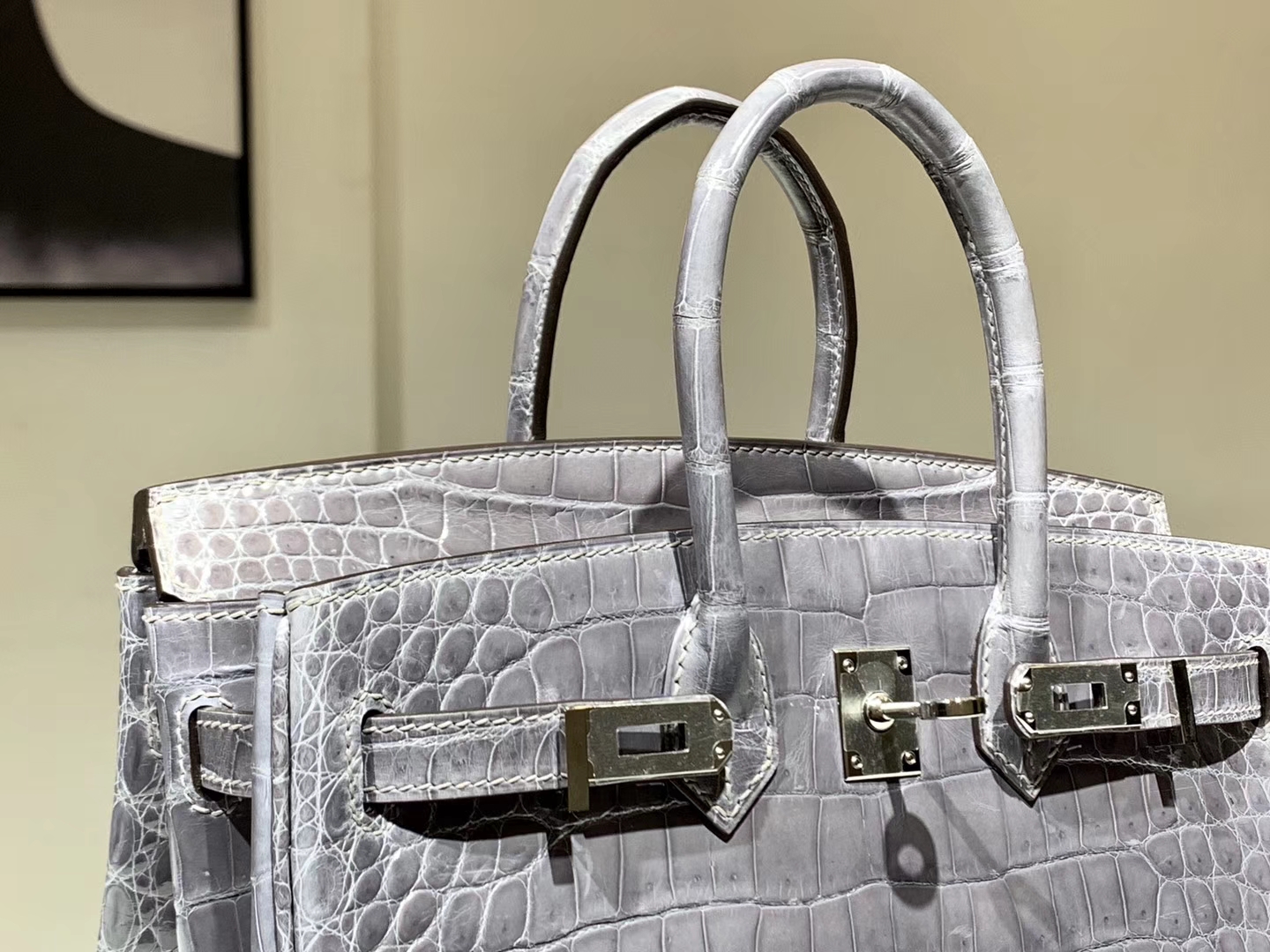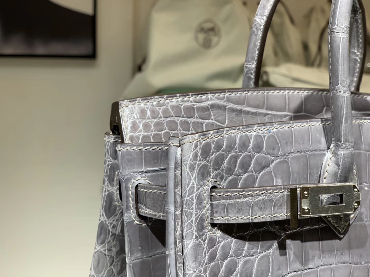 Hermès(爱马仕)Brikin铂金包 鳄鱼皮 沥青灰 现货 25cm 2019年3月18日 0 【鳄鱼世家】www.Eyubao.com Birkin 25 Birkin 铂金包 品牌:Hermès(爱马仕);类别:Brikin 铂金包;颜色:沥青灰;材质:鳄鱼皮;等级:顶级;附件:全套包装礼盒;尺寸:25cm;功能:单肩背包