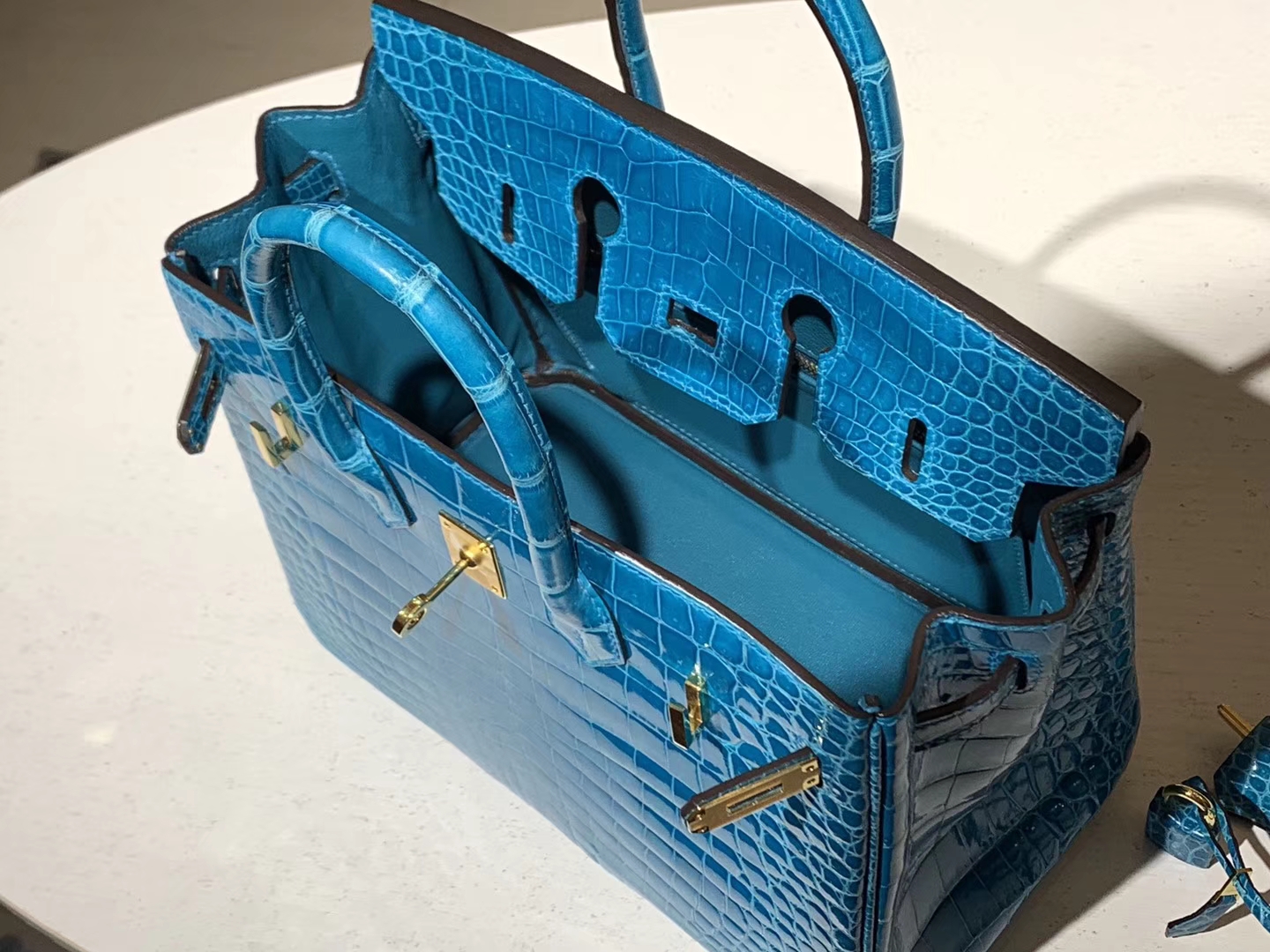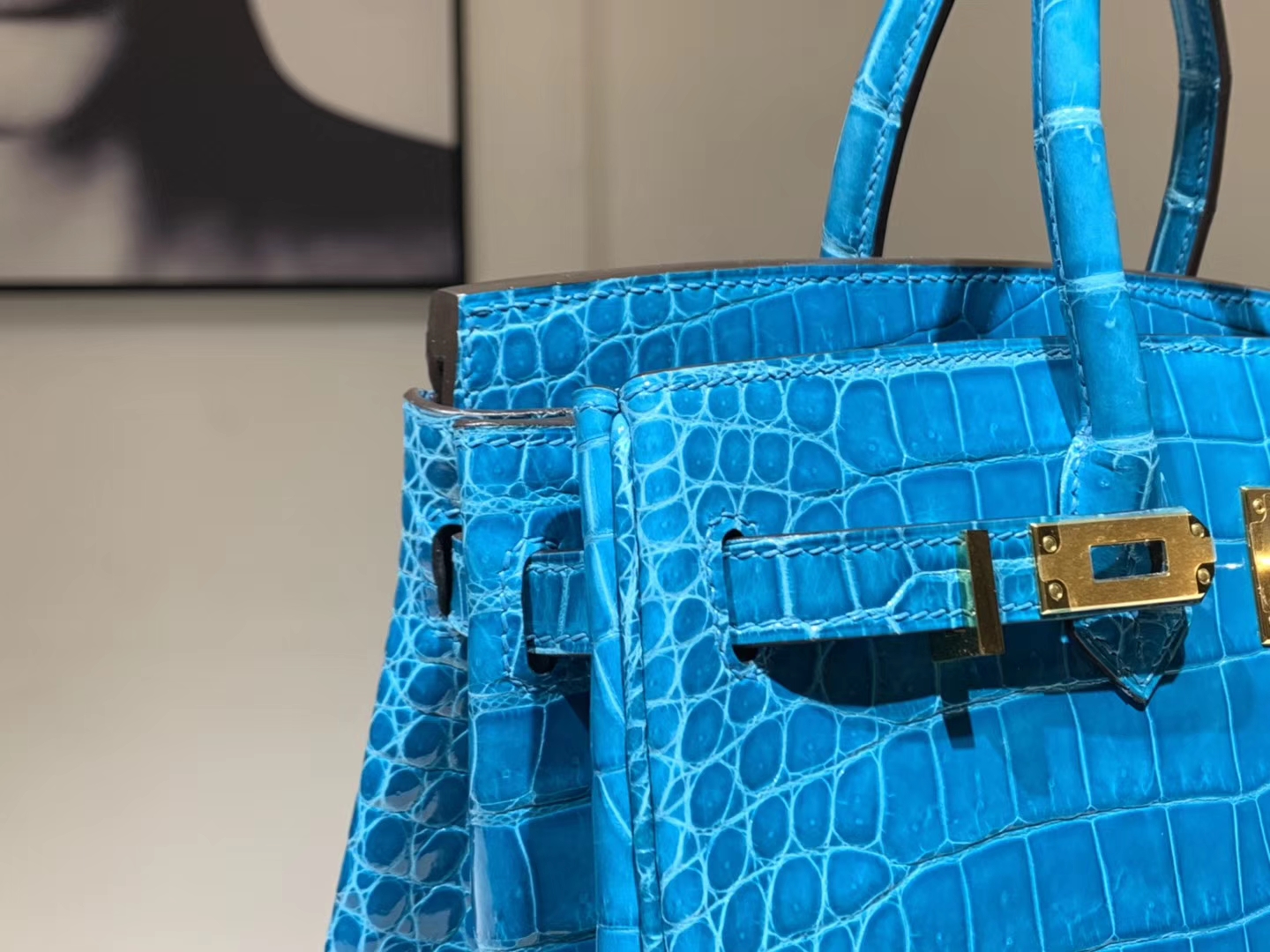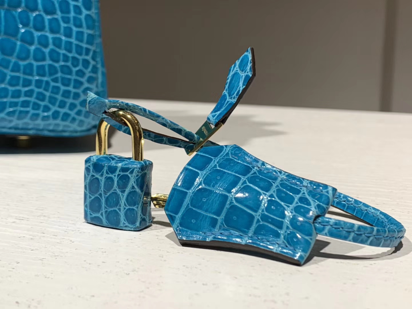 Hermès(爱马仕)Brikin铂金包 鳄鱼皮 湖水蓝 现货 25cm 2019年3月18日 0 【鳄鱼世家】www.Eyubao.com Birkin 25 Birkin 铂金包 品牌:Hermès(爱马仕);类别:Brikin 铂金包;颜色:湖水蓝;材质:鳄鱼皮;等级:顶级;附件:全套包装礼盒;尺寸:25cm;功能:单肩背包