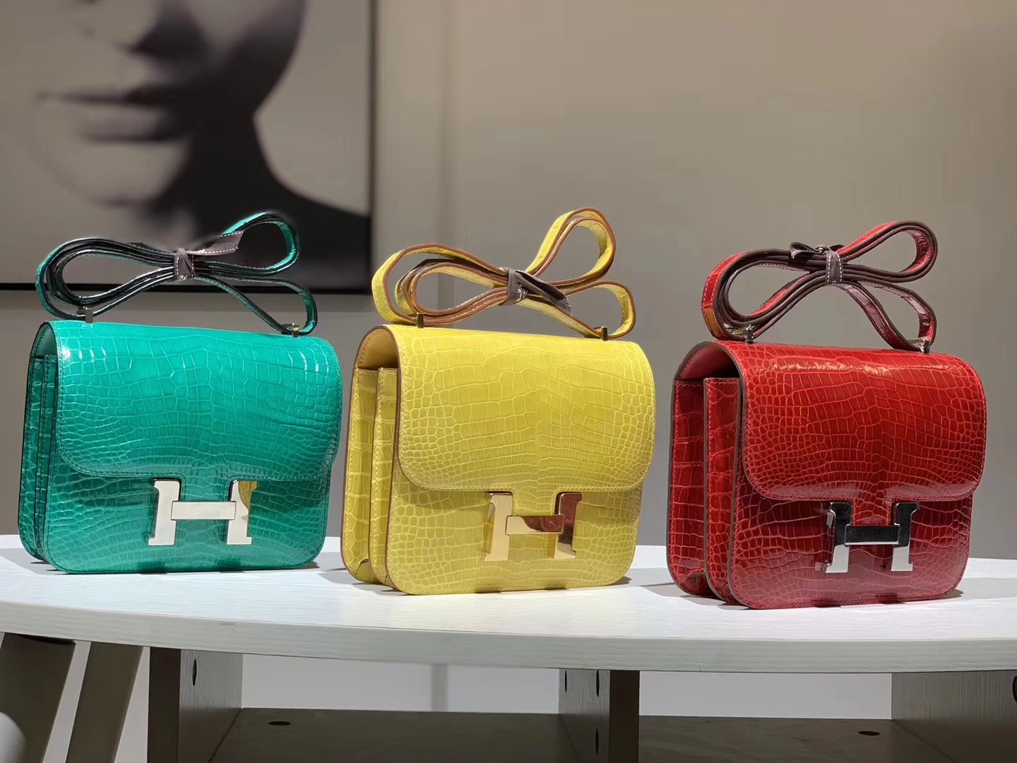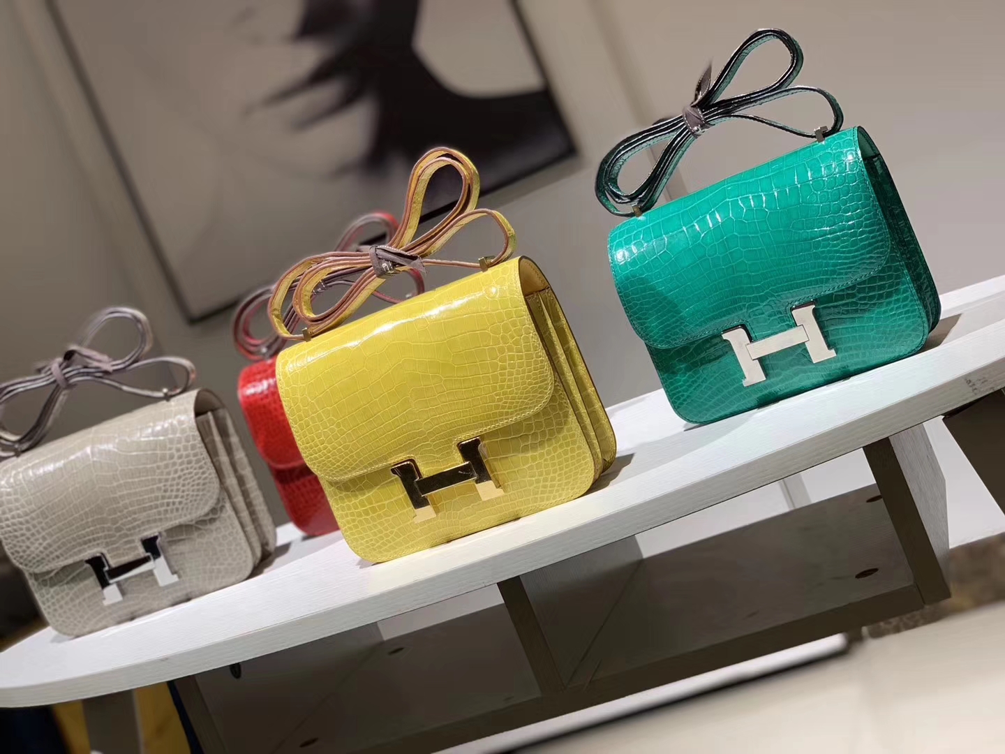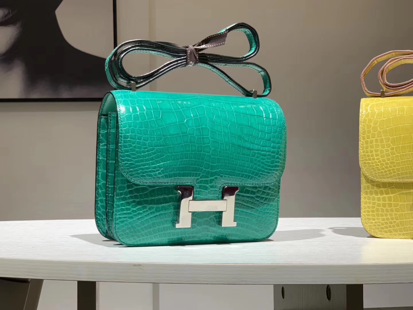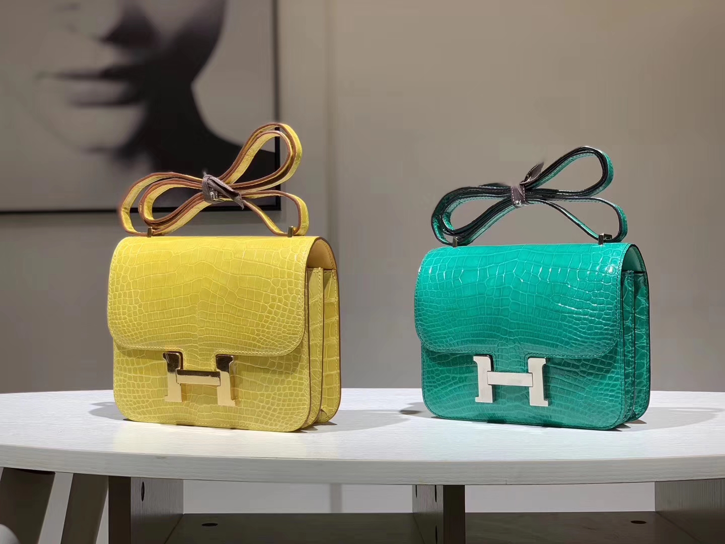 Hermès(爱马仕)Constance空姐包 鳄鱼皮 柠檬黄 19CM 现货 2019年3月18日 0 【鳄鱼世家】www.Eyubao.com Constance 19 Constance 空姐包 品牌:Hermès(爱马仕);类别:Constance 空姐包;颜色:柠檬黄;材质:亮面鳄鱼;等级:顶级;附件:全套包装礼盒;尺寸:19cm;功能:单肩背包