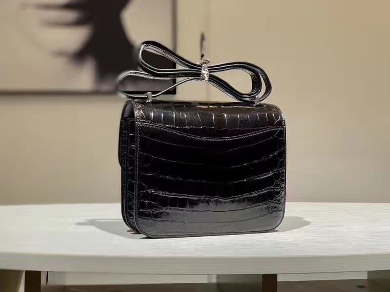 Hermès(爱马仕)Constance 19CM 鳄鱼皮 黑色 现货 2019年3月18日 0 【鳄鱼世家】www.Eyubao.com Constance 19 Constance 空姐包 品牌:Hermès(爱马仕);类别:Constance 空姐包;颜色:黑色;材质:鳄鱼皮;等级:顶级;附件:全套包装礼盒;尺寸:19cm;功能:单肩背包