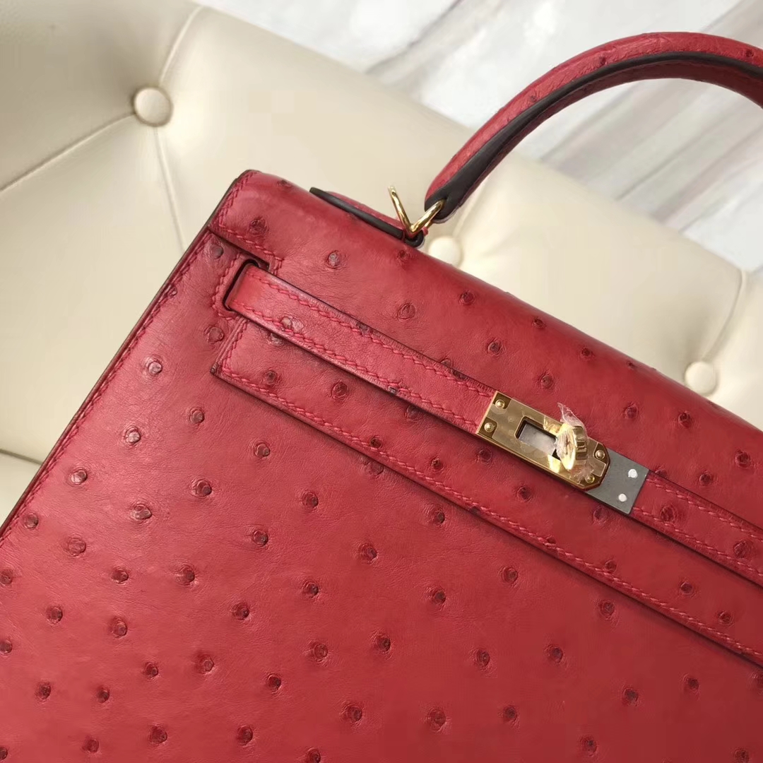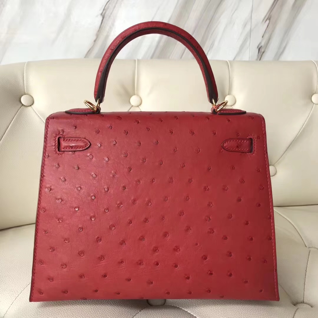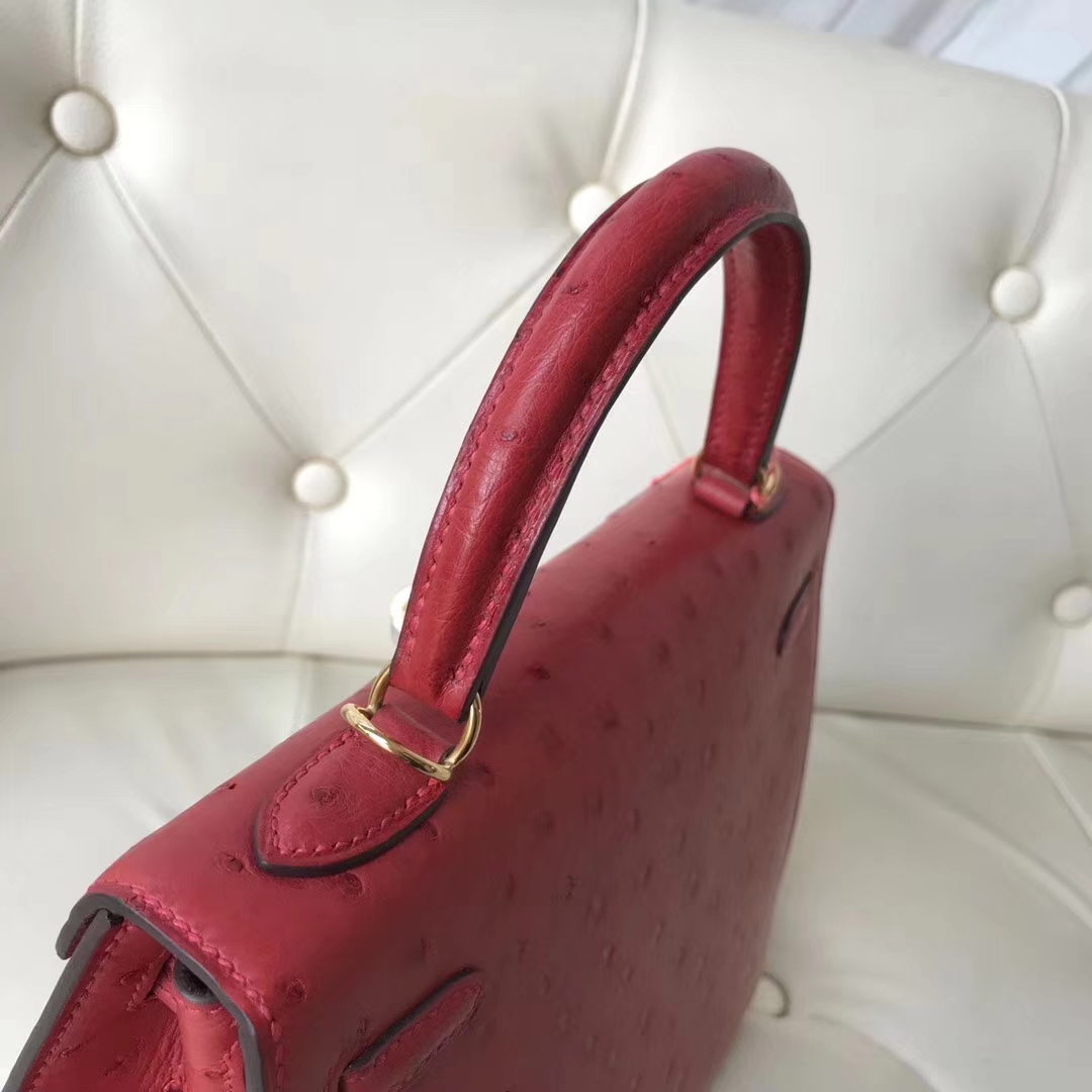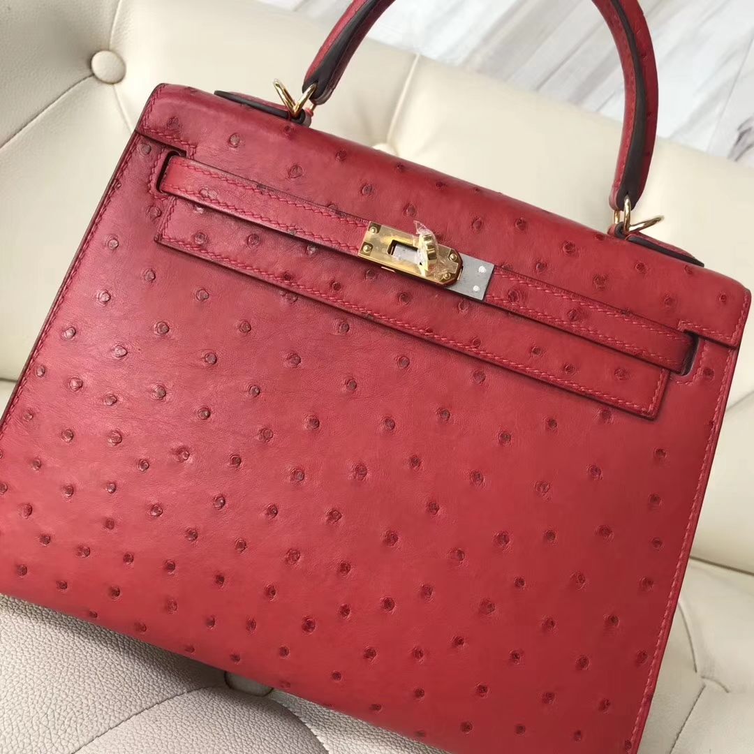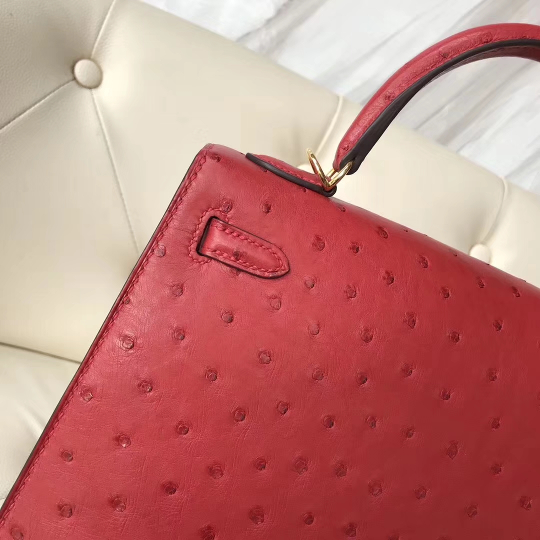 Hermès(爱马仕)Kelly凯莉包 ostrich kk鸵鸟 顶级鸵鸟皮 Q5国旗红 蜡线全手工 金扣 25cm 2019年3月22日 0 【鳄鱼世家】www.Eyubao.com Kelly 25 Kelly 凯莉包 品牌:Hermès(爱马仕);类别:Kelly 凯莉包;颜色:国旗红;材质:顶级鸵鸟皮;等级:顶级;附件:全套包装礼盒;尺寸:25cm;功能:手提单肩包