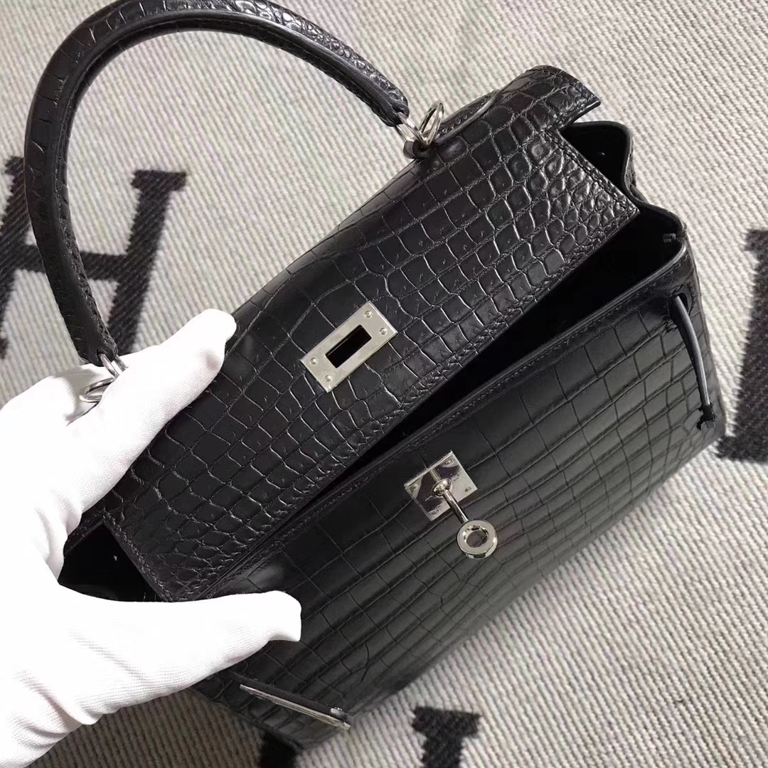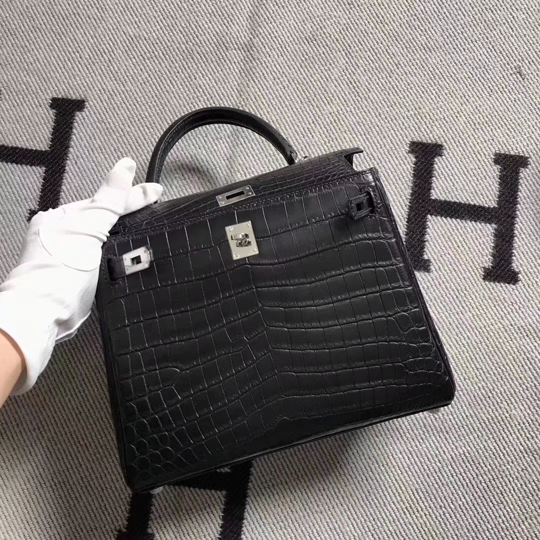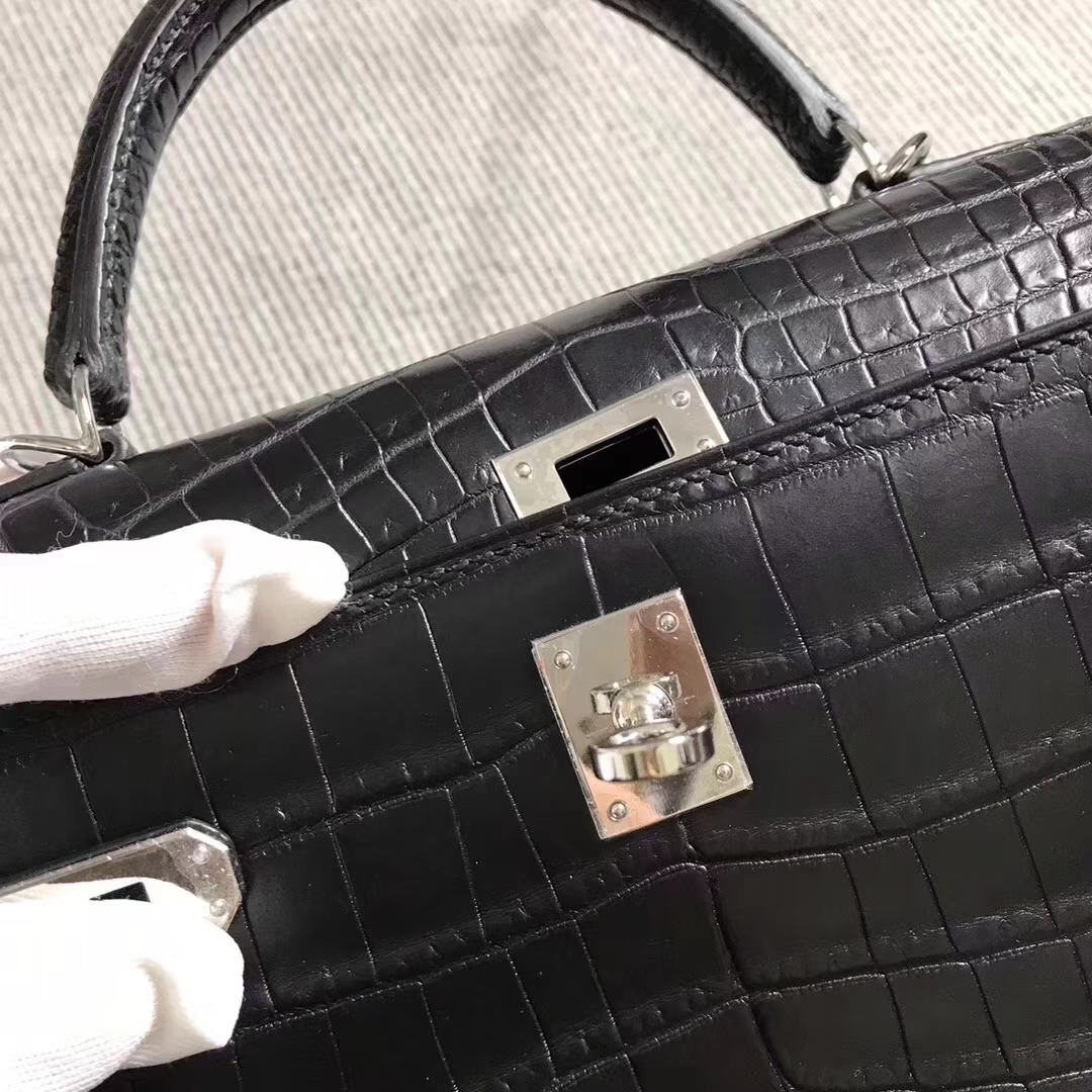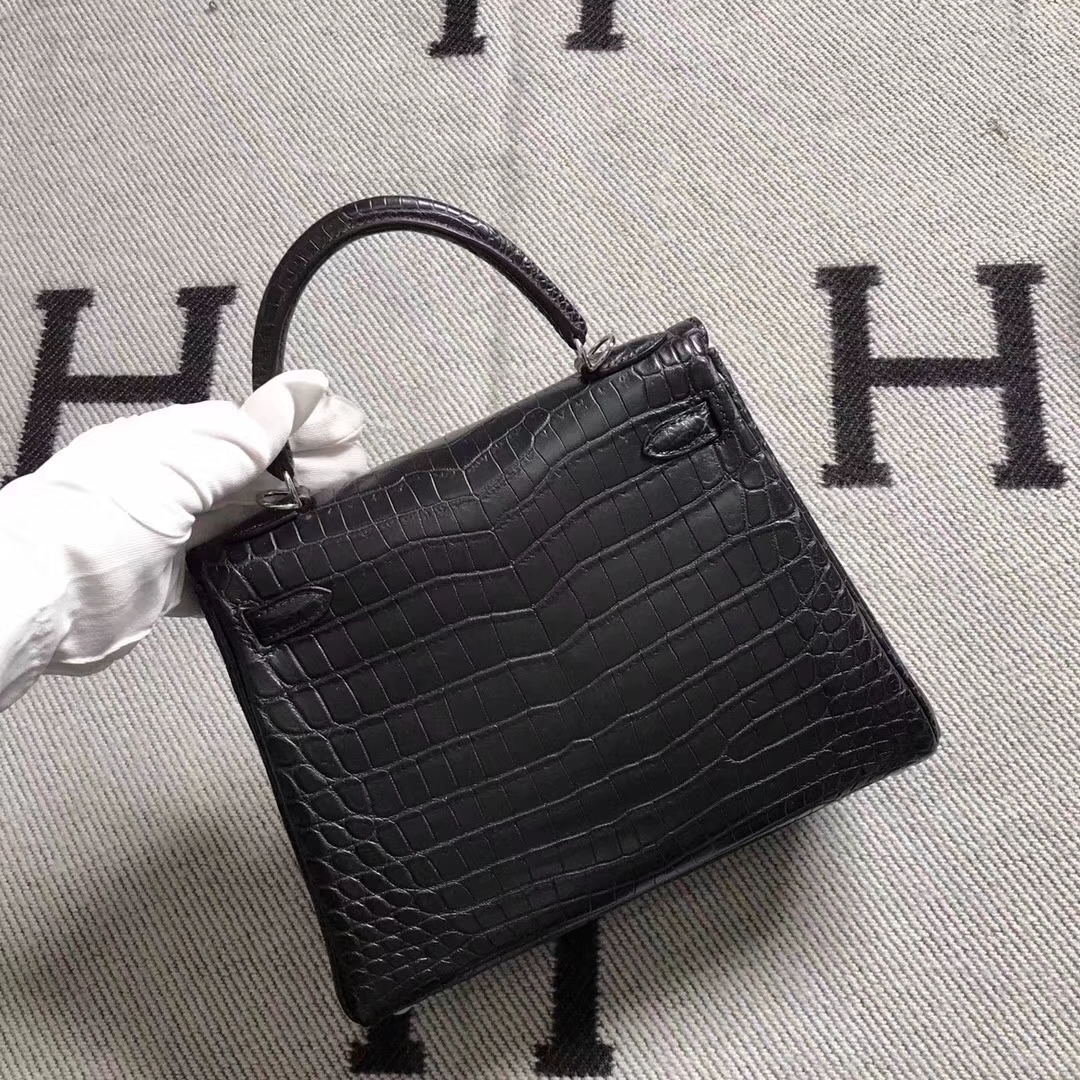 Hermès(爱马仕)Kelly凯莉包 黑色雾面鳄鱼 25cm 银扣 2019年3月22日 0 【鳄鱼世家】www.Eyubao.com Kelly 25 Kelly 凯莉包 品牌:Hermès(爱马仕);类别:Kelly 凯莉包;颜色:黑色;材质:雾面鳄鱼皮;等级:顶级;附件:全套包装礼盒;尺寸:25cm;功能:手提单肩包