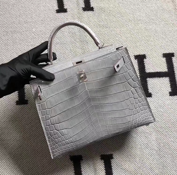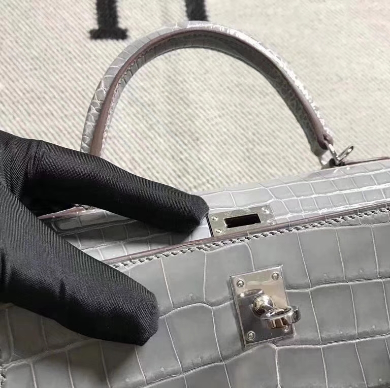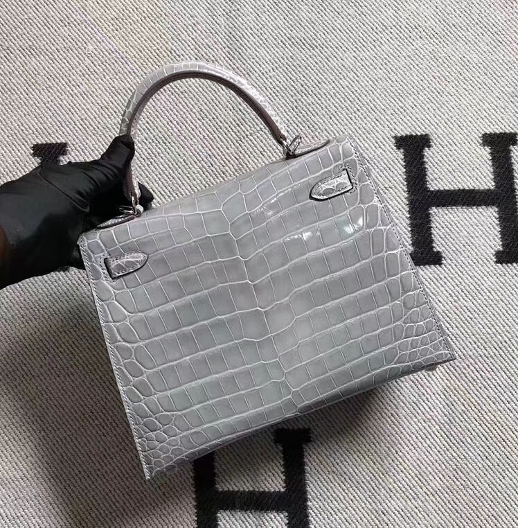 Hermès(爱马仕)Kelly 凯莉包 冰川灰 鳄鱼皮 25cm 银扣 现货 2019年3月22日 0 【鳄鱼世家】www.Eyubao.com Kelly 25 Kelly 凯莉包 品牌:Hermès(爱马仕);类别:Kelly 凯莉包;颜色:冰川灰;材质:鳄鱼皮;等级:顶级;附件:全套包装礼盒;尺寸:25cm;功能:手提单肩包
