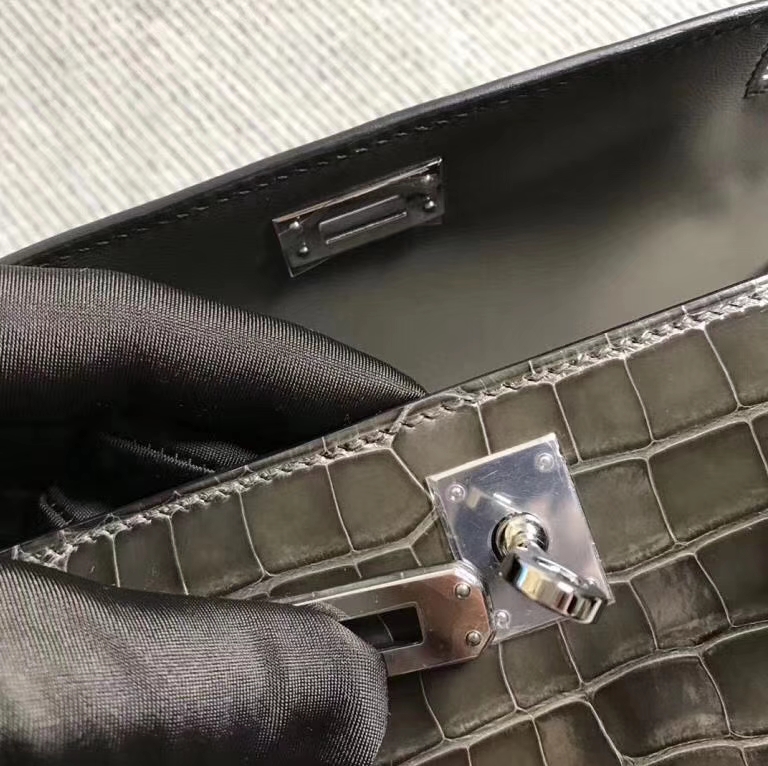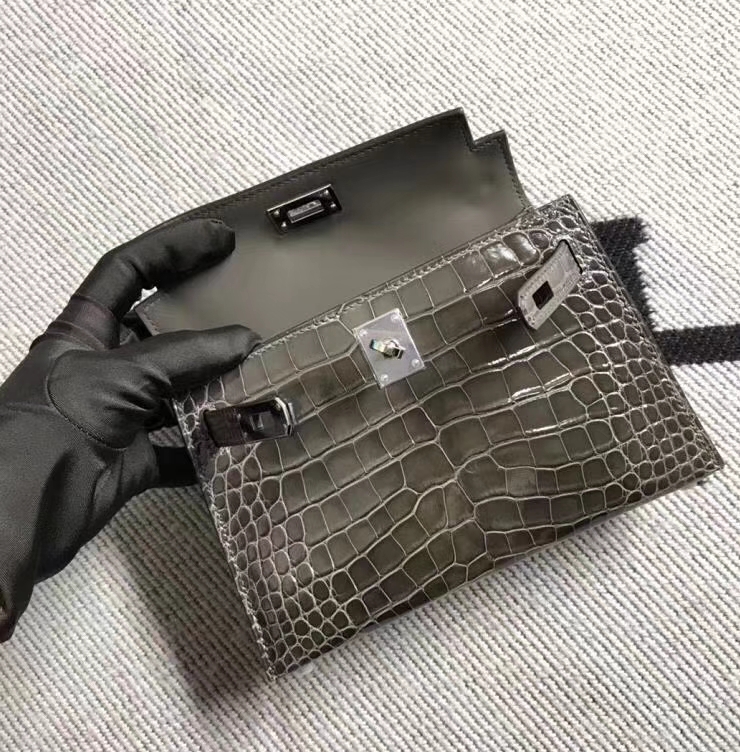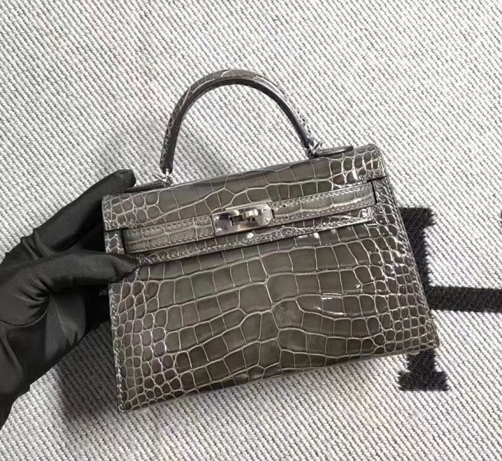 Hermès(爱马仕)mini kelly 亮面鳄鱼 铁灰 银扣 2代 2019年3月22日 0 【鳄鱼世家】www.Eyubao.com Mini Kelly 2 Mini Kelly 迷你凯莉 品牌:Hermès(爱马仕);类别:Mini Kelly迷你凯莉包;颜色: 铁灰;材质:亮面框框鳄鱼;等级:顶级;附件:全套包装礼盒;尺寸:18cm;功能:手提单肩包