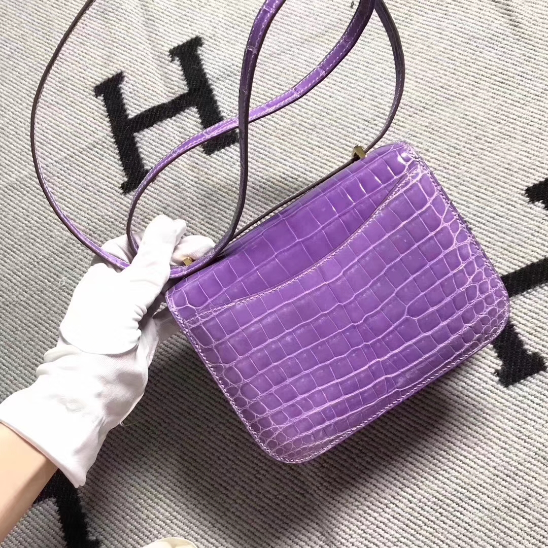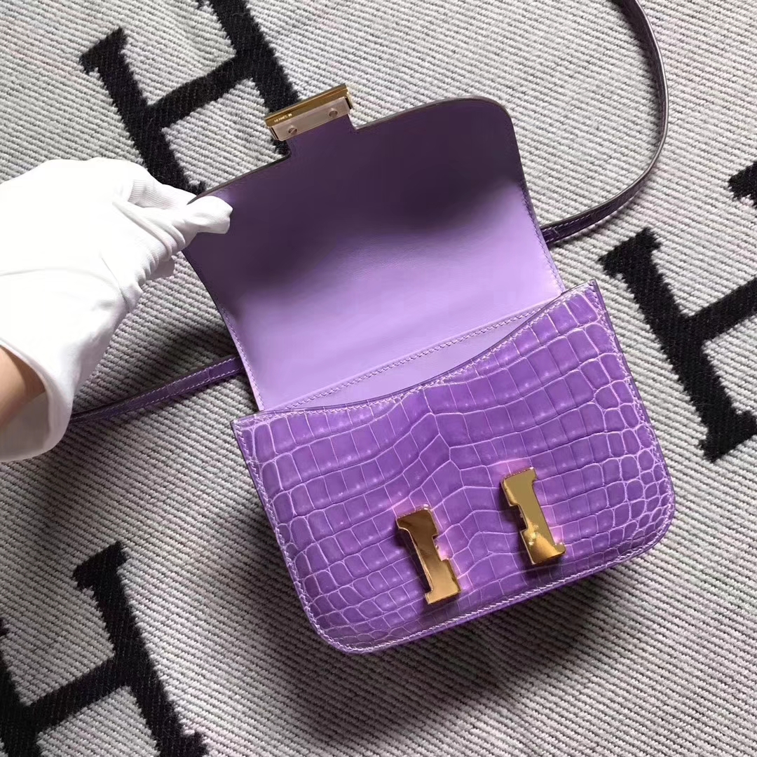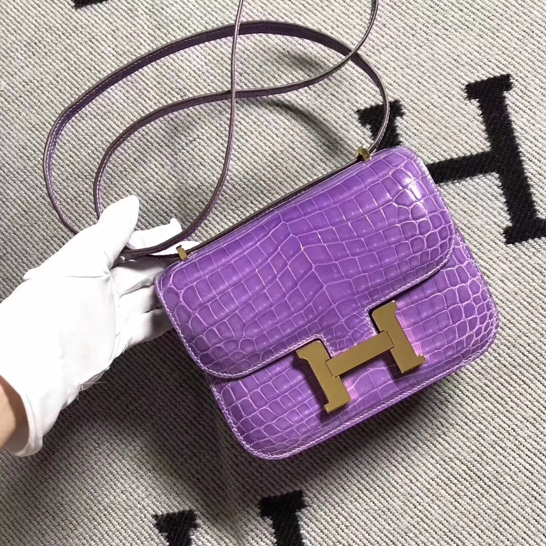 Hermès(爱马仕)Constance 空姐包 薰衣草紫 19cm 金扣 现货 2019年3月22日 0 【鳄鱼世家】www.Eyubao.com Constance 19 Constance 空姐包 品牌:Hermès(爱马仕);类别:Constance 空姐包;颜色:薰衣草紫;材质:亮面框框鳄鱼皮;等级:顶级;附件:全套包装礼盒;尺寸:19cm;功能:单肩背包